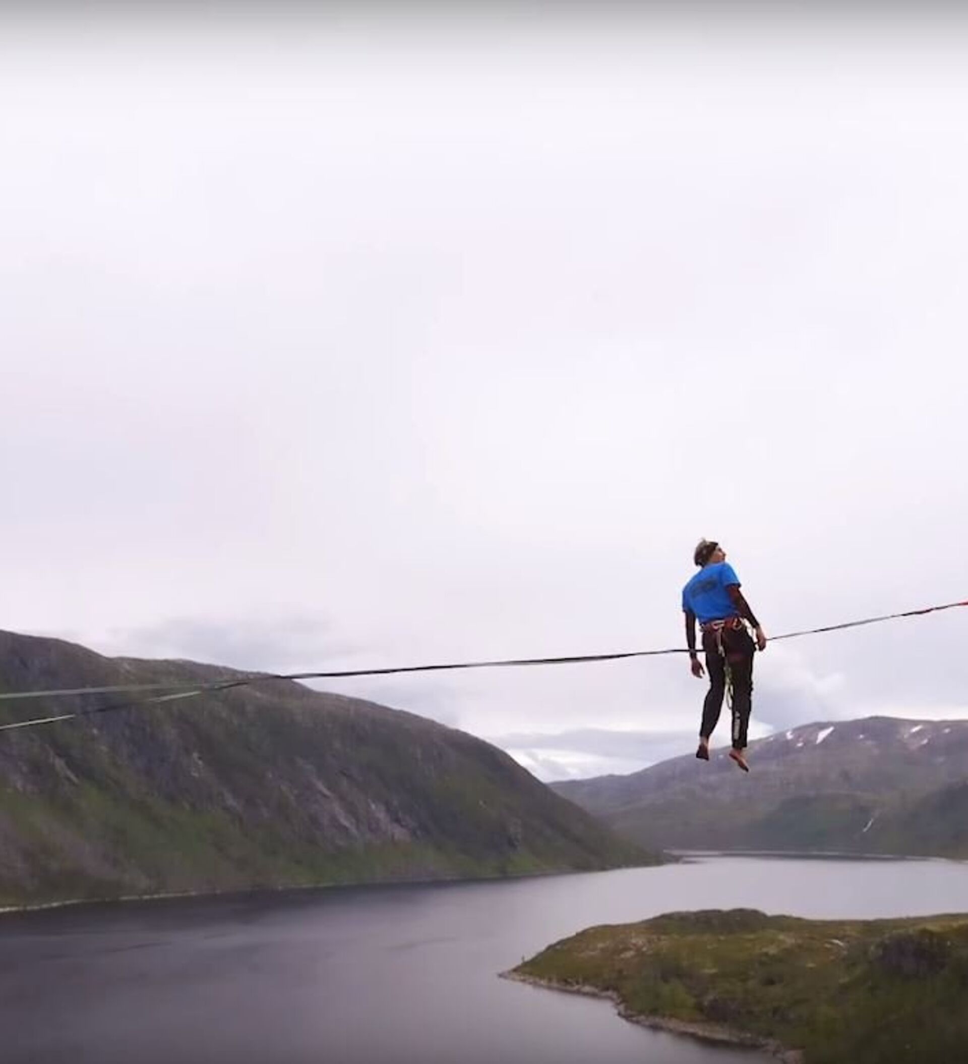 La distancia era tan larga que algunas ráfagas de viento desplazaron la cuerda 50 metros a un lado junto a los atletas que la estaban cruzando. Dos días más tarde montaron una cinta de 1.000 metros, donde Mia Noblet batió el récord mundial entre mujeres al cruzarla sin caer.