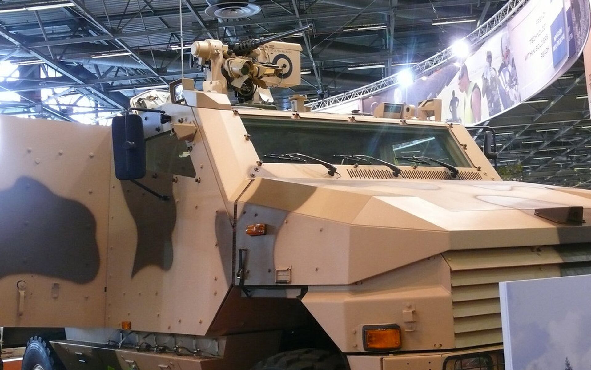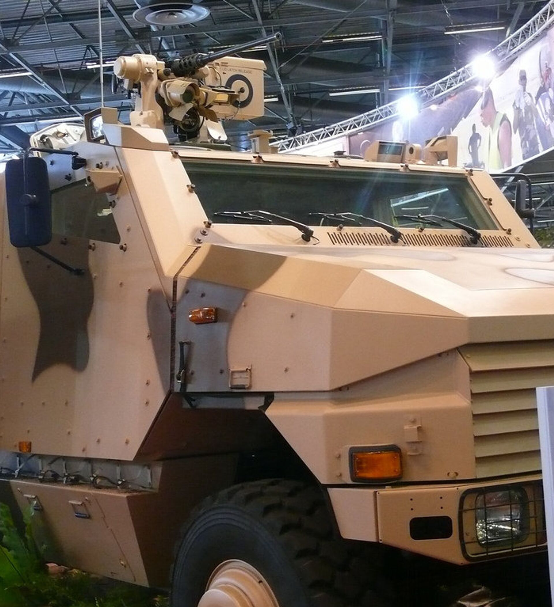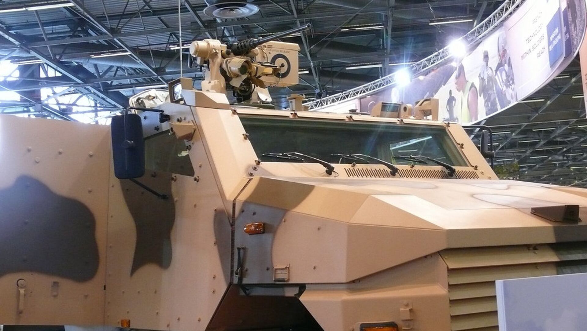 En la instantánea en cuestión se ve a un blindado de transporte de tropas con una pequeña torreta, similar al vehículo de infantería Aravis en servicio del Ejército galo.