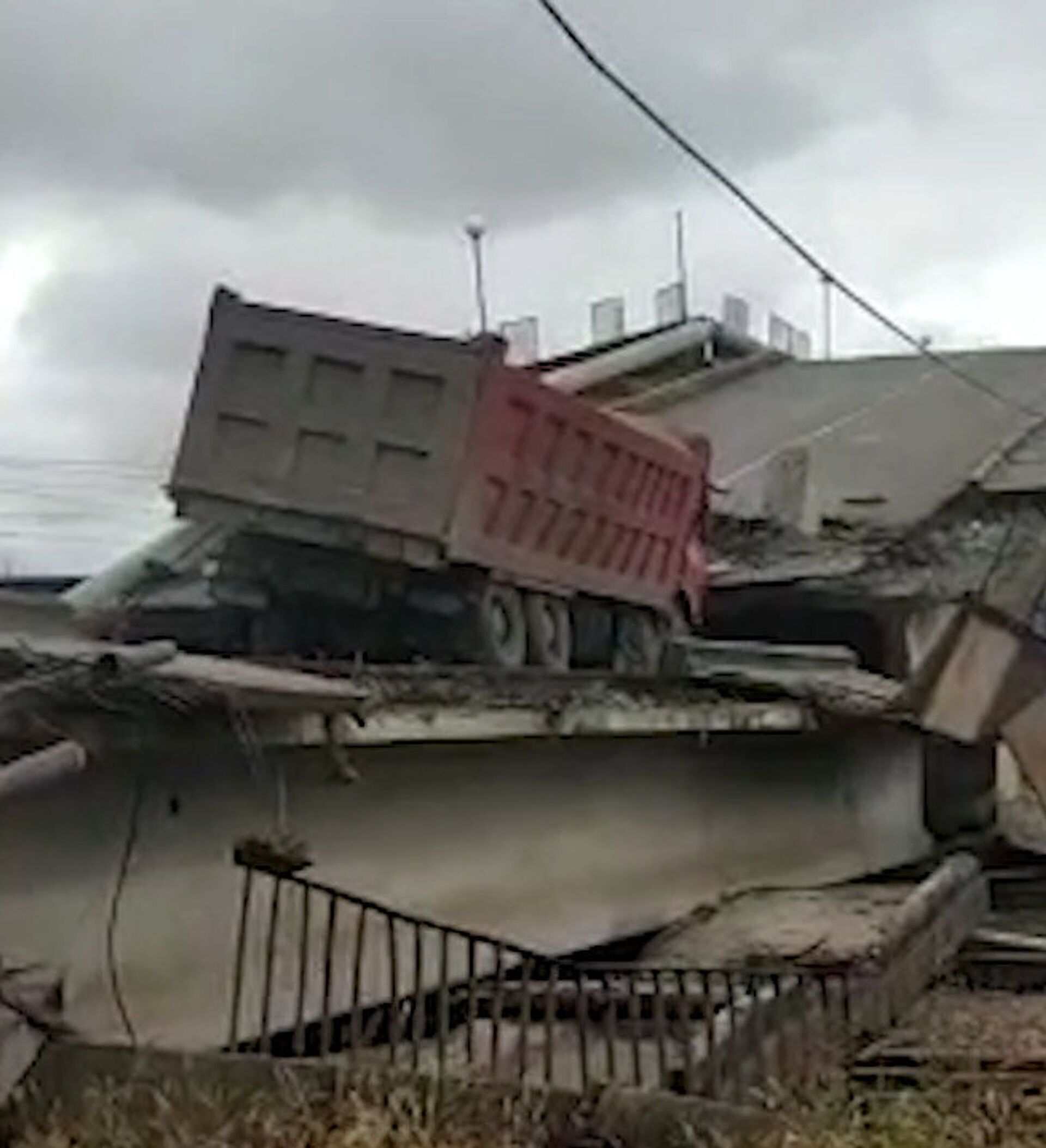 Justo un momento antes de que la instalación se viniera abajo, un camión entró en el puente. El conductor fue hospitalizado con una fractura abierta en la pierna derecha, un pie triturado y contusión torácica.