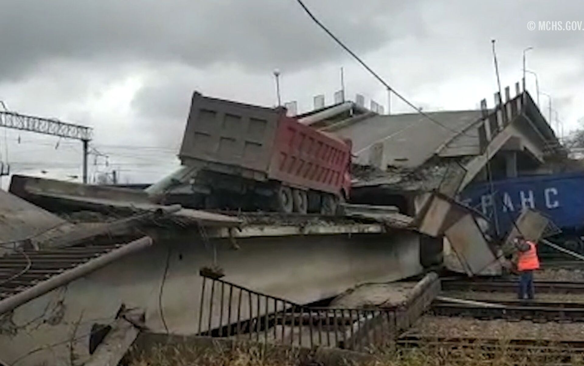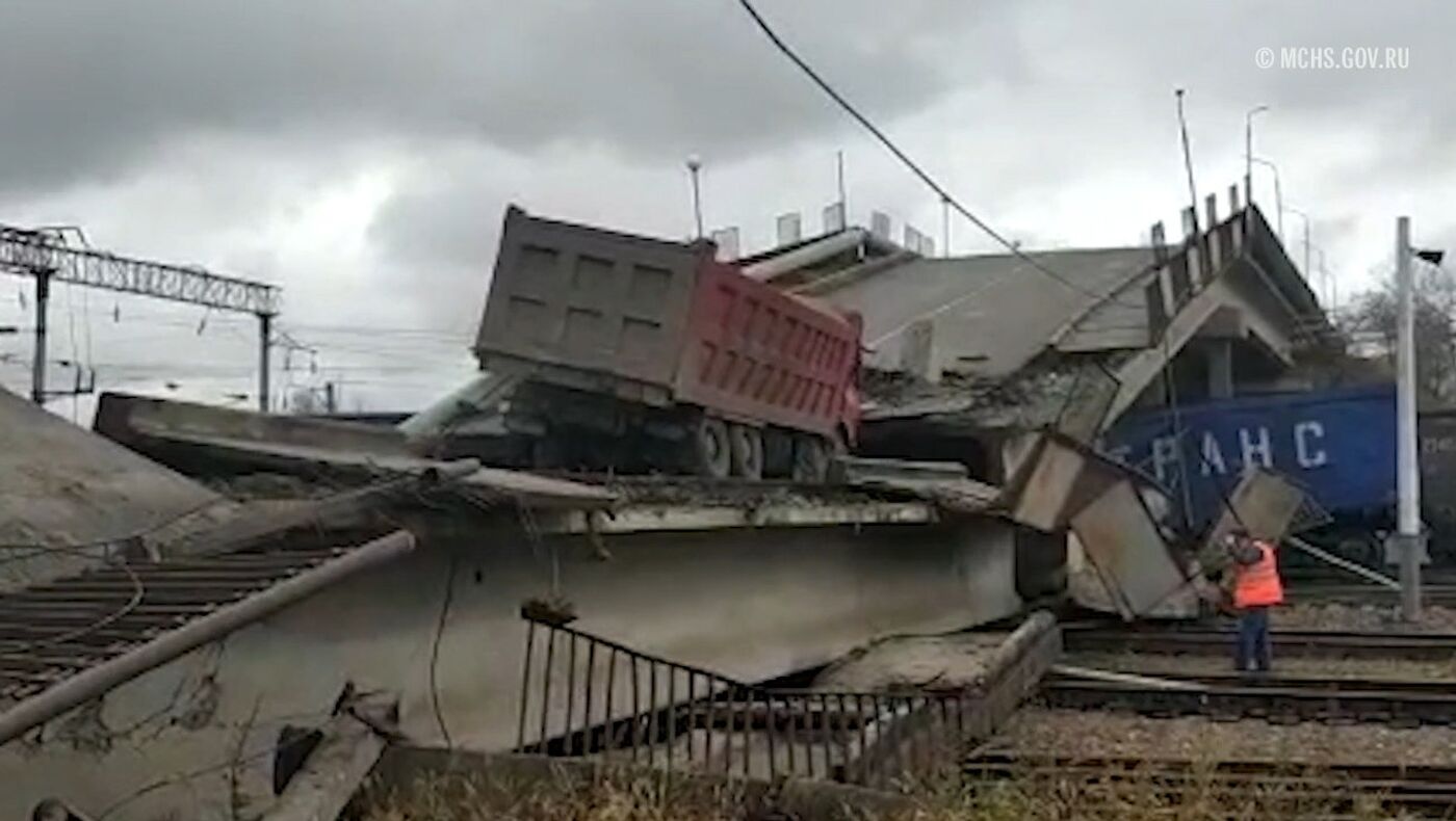 Según el Ministerio de Emergencias de Rusia, colapsaron dos segmentos del viaducto.