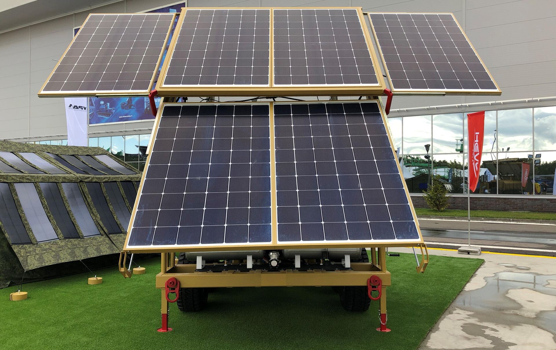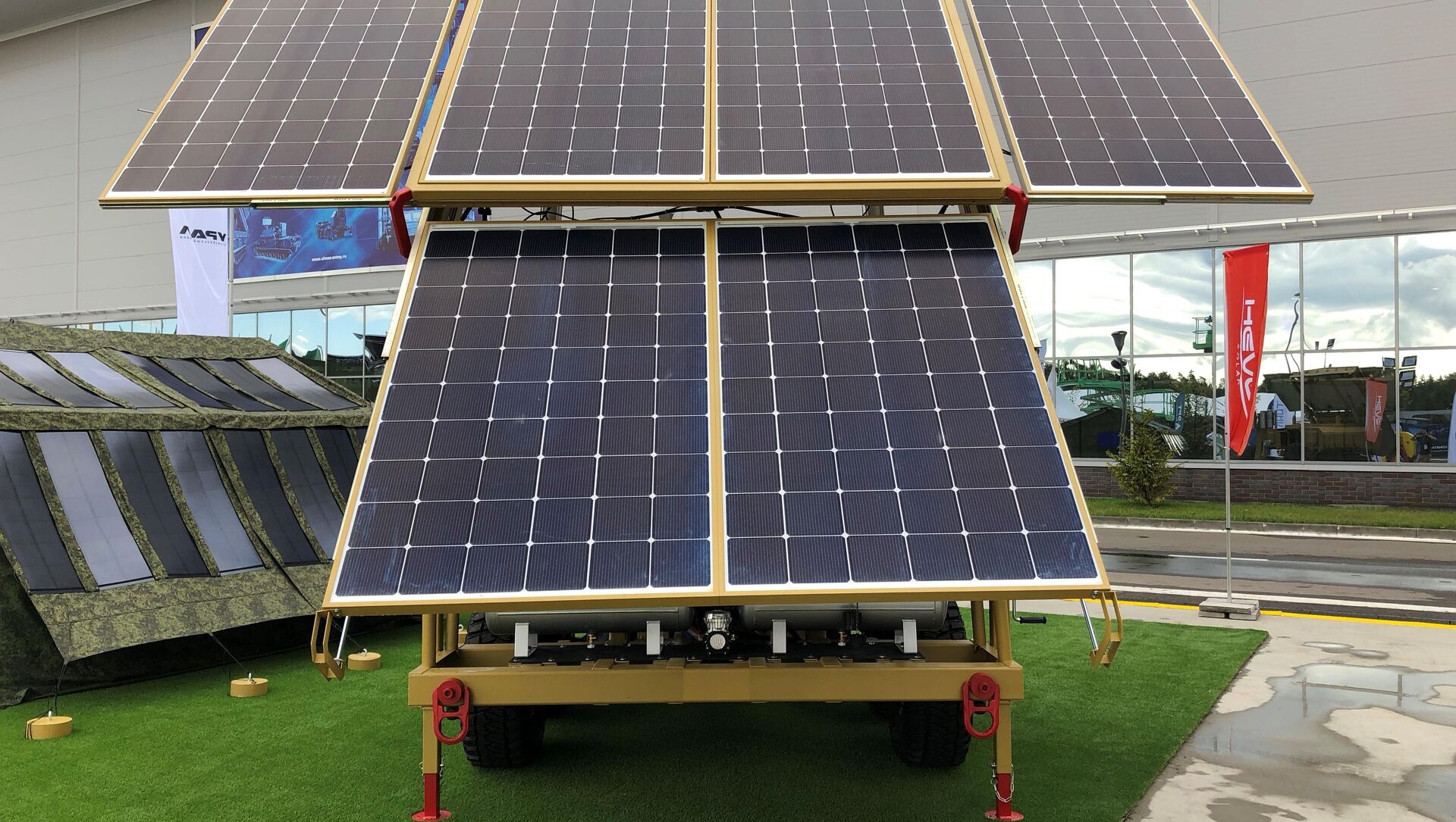 Mientras el concepto de las centrales solares móviles ha sido estudiado y puesto en práctica en otros países, el proyecto de Hevel introdujo la 'peculiaridad nacional' rusa: el remolque tiene propiedades de un todoterreno y es capaz de atravesar terreno difícil, y también las partes usadas en el dispositivo le permiten funcionar en todas las condiciones climáticas, de desiertos secos a tundras nevadas.