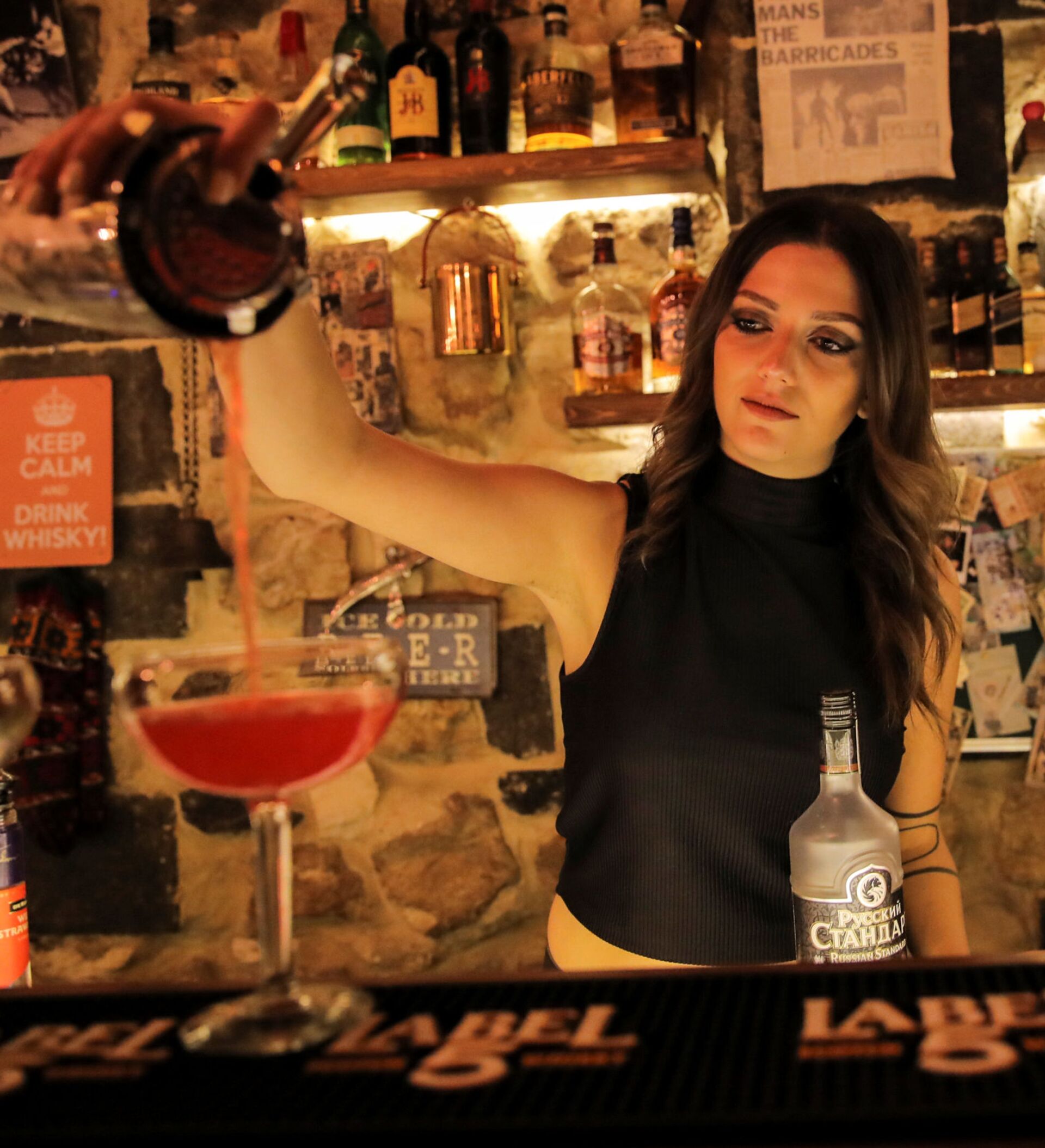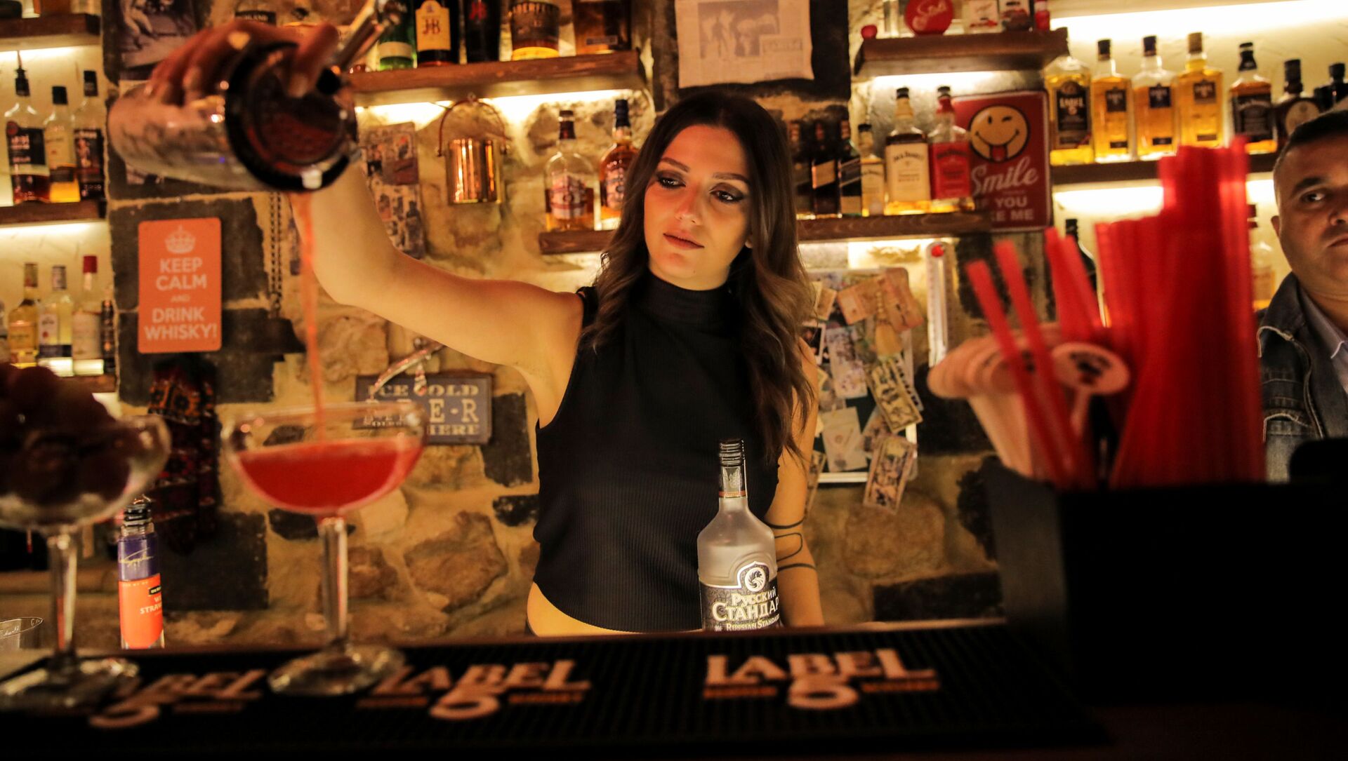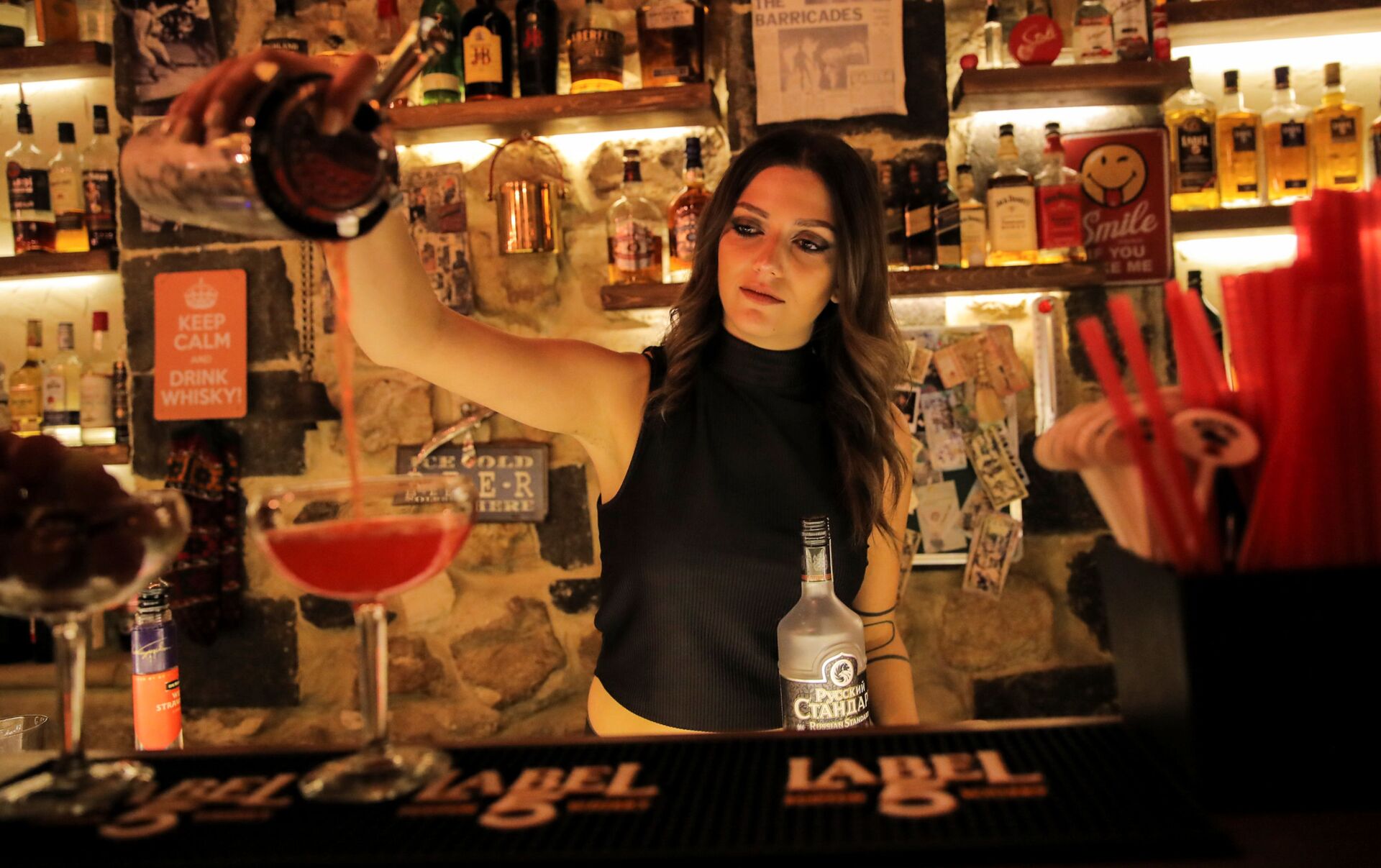 En la foto: una barwoman mezcla un coctel en un club nocturno de Damasco.