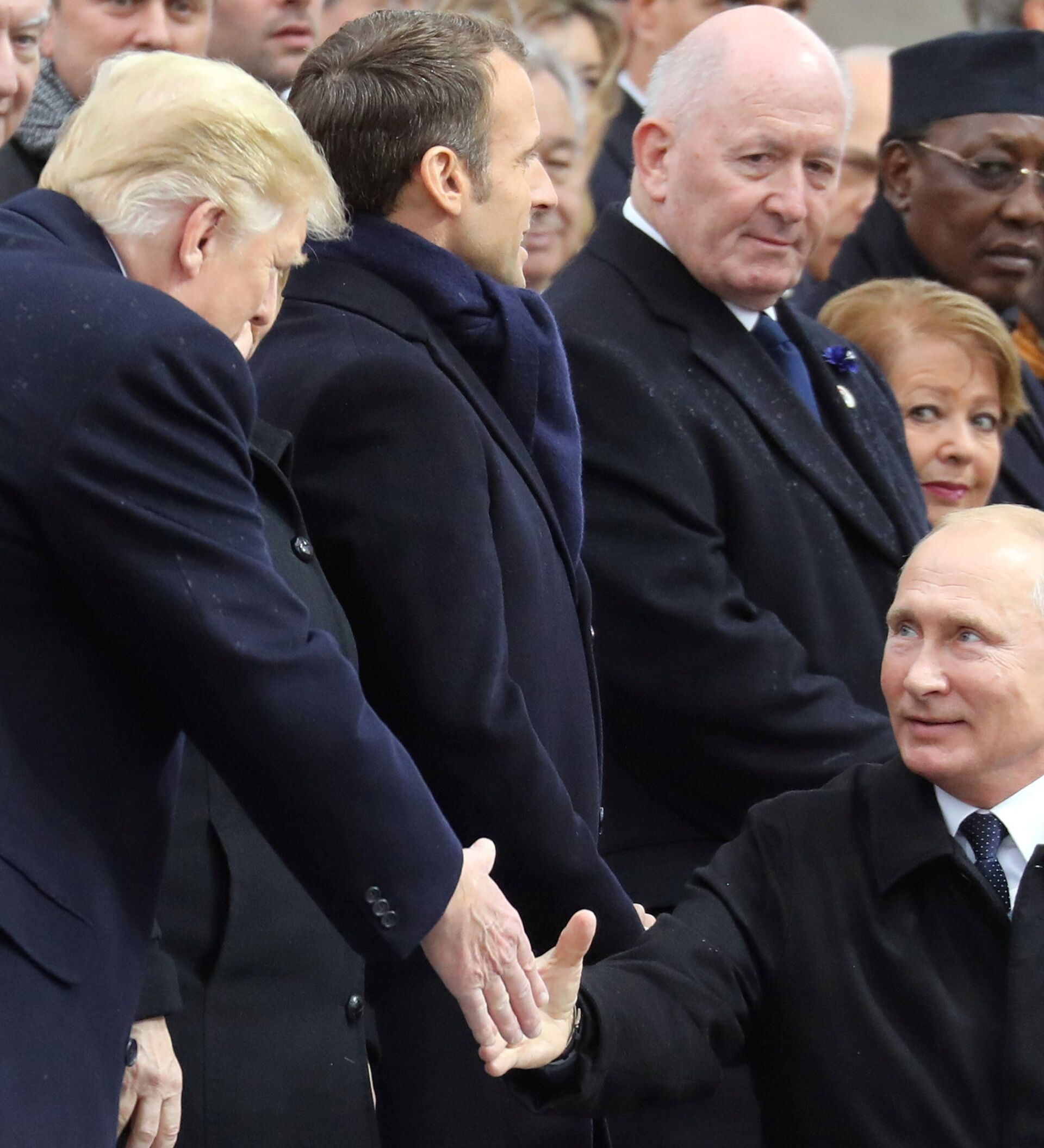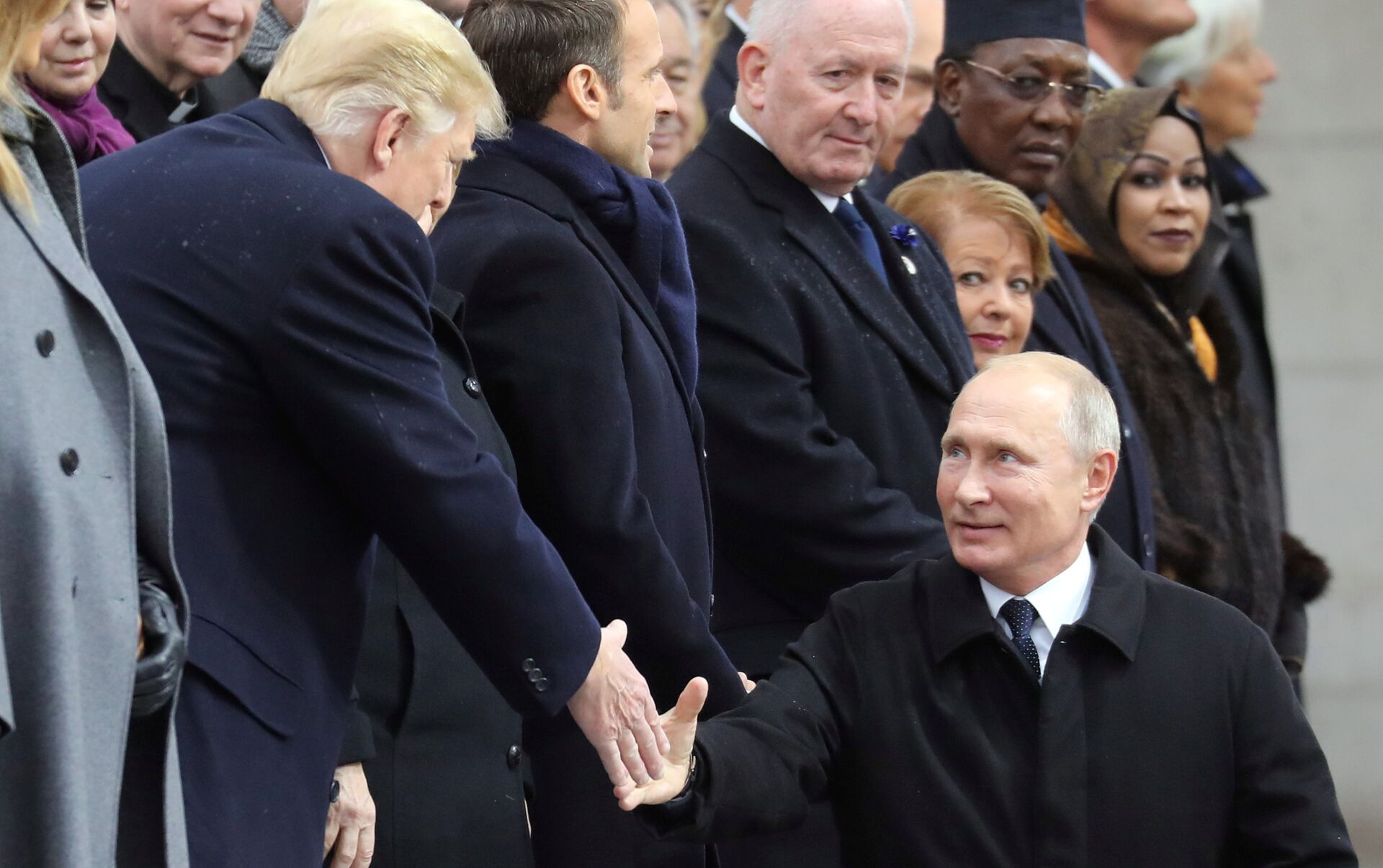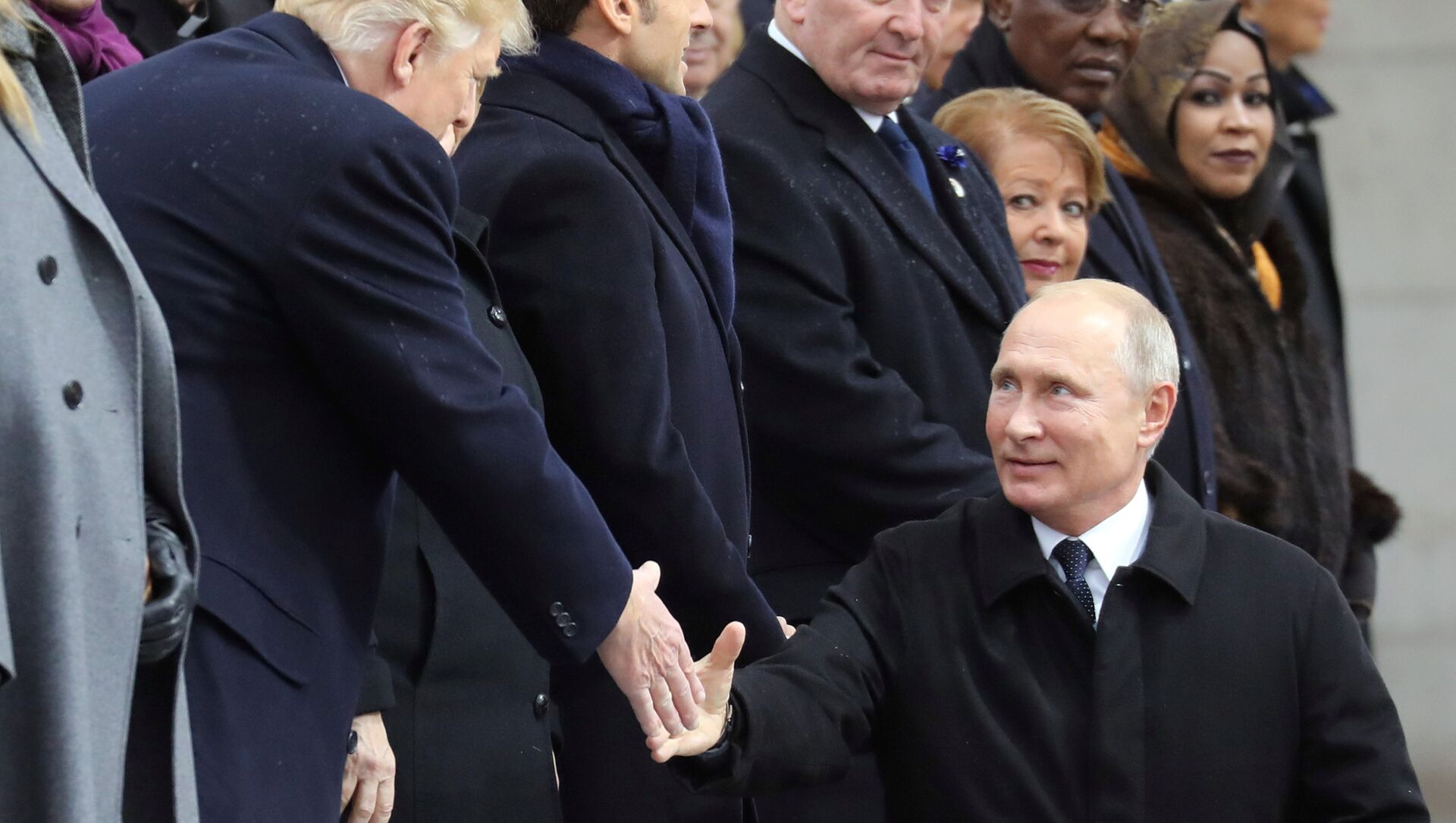 Putin y Trump se saludan con un apretón de manos en París (vídeo)