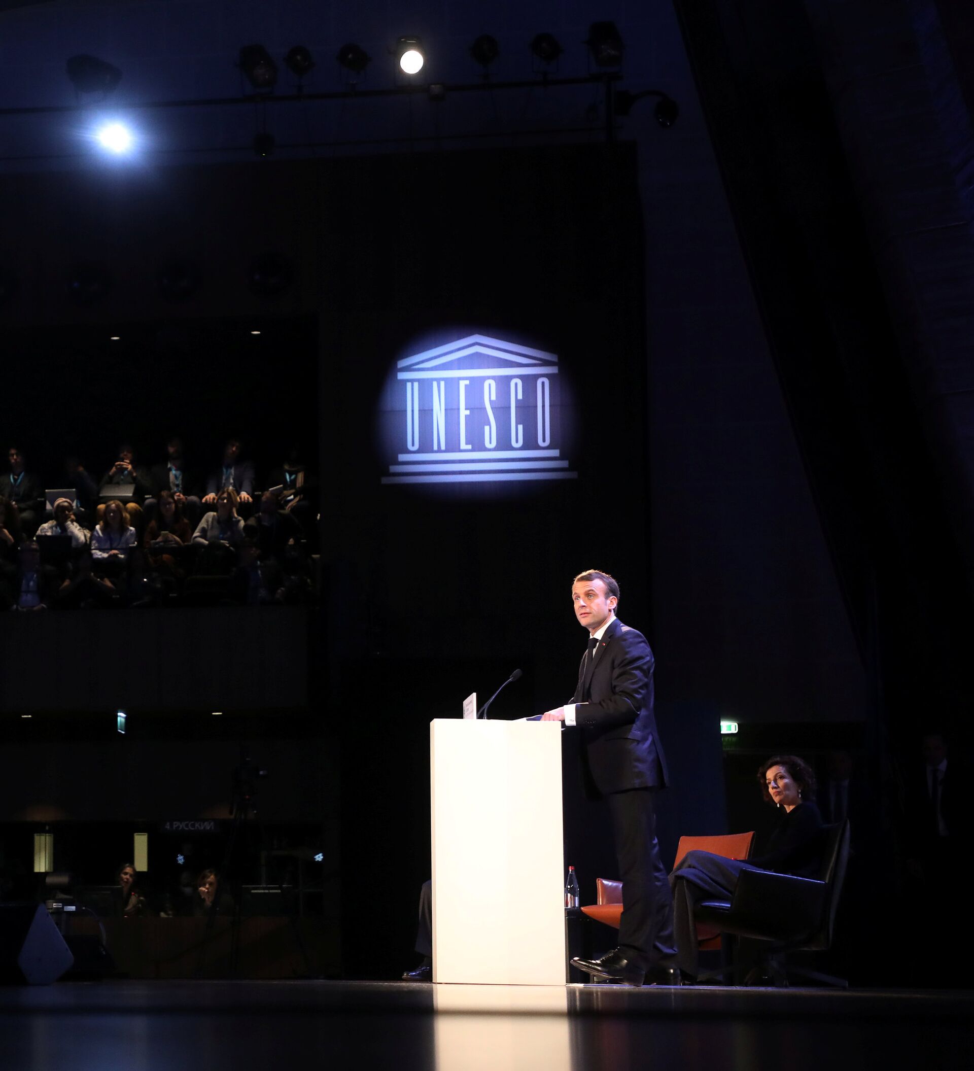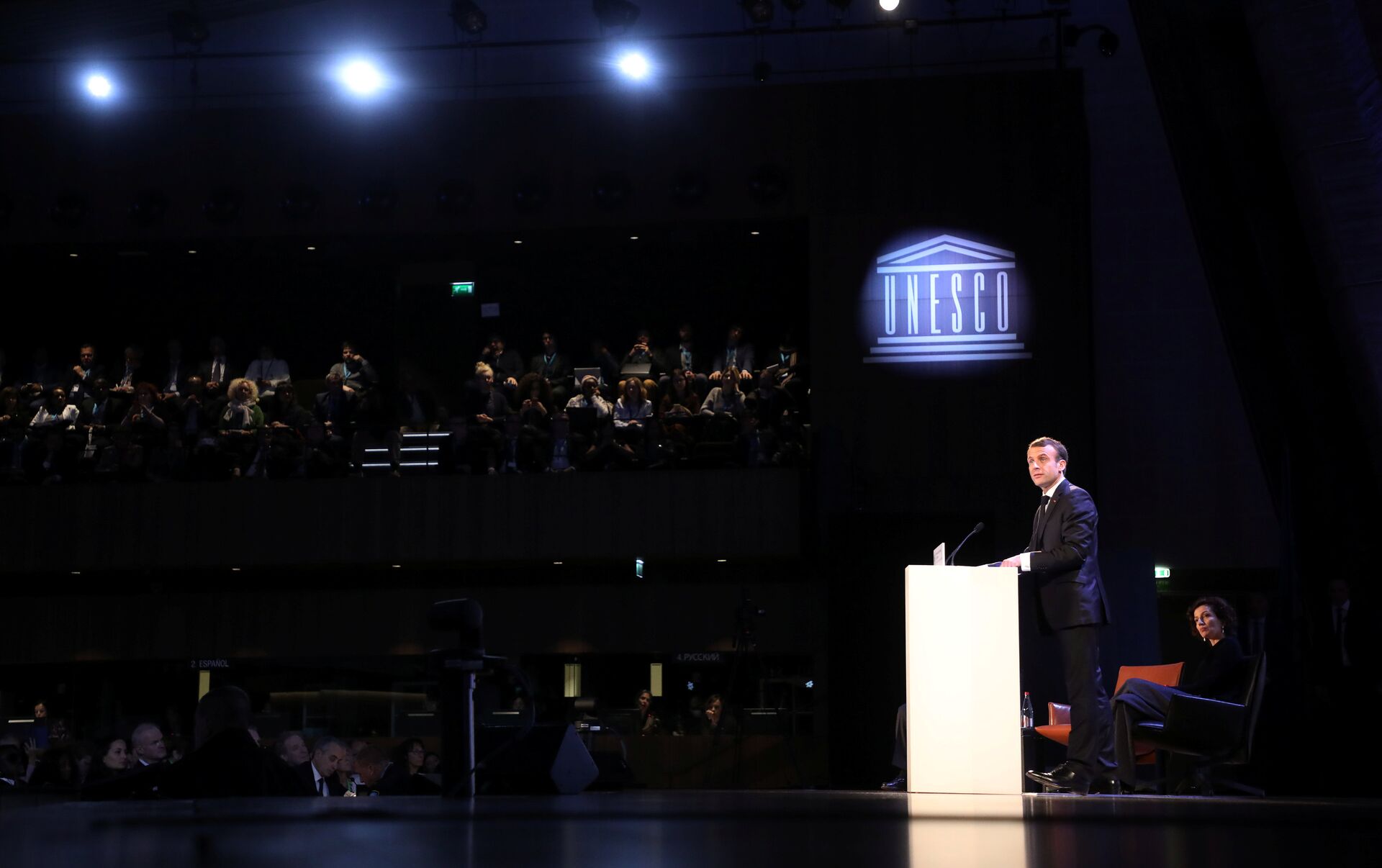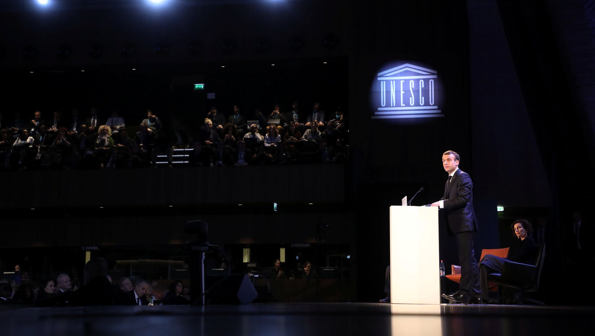El presidente de Francia, Emmanuel Macron, hace una declaración ante la Unesco - Sputnik Mundo