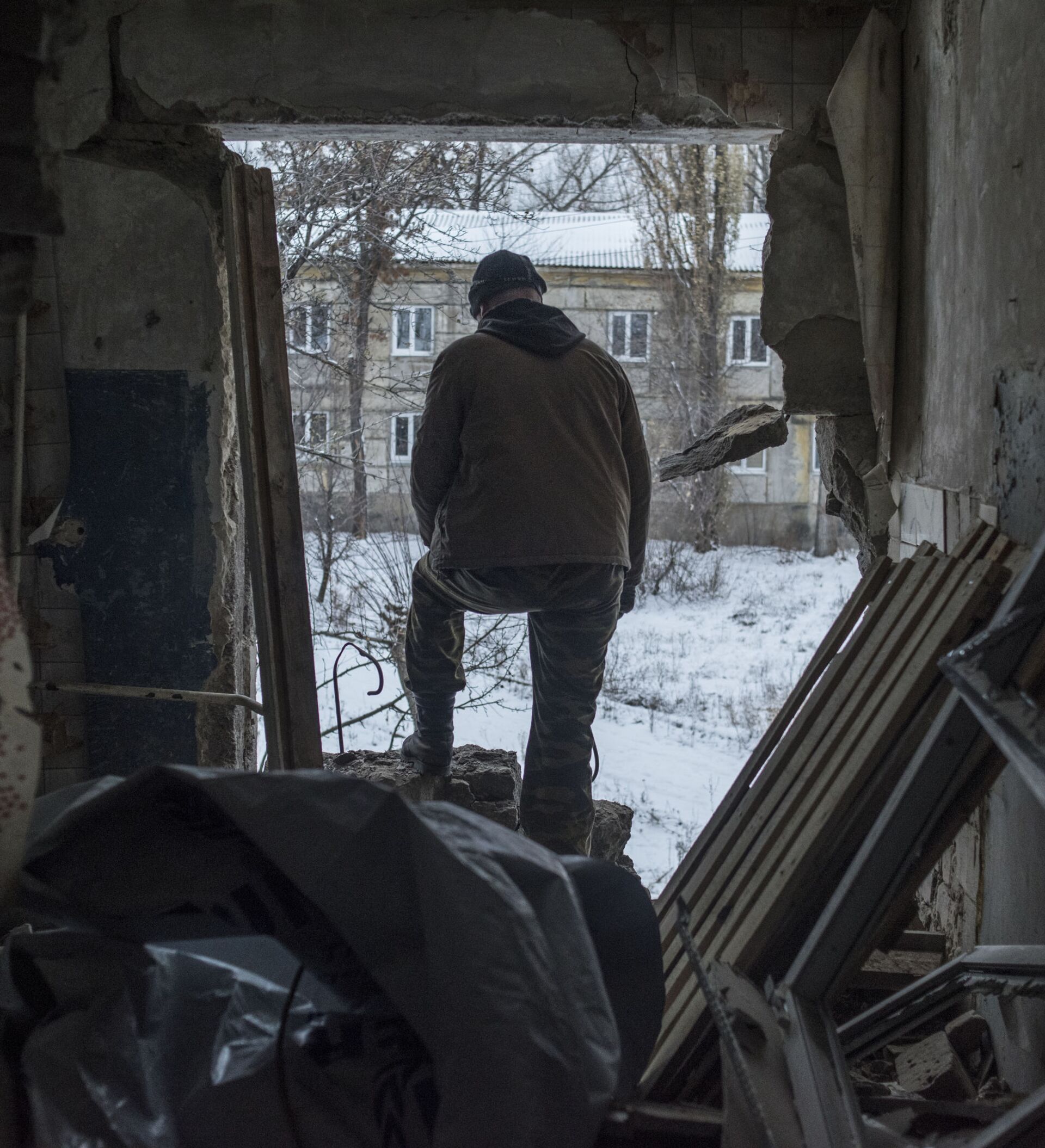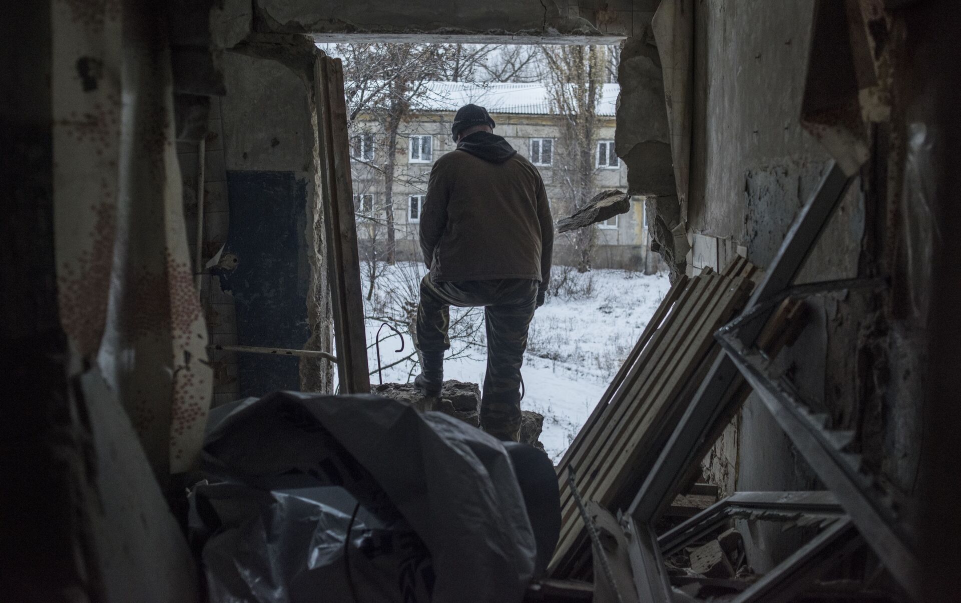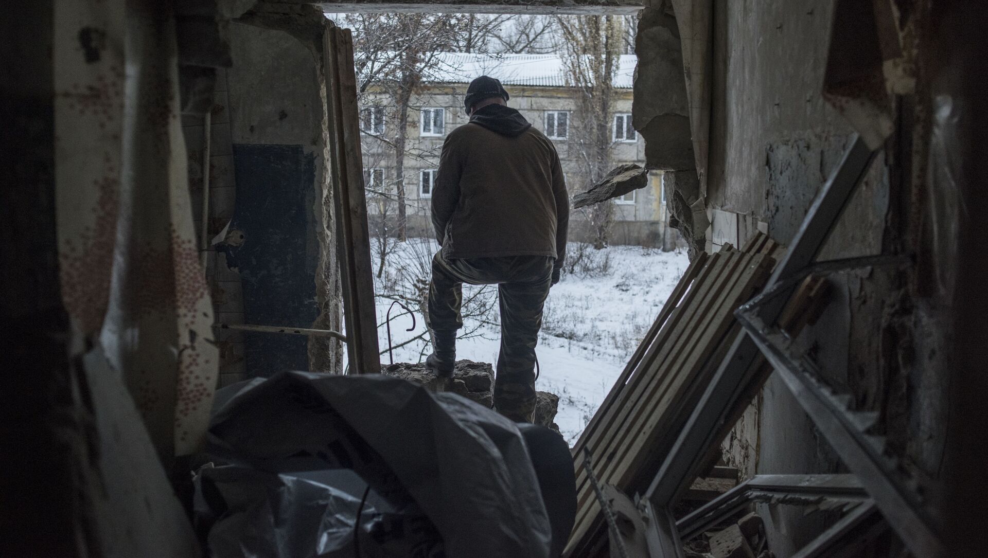 Varios edificios, entre ellos un edificio residencial, fueron afectados por un ataque de artillería del Ejército de Ucrania en el poblado Donetski, en el... 24.11.2018, Sputnik Mundo
