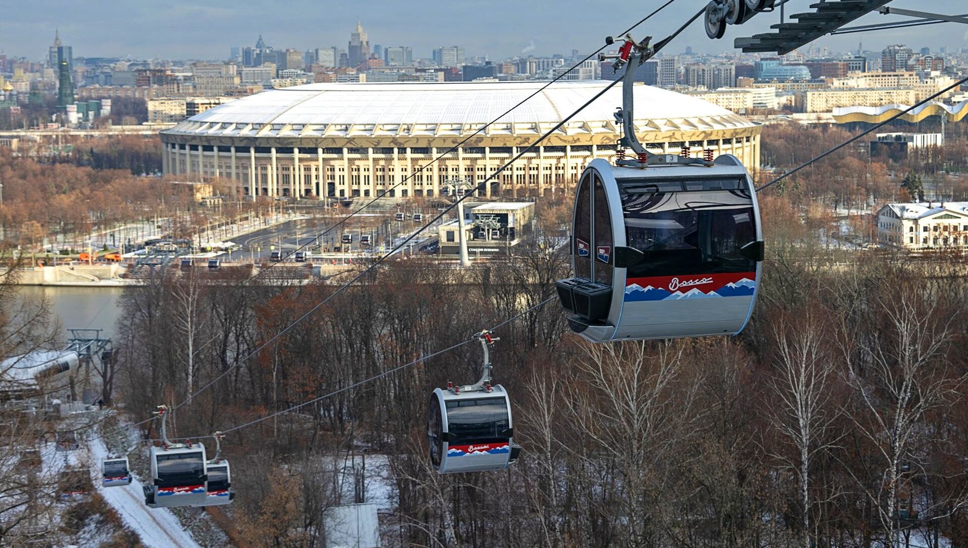 Un moderno teleférico fue construido sobre el río Moscova para conectar la plataforma de observación en Vorobyovy Gory con el Estadio Luzhnikí.