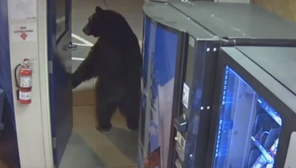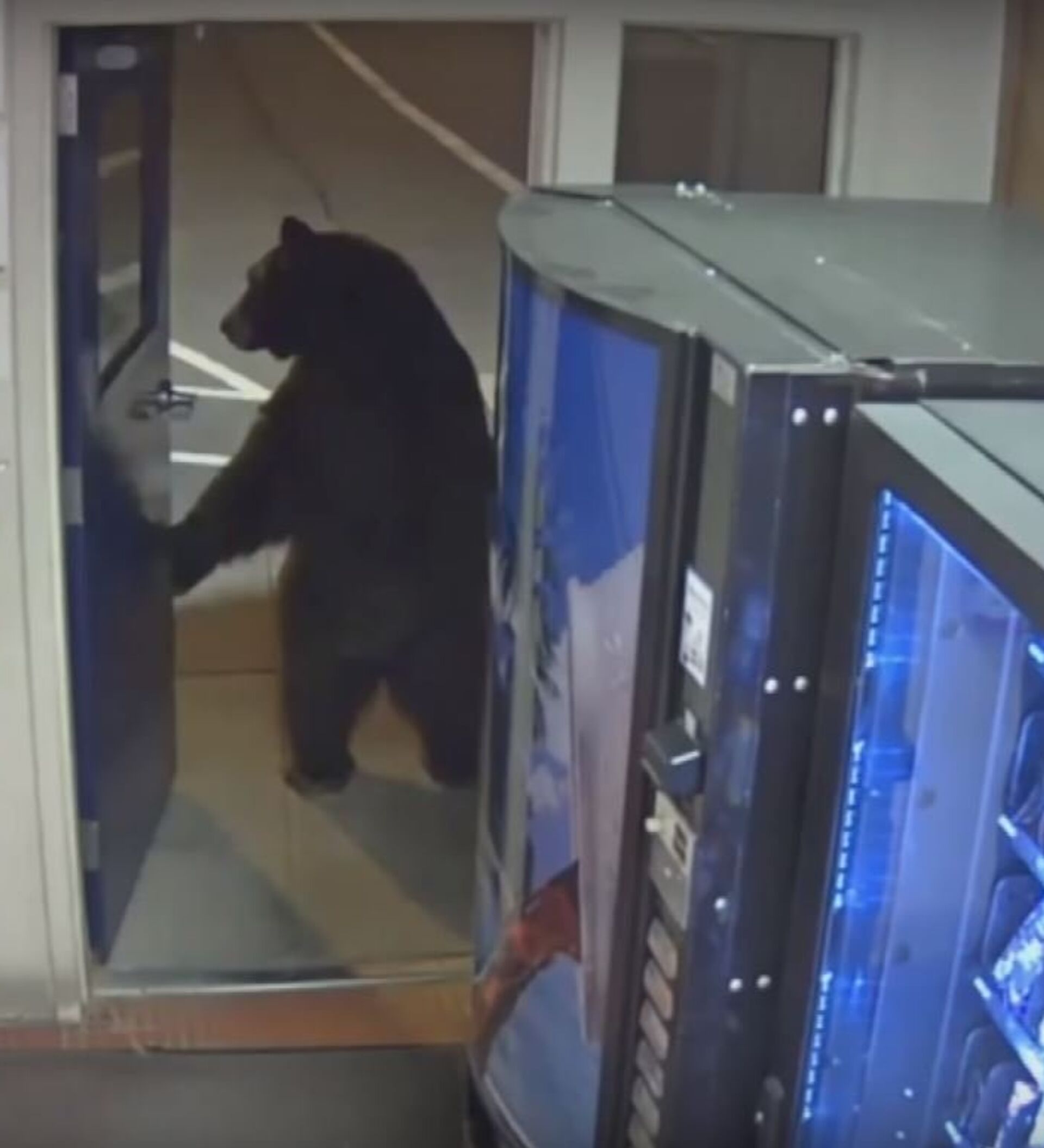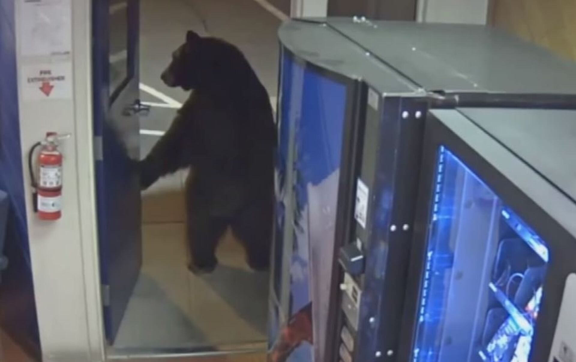 Al parecer no tenía hambre, ya que pasa delante de unas máquinas dispensadoras de comida sin pararse. Luego entra en una habitación y poco después abandona la comisaría como si nada.