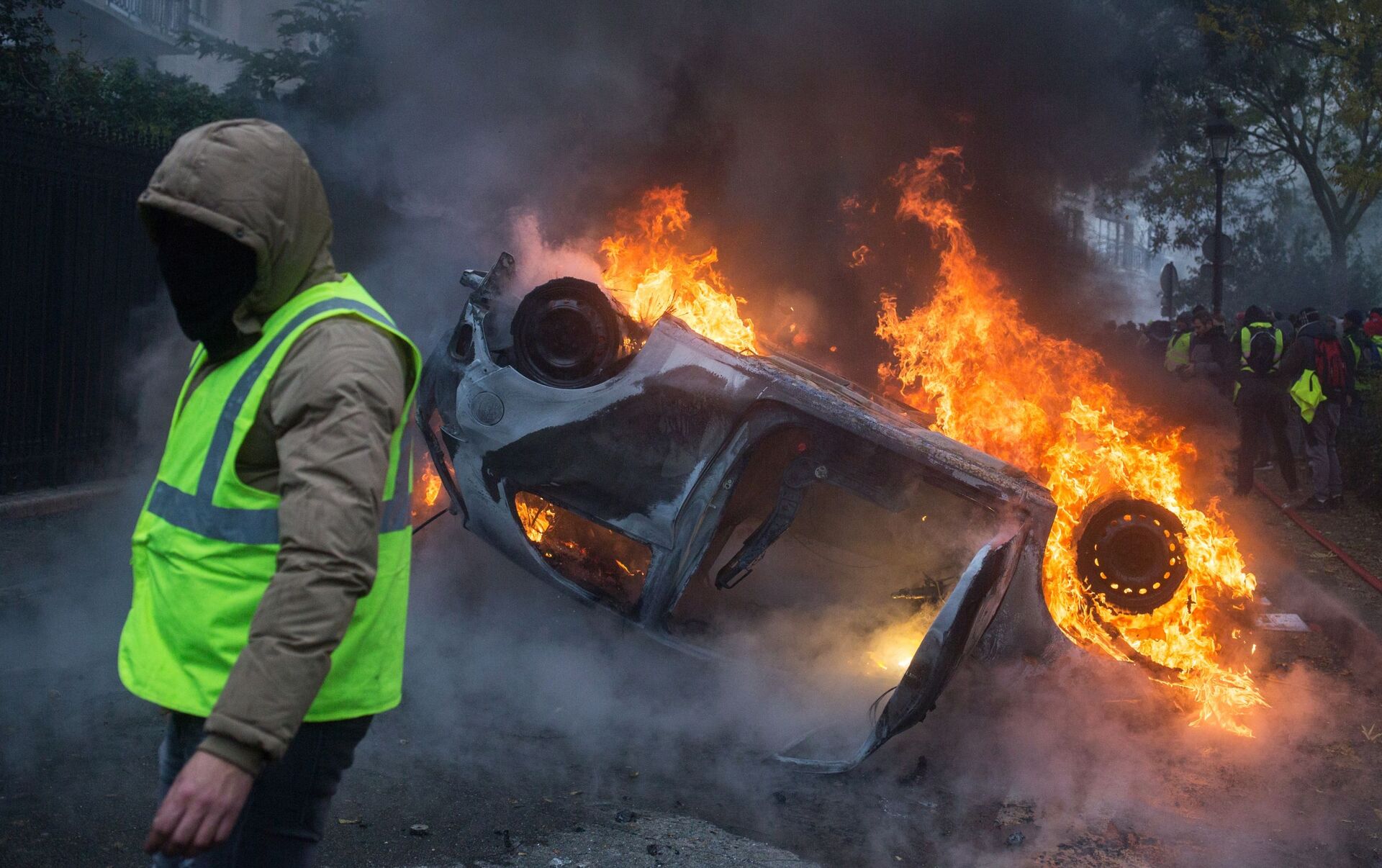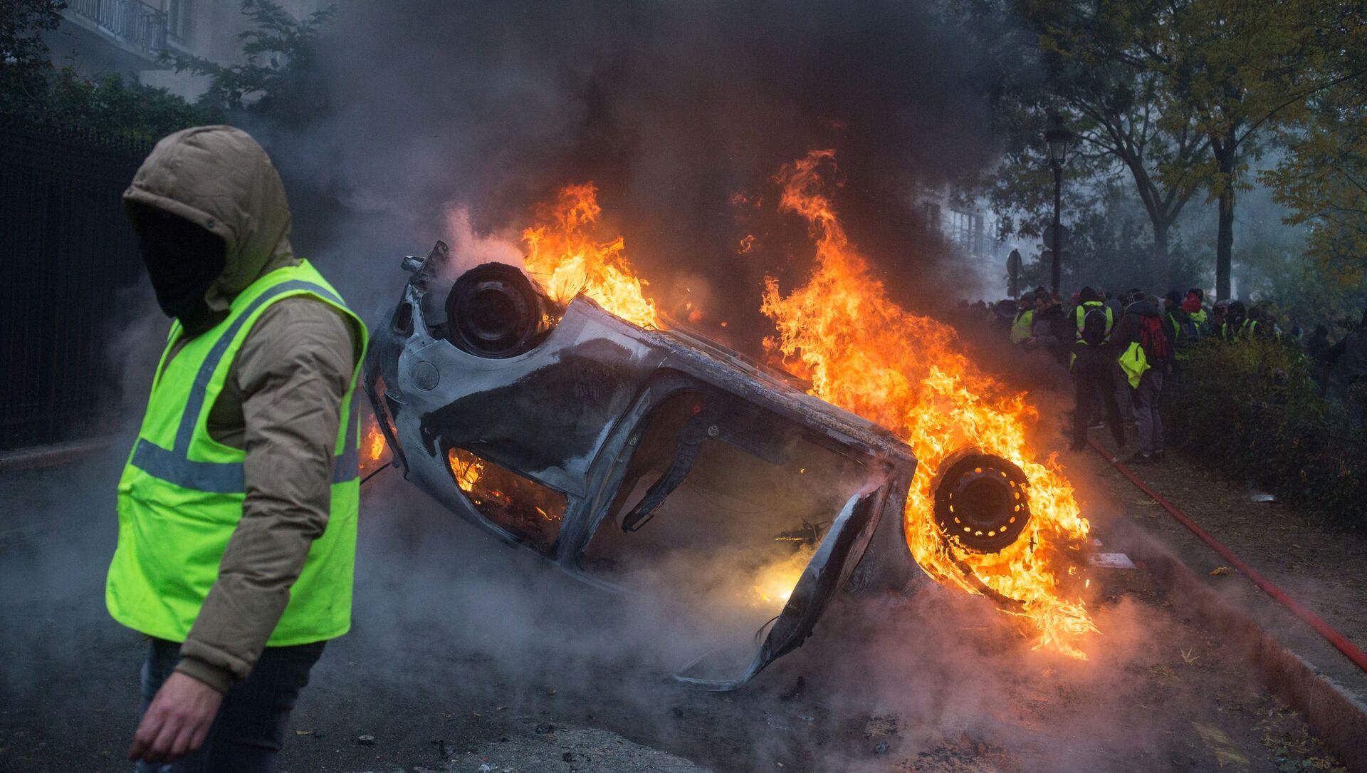 Los manifestantes prendieron fuego a contenedores y automóviles. En París se destruyeron 10 vehículos de personal diplomático.