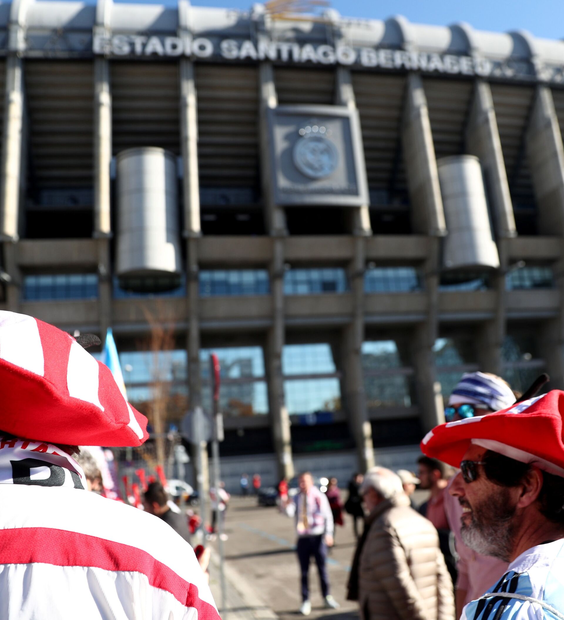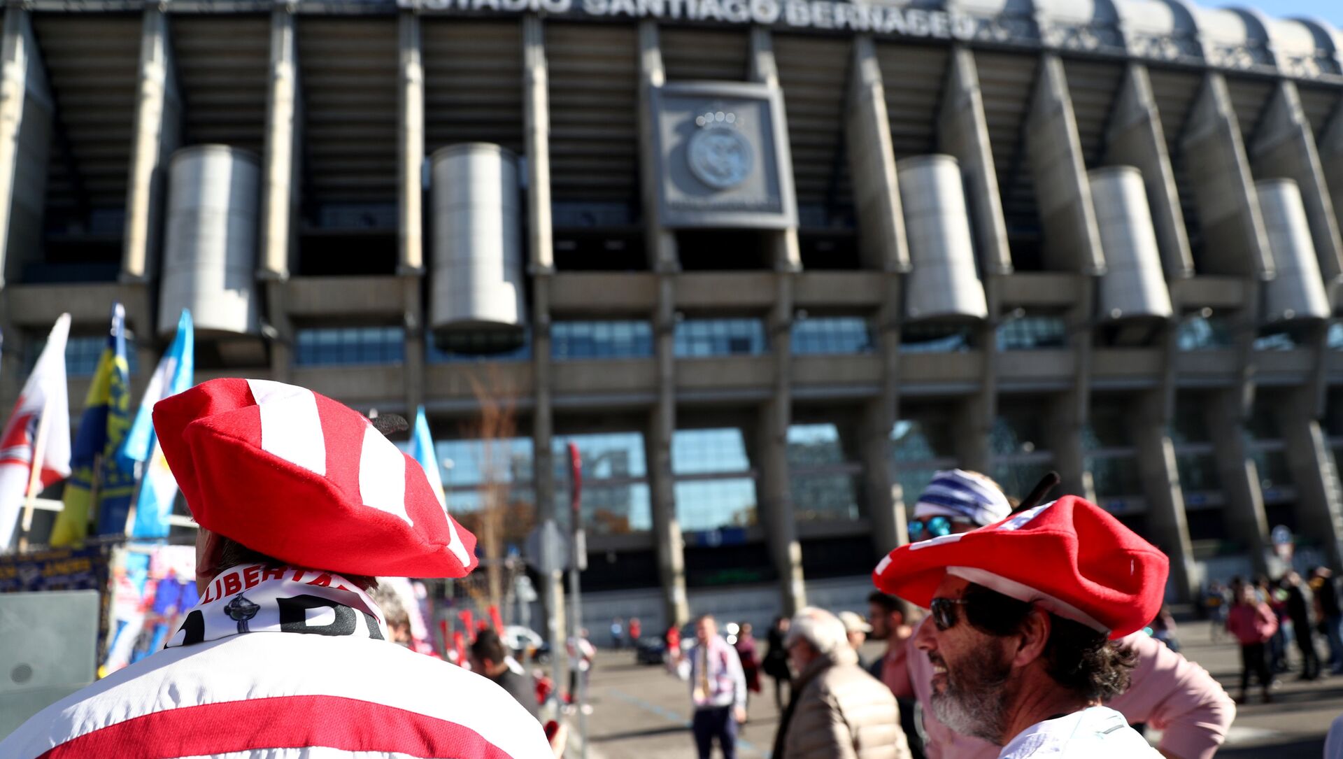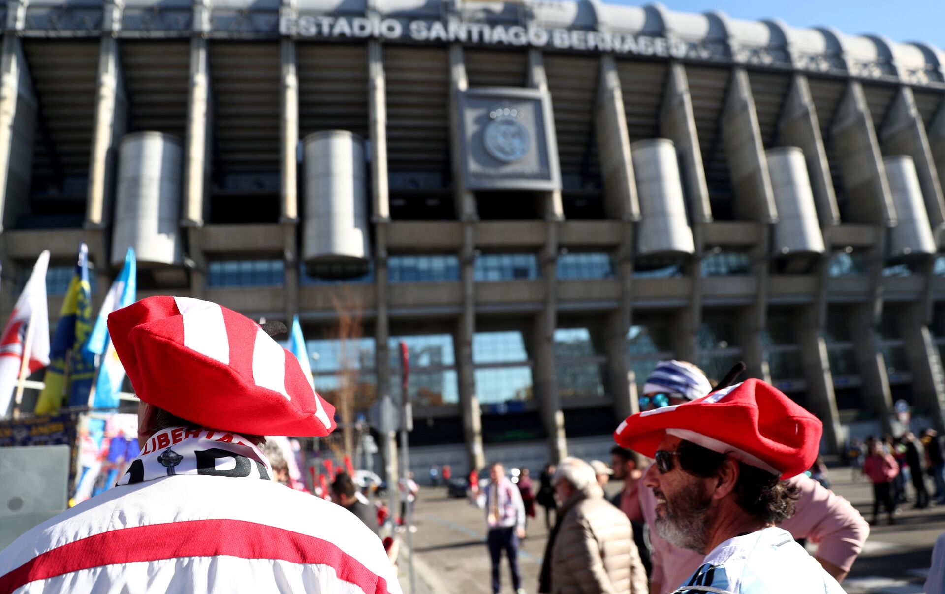 Los hinchas marchan hacia el estadio Santiago Bernabéu antes de la final de la Libertadores