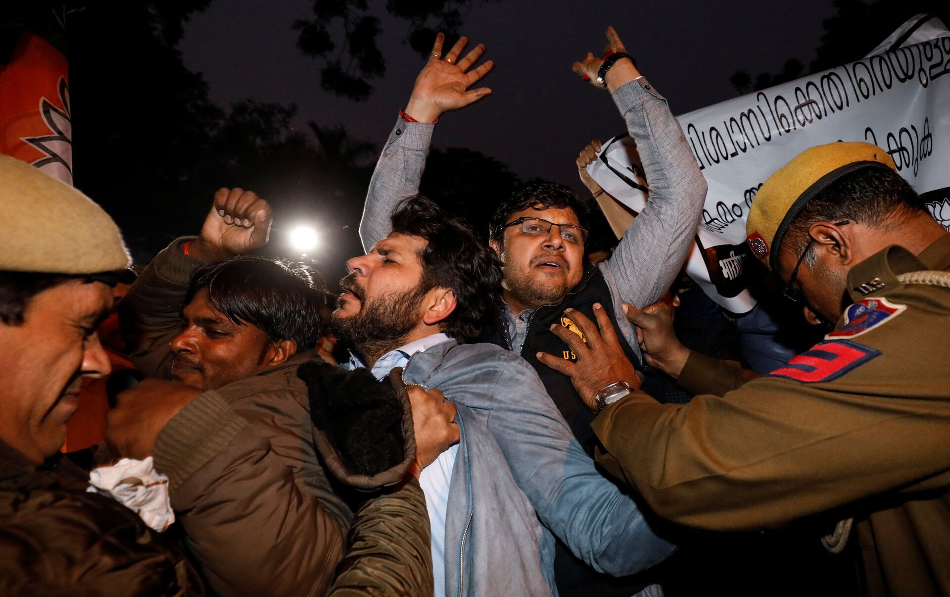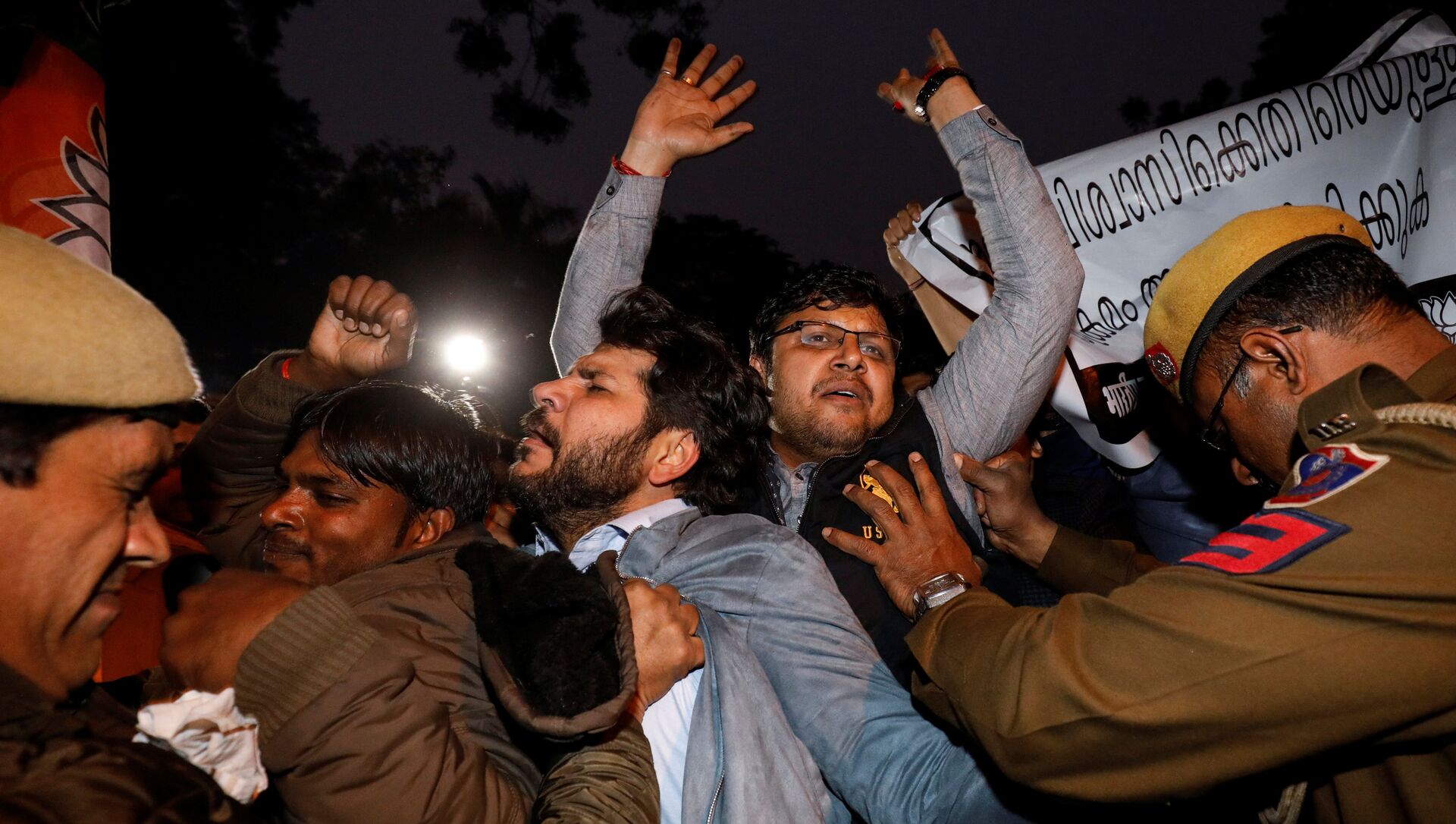 La policía tuvo que intervenir para proteger a las dos mujeres y sacarlas del lugar.