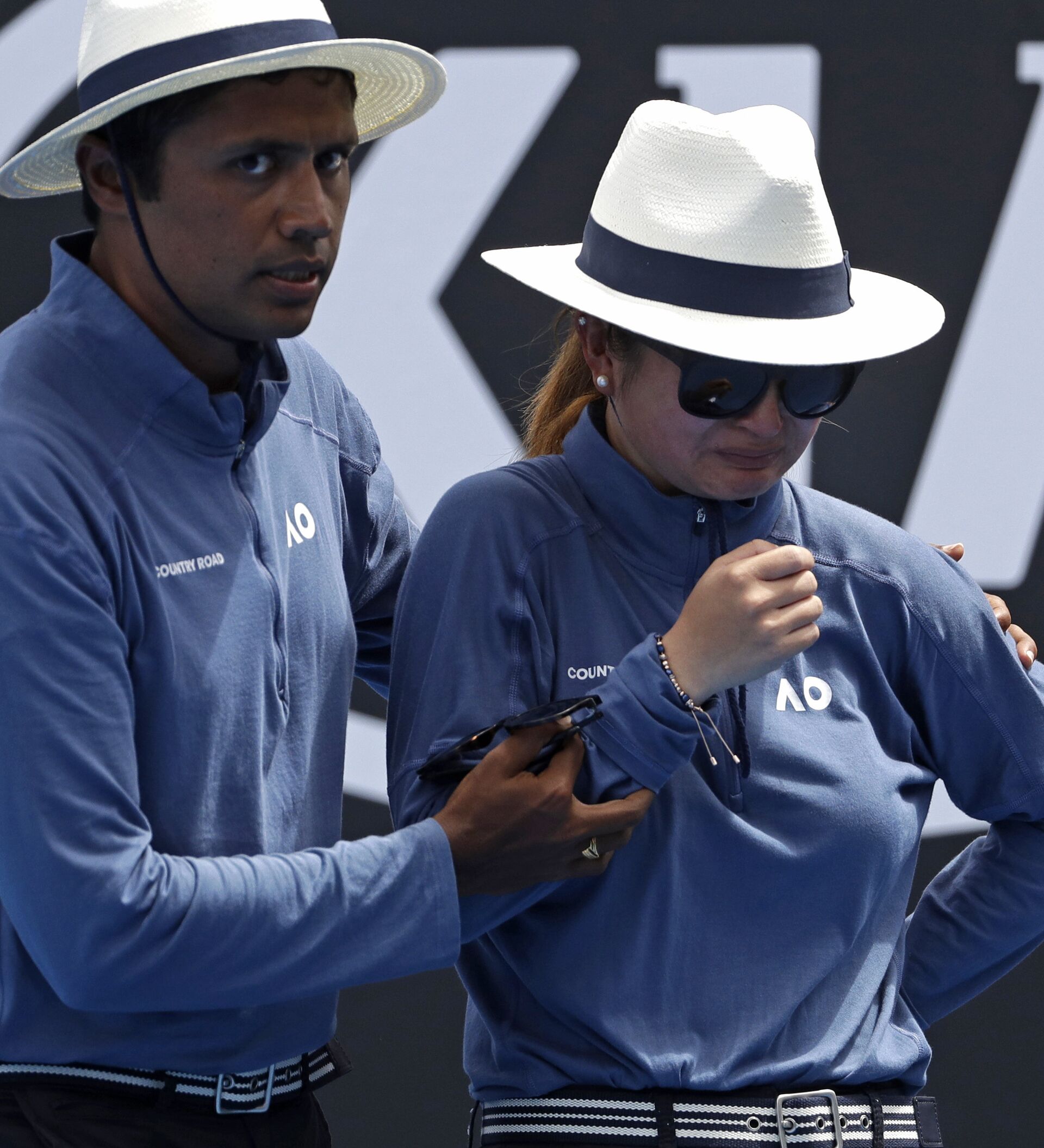© AP Photo / Mark SchiefelbeinUna jueza de línea se retira por un bolazo durante el Open de Australia