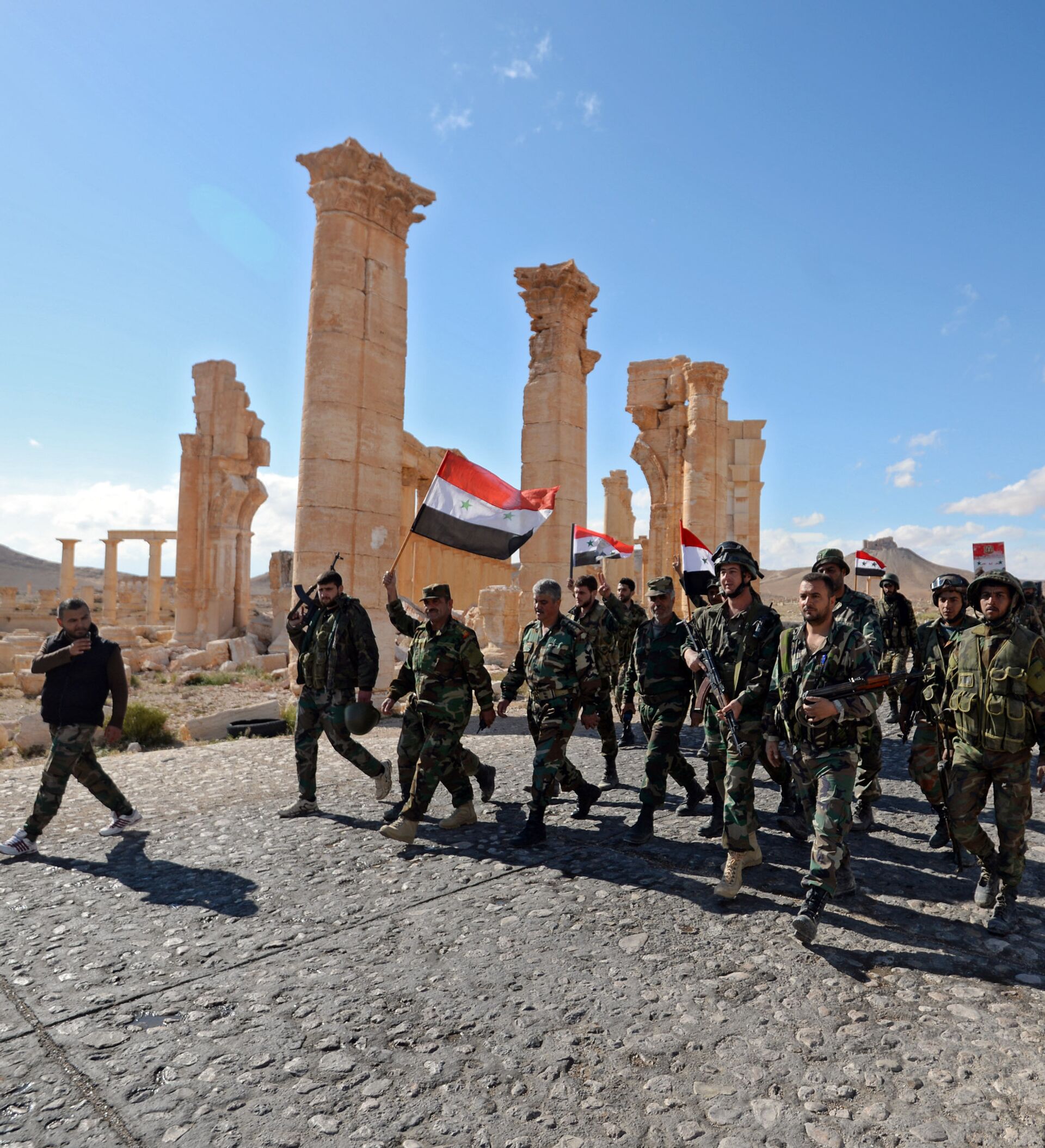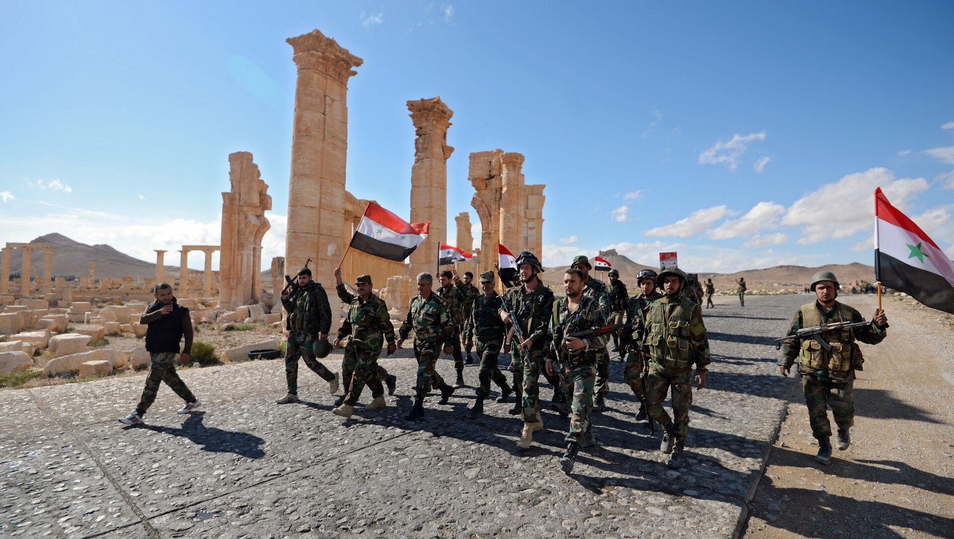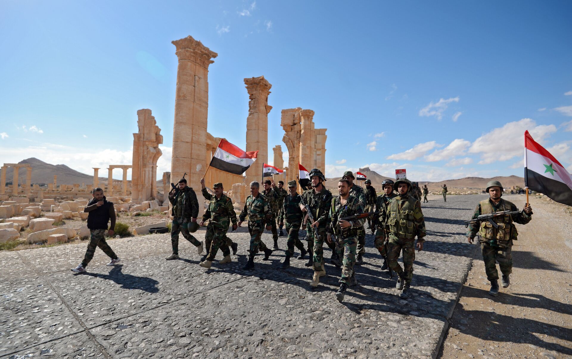 © Sputnik / Mikhail Voskresensky / Acceder al contenido multimediaSoldados sirios con la bandera nacional del país