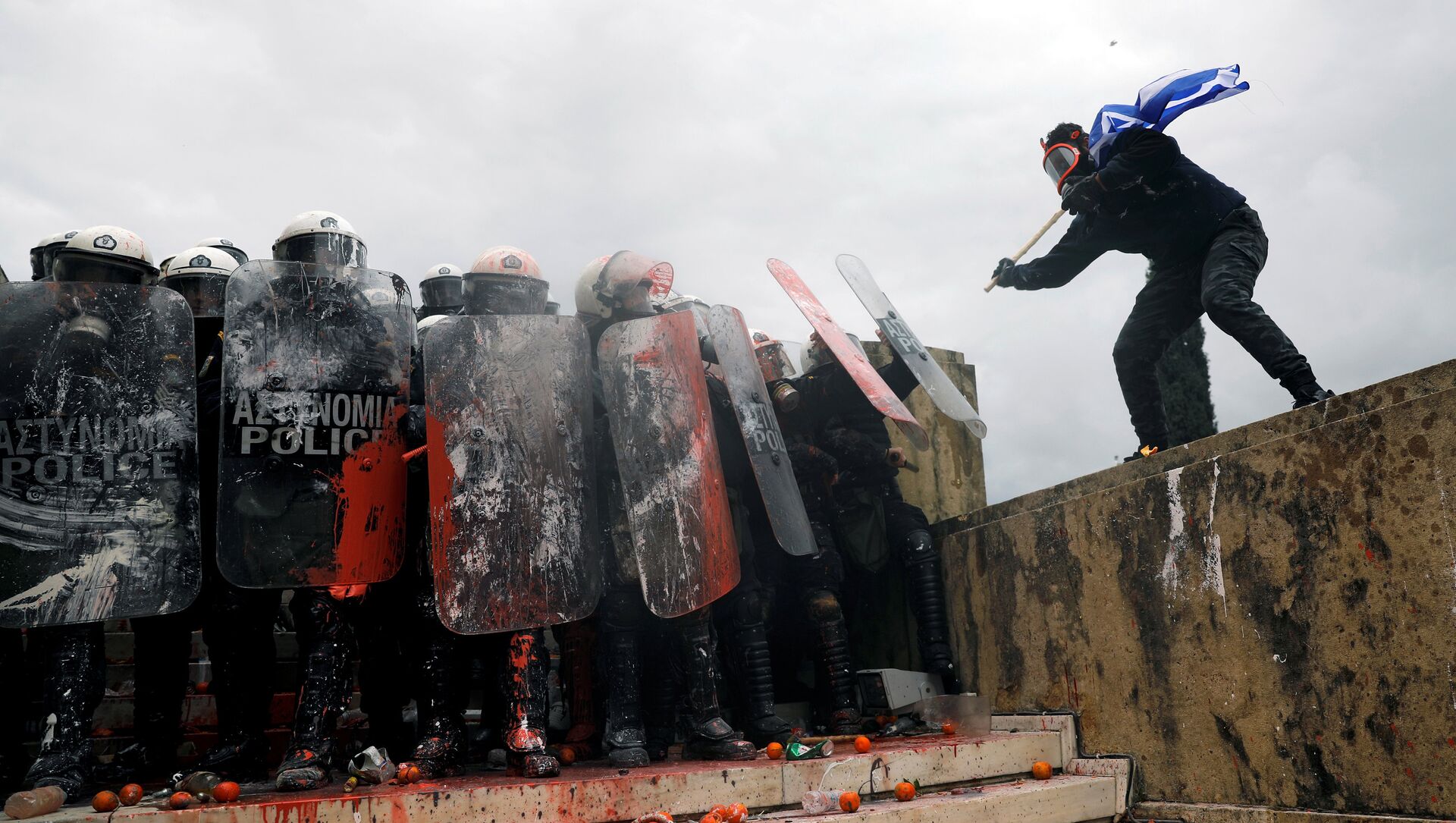 Las protestas se derivaron en enfrentamientos violentos entre la policía y los manifestantes que lanzaron piedras, botellas y cócteles molotov.