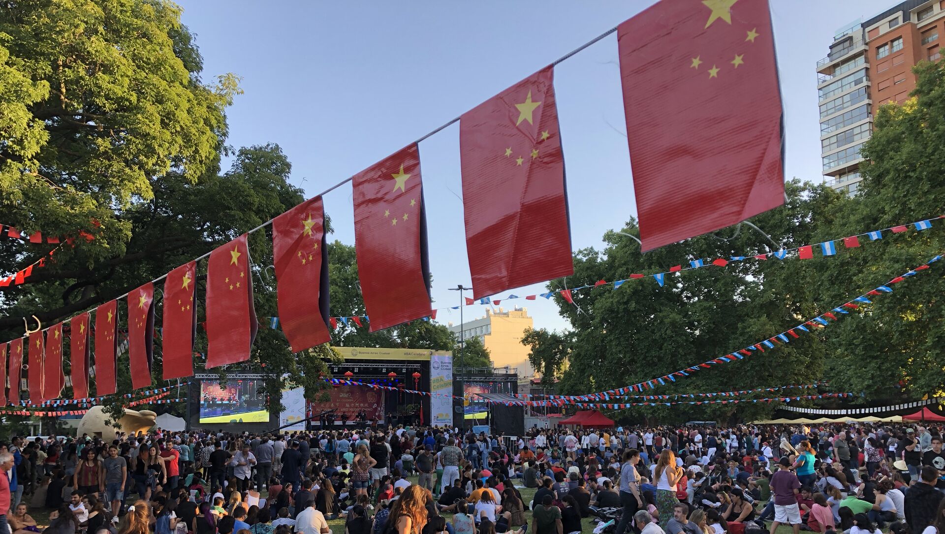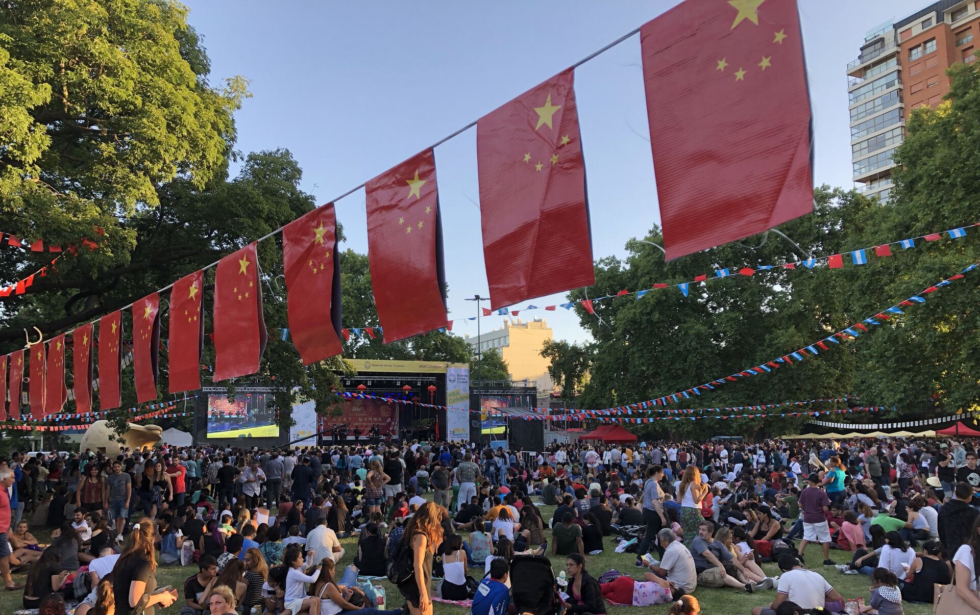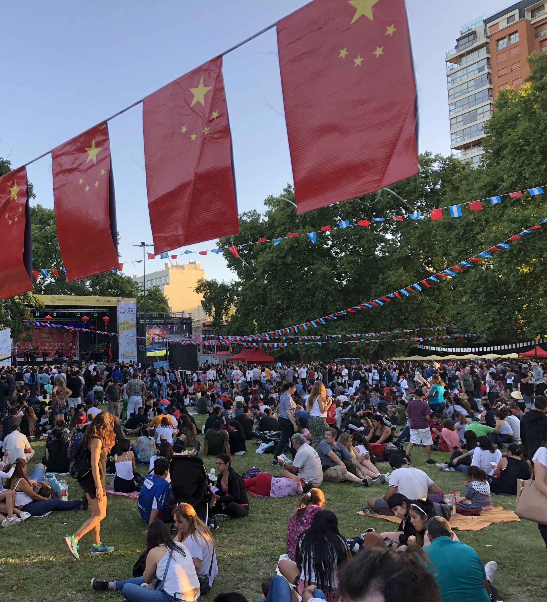 La multitud era inmensa y en la Plaza Parques Nacionales del barrio porteño de Belgrano costaba trabajo circular. Cientos de personas miraban las presentaciones de danza, artes marciales y música tradicional china y otros cientos recorrían los 40 puestos gastronómicos y culturales montados en el perímetro del parque.