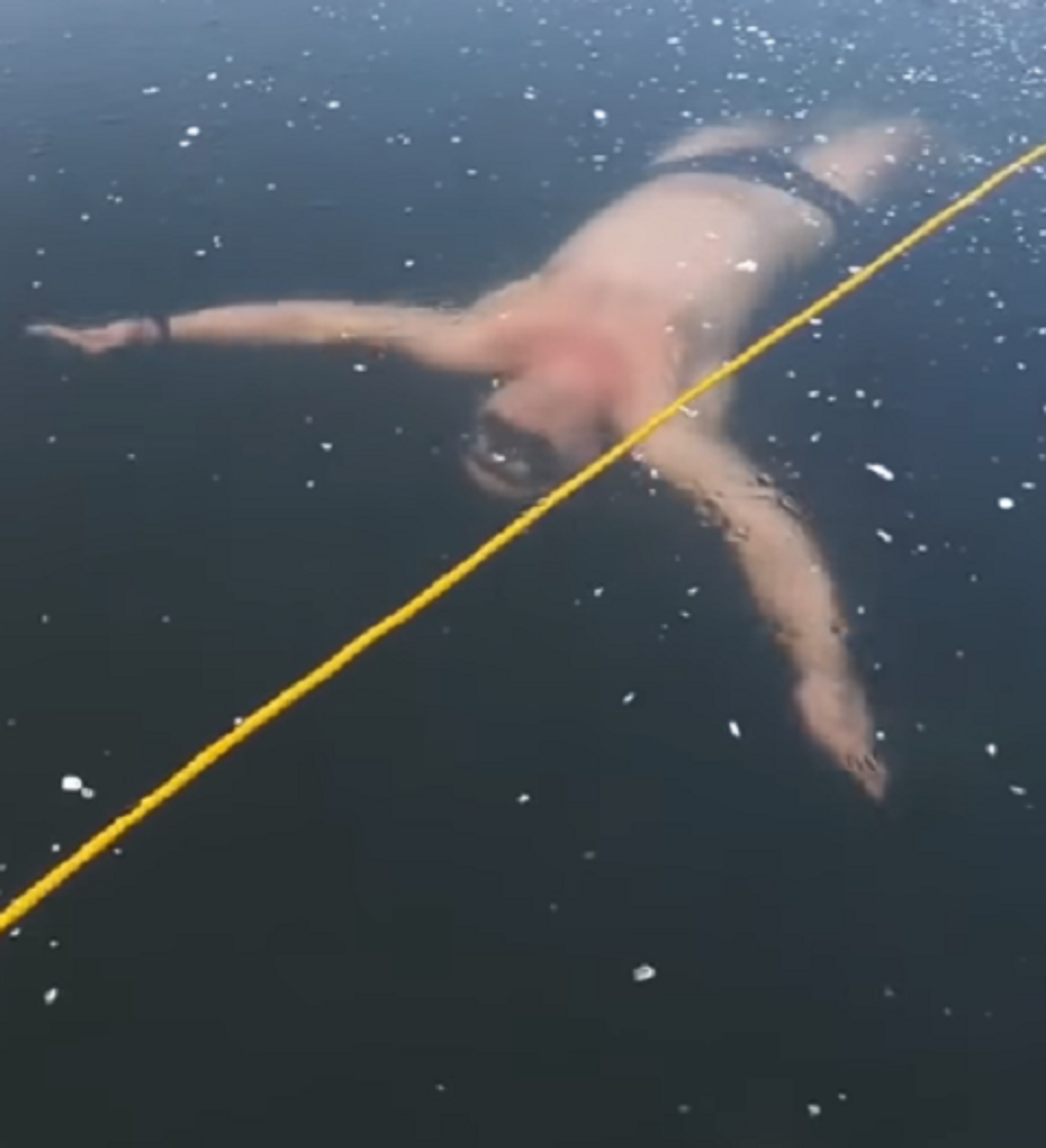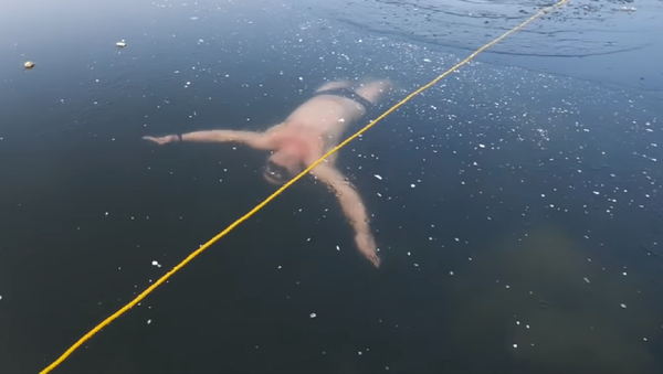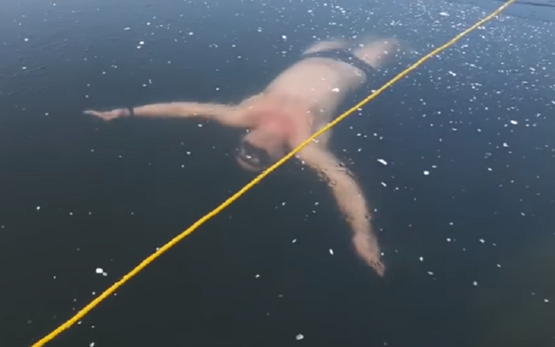 En el vídeo se observa cómo el hombre se sumerge en las aguas heladas del lago, después de lo cual nada debajo de la capa de hielo durante casi un minuto.
