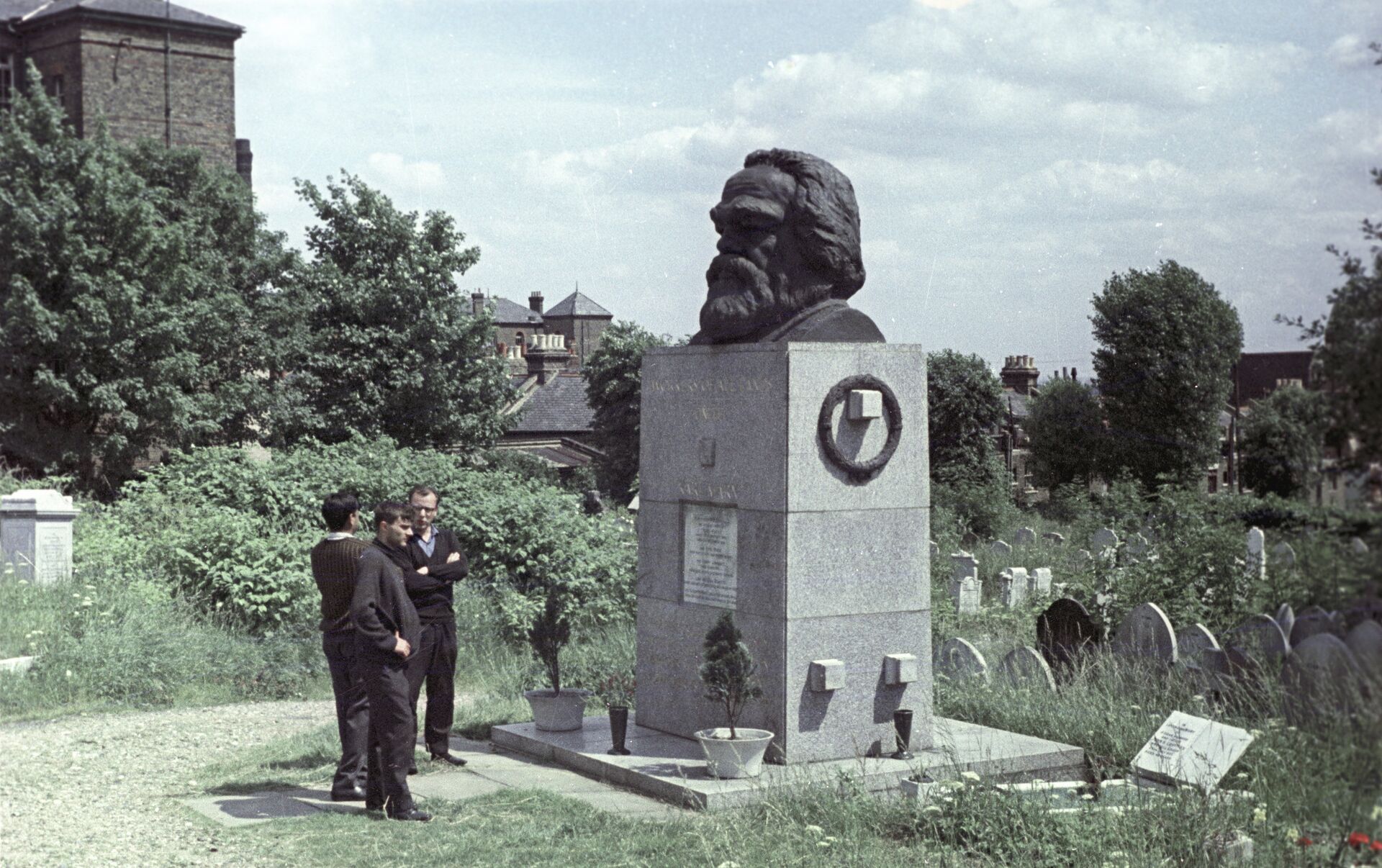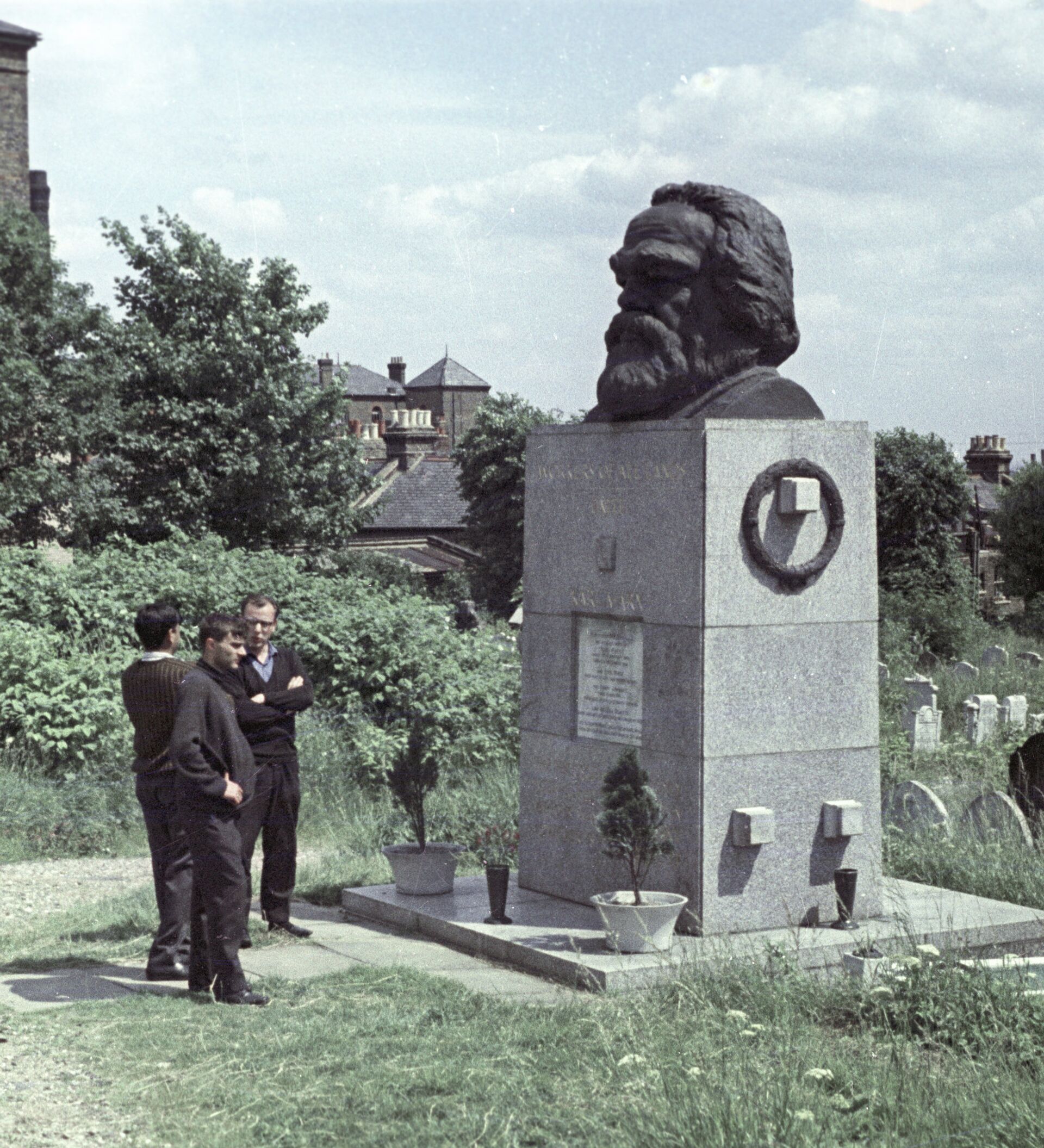 Sin embargo, ello no obstó a que se encontrara picado por el filo de un martillo el mármol de la lápida donde figuran los nombres de Marx y su familia. Esta pieza es de la tumba original, ubicada en otro emplazamiento en Highgate. En la década de 1950 se le construyó un nuevo panteón, con granito y un busto, gracias a los aportes del Partido Comunista de Gran Bretaña.