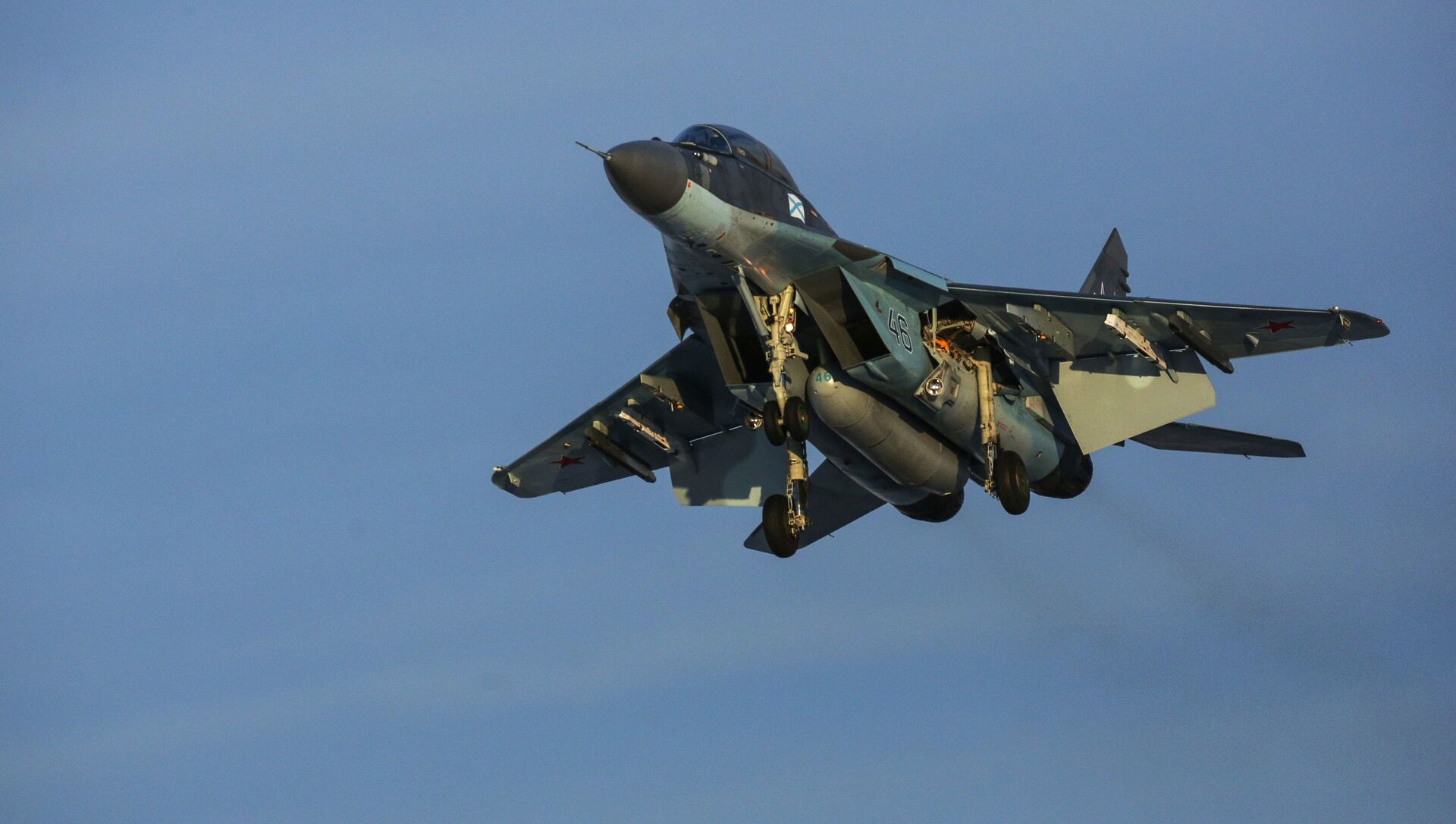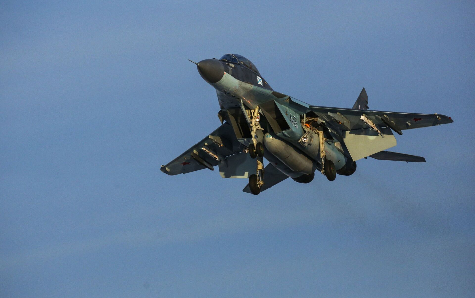 Un caza polivalente naval MiG-29K durante los vuelos de entrenamiento.