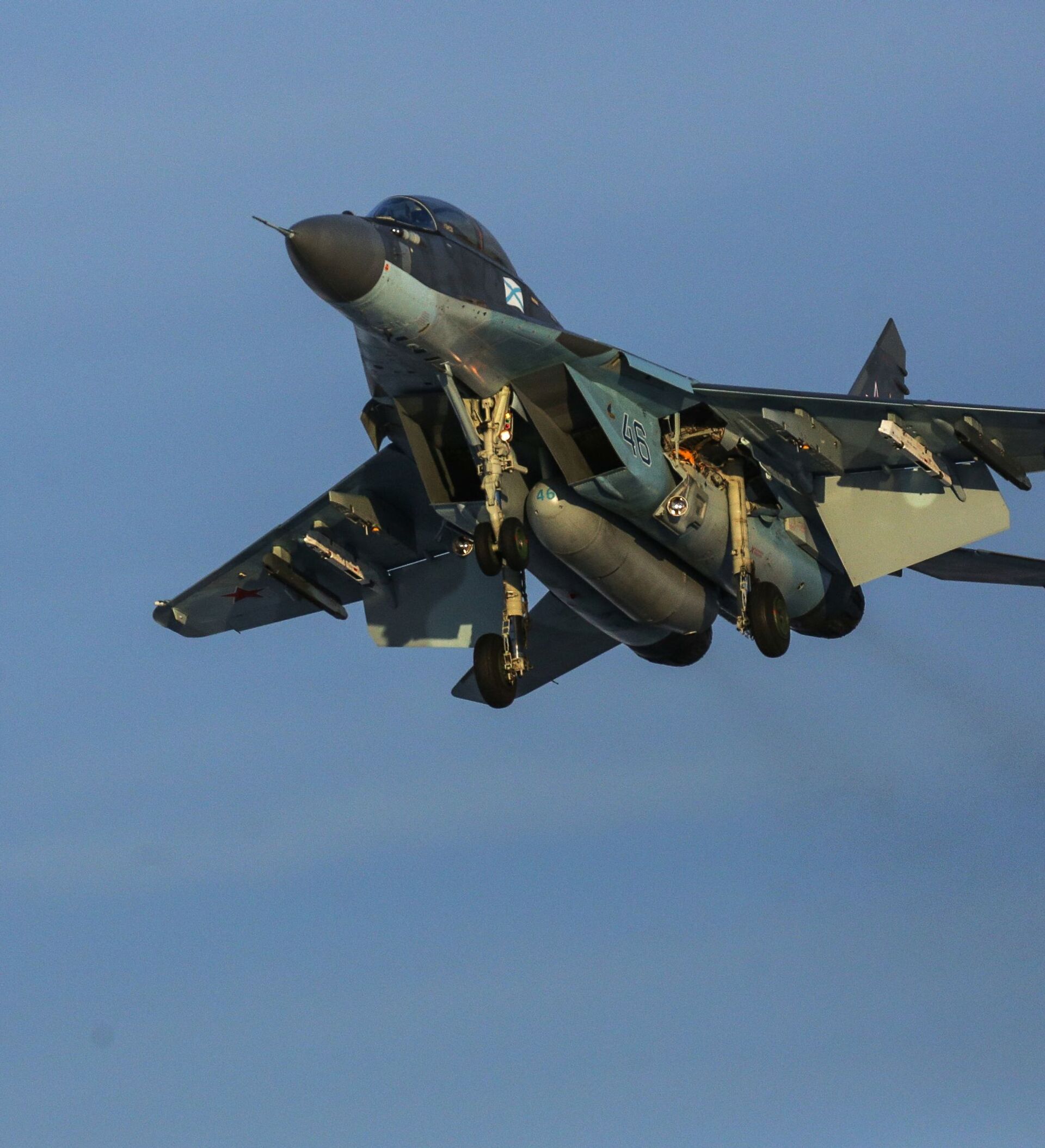 Preparación para el vuelo de un caza polivalente naval MiG-29K.