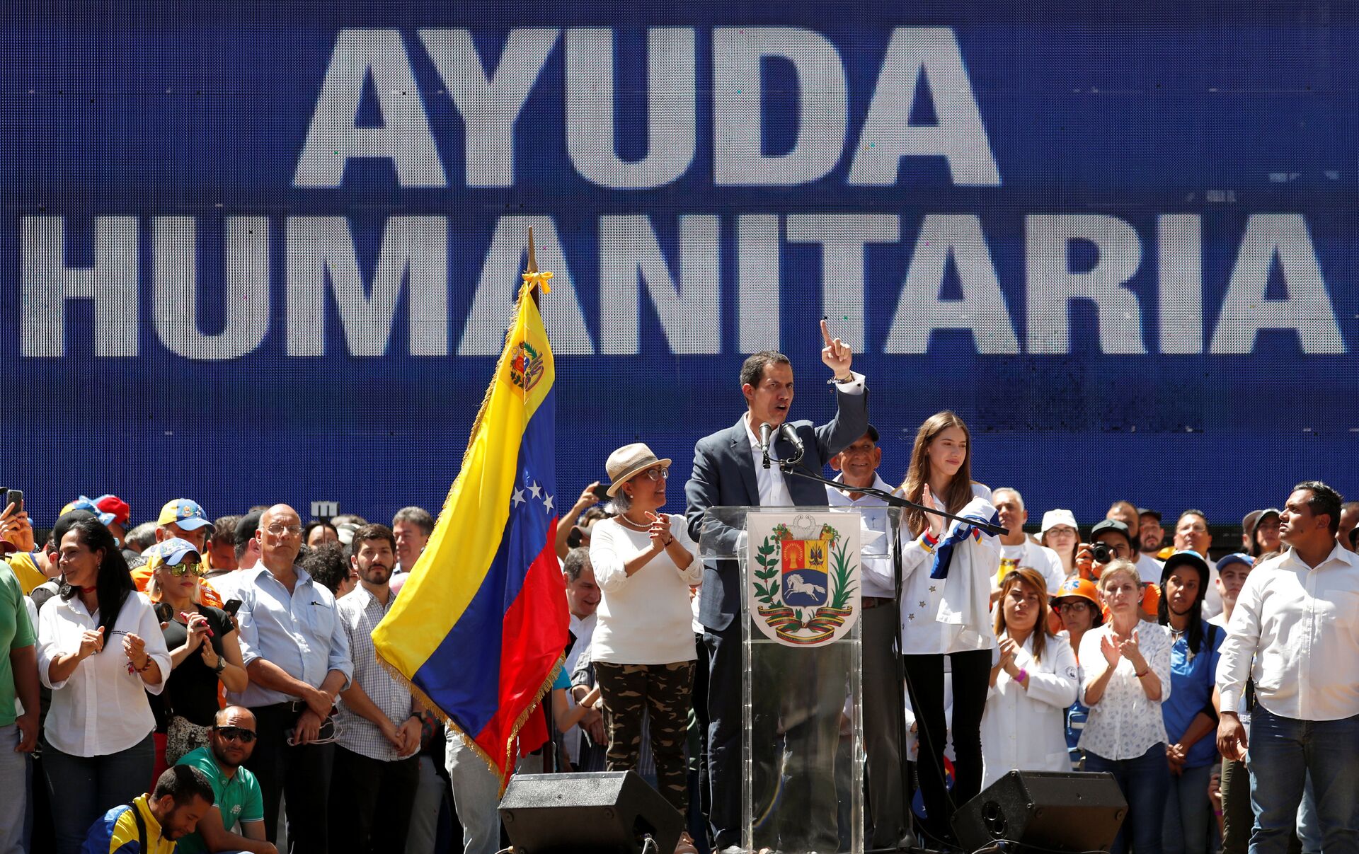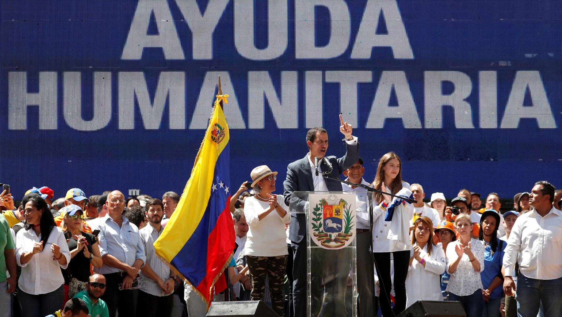 Uno de los asistentes a la ceremonia de recepción de la ayuda fue el embajador de Colombia en Estados Unidos, Francisco Santos, quien dijo a Sputnik que no se ha hablado de intervención militar a Venezuela.