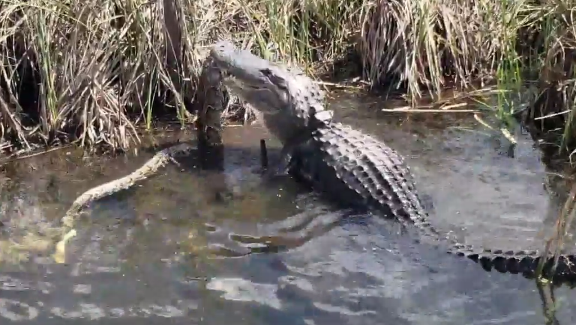 Así se zampa un caimán a una pitón de tres metros