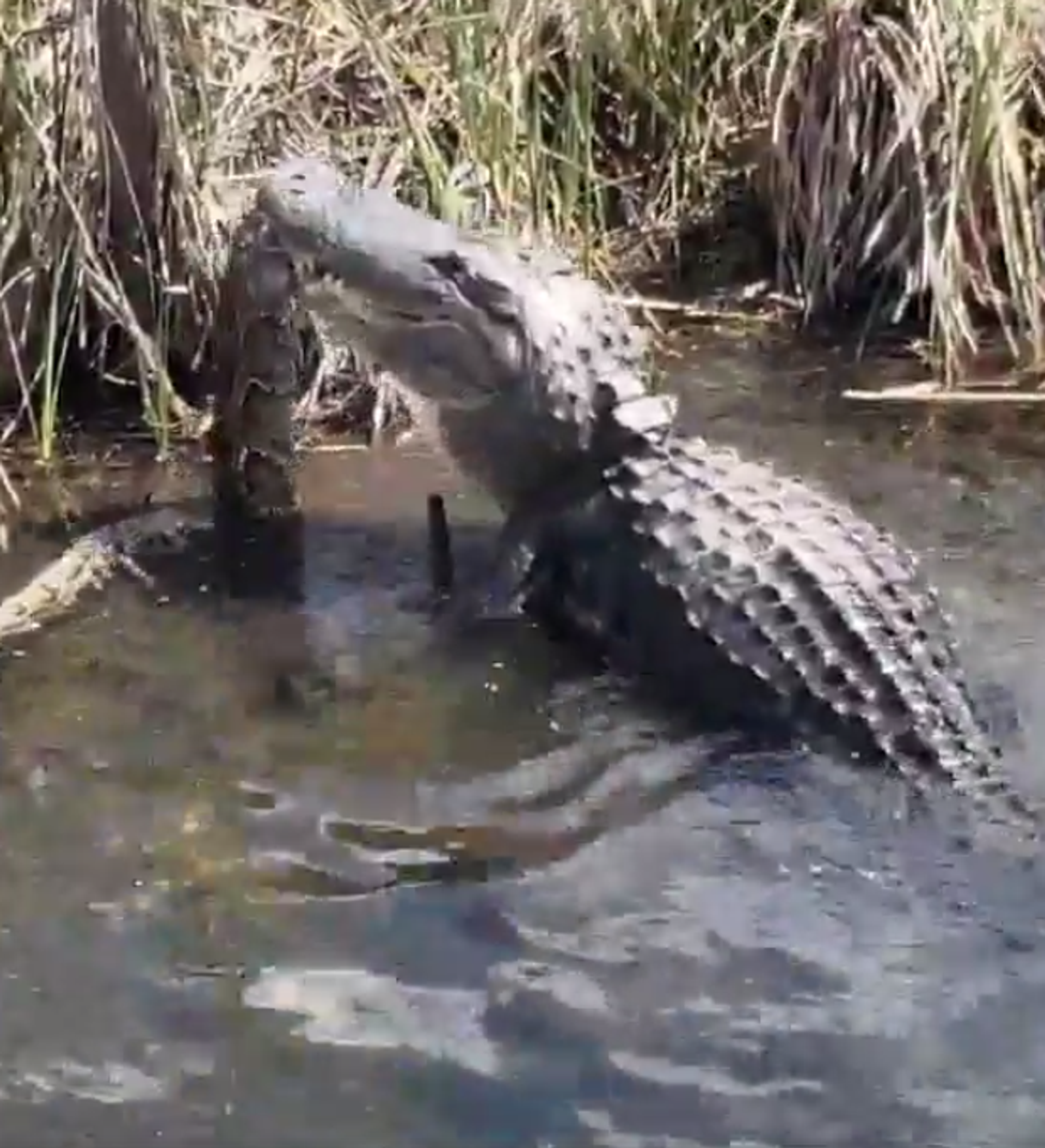 El vídeo lo filmó un estadounidense que pasaba por allí en bicicleta y luego lo subió a su cuenta de Facebook. La balanza acabó decantándose por el enorme cocodrilo. Acabó clavando sus poderosas fauces y, finalmente, desapareciendo en las profundidades del agua.