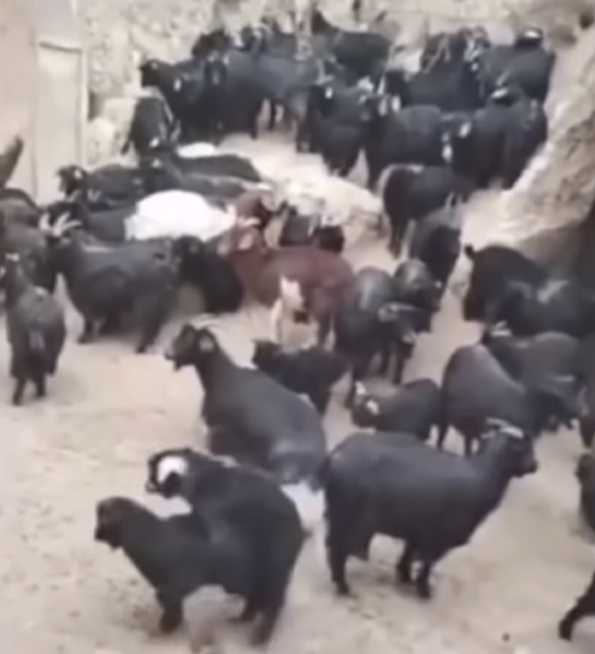 La grabación, realizada por la hija del granjero, muestra al hombre sentado detrás de una mesa con un micrófono en la mano y dirigiéndose a decenas de cabras negras que se congregaron en el patio.