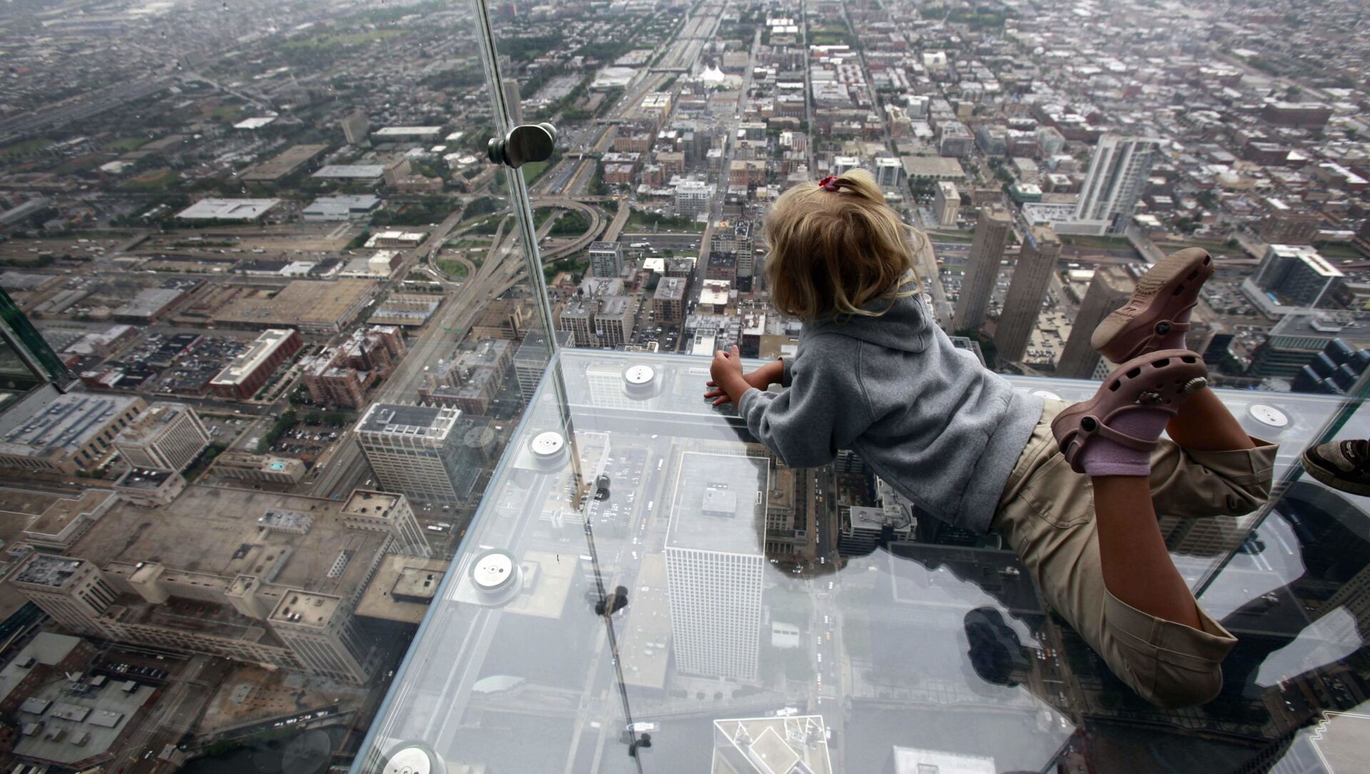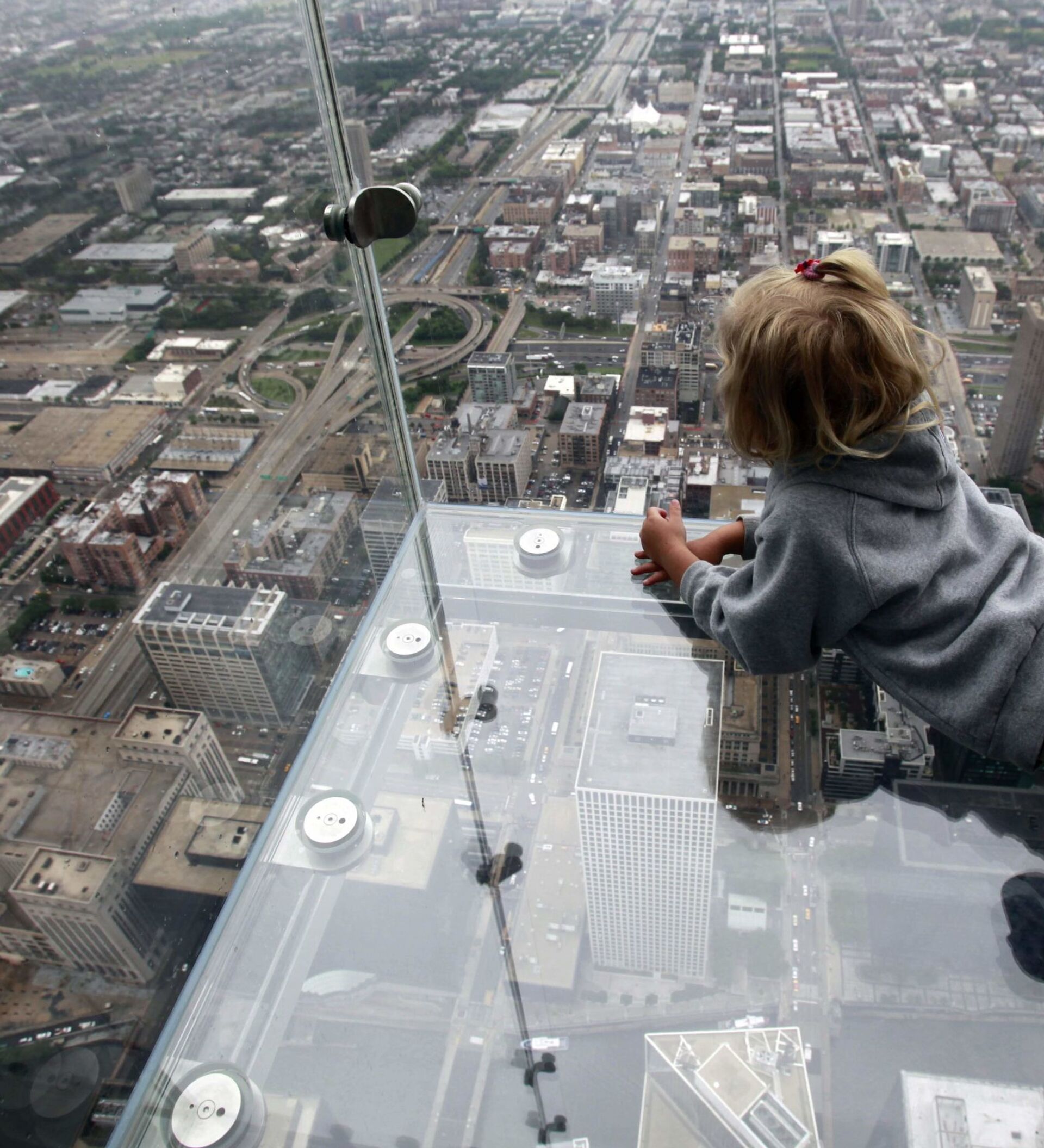 El mirador de cristal Skydeck Ledge, inaugurado en 1974, está ubicado en el piso 103 del rascacielos Sears Tower de Chicago, a 412 metros de altura. Esta insólita cabina de cristal es una de las atracciones turísticas más emblemáticas y populares de la ciudad estadounidense.