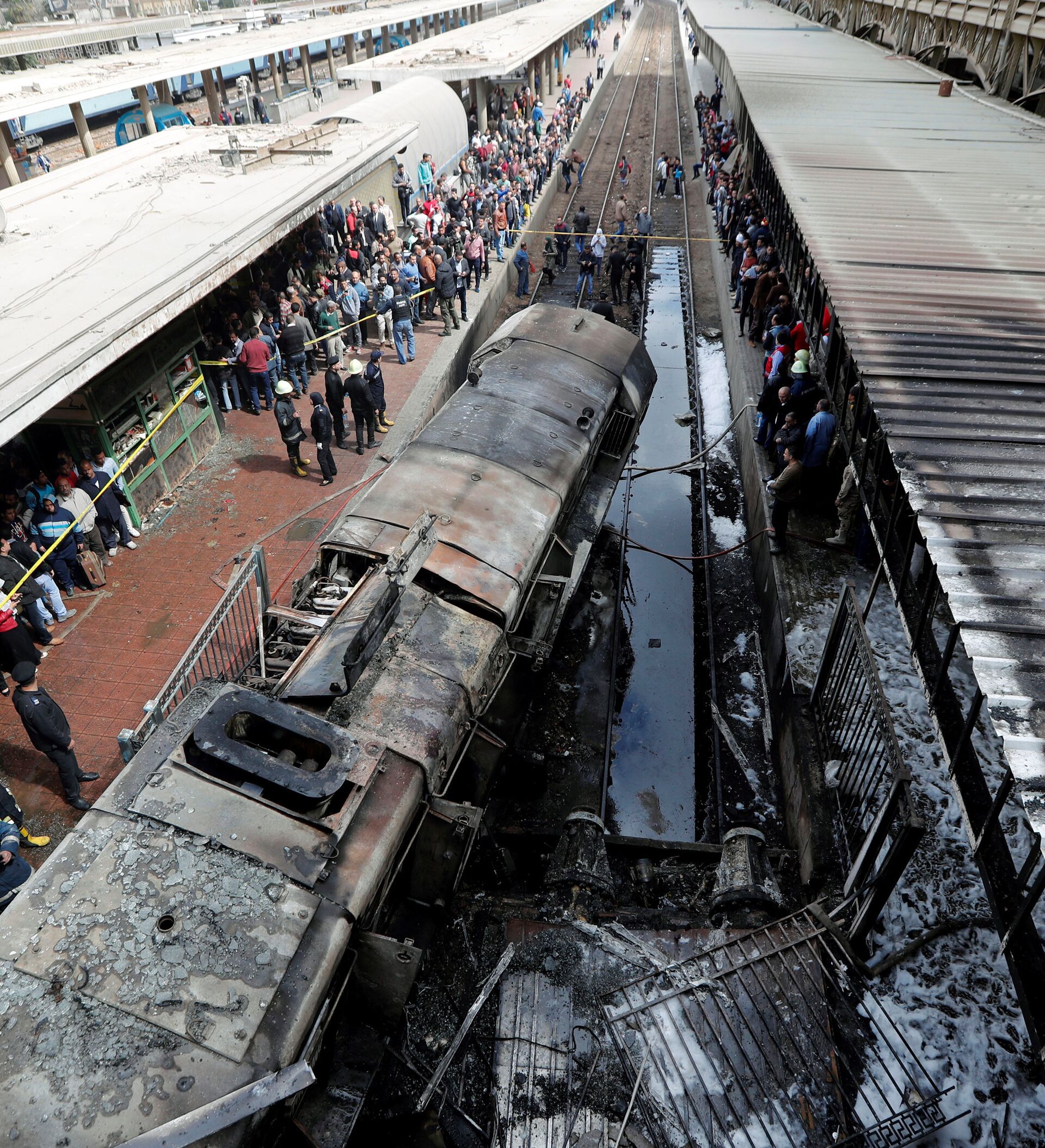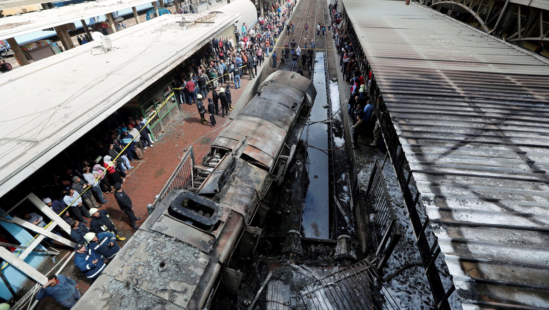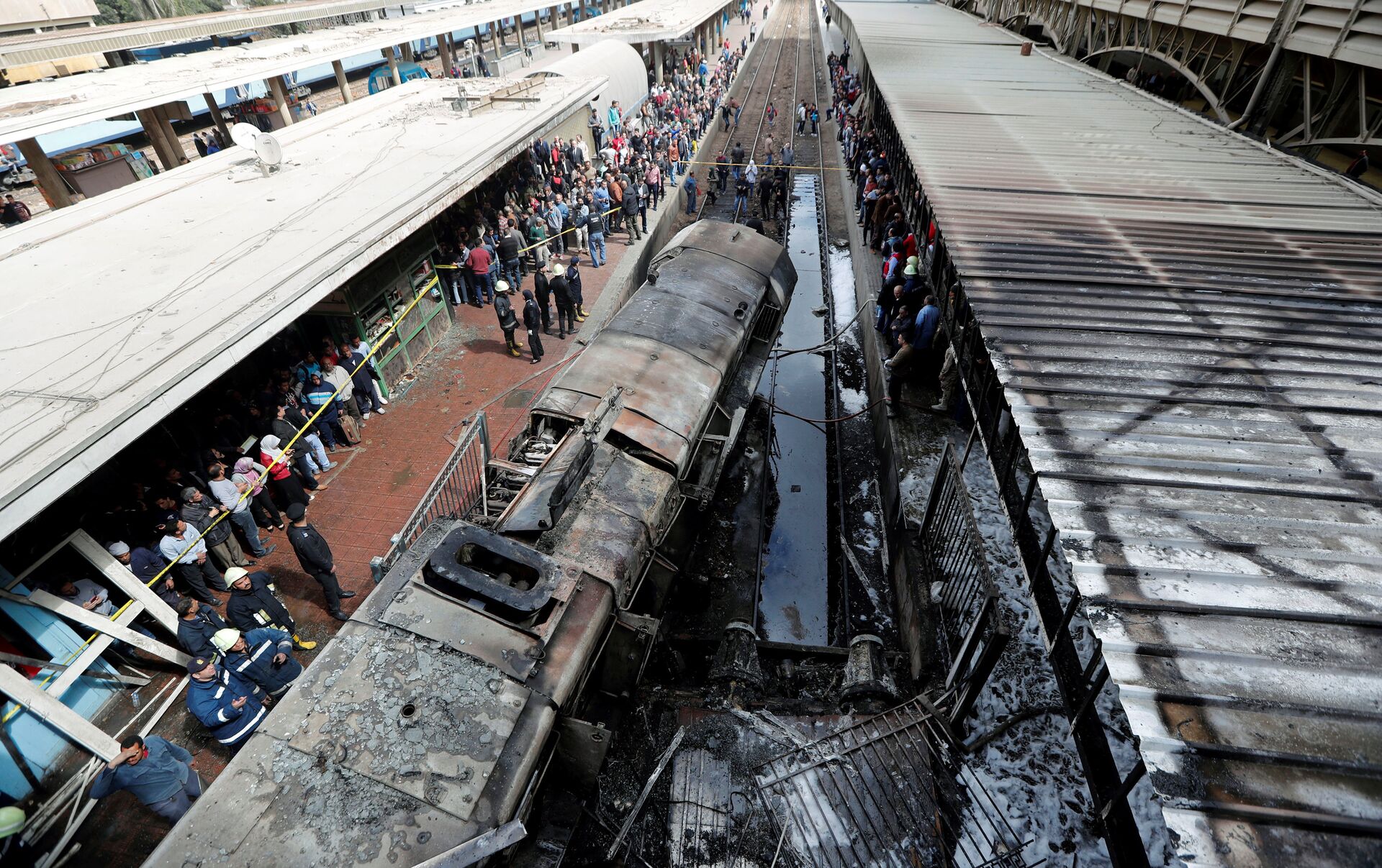 © REUTERS / Amr Abdallah DalshRescue workers and people are seen after a fire caused deaths and injuries at the main train station in Cairo, Egypt, February 27, 2019. REUTERS/Amr Abdallah Dalsh