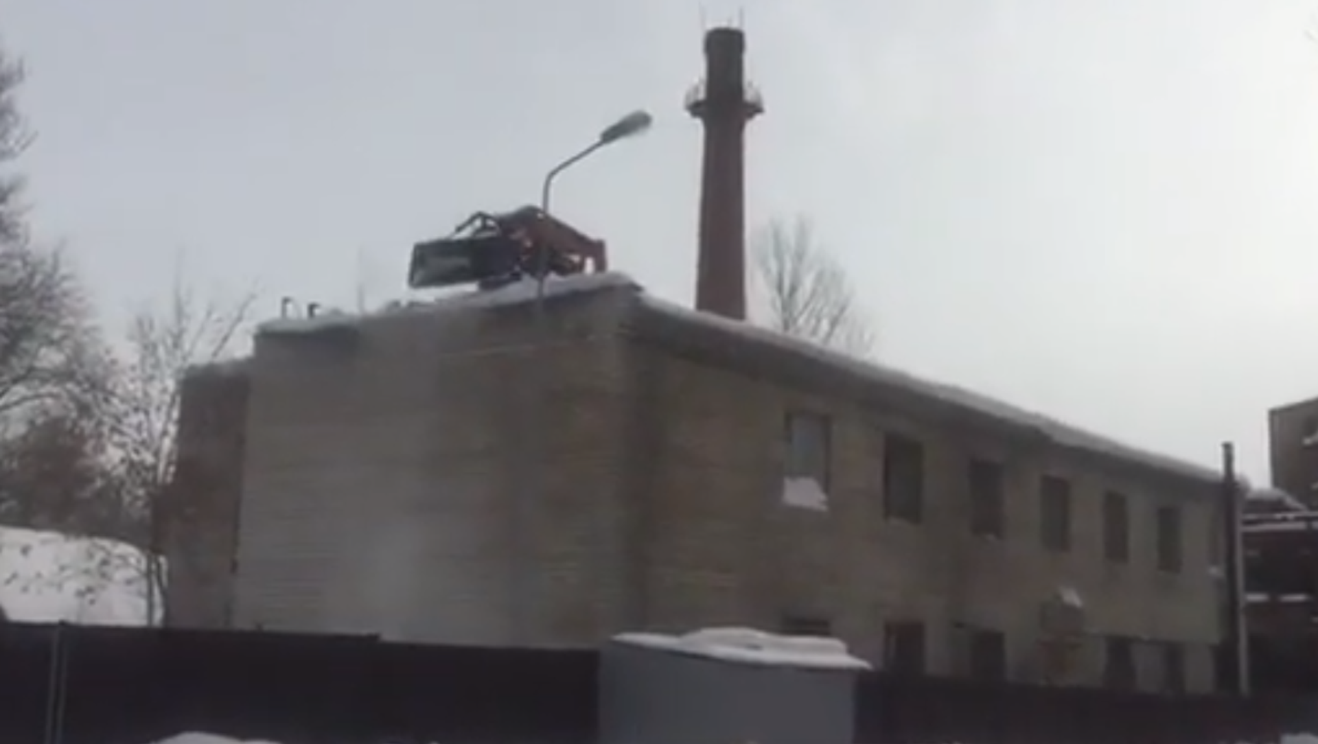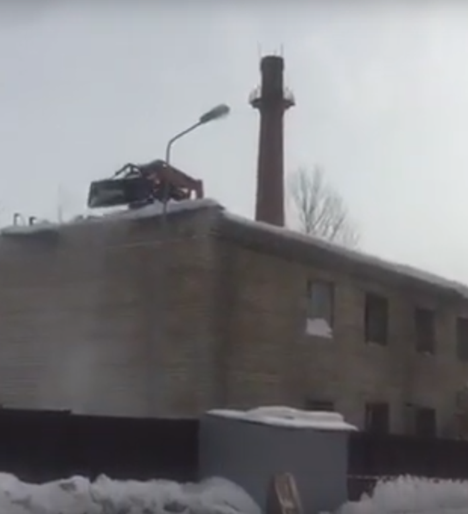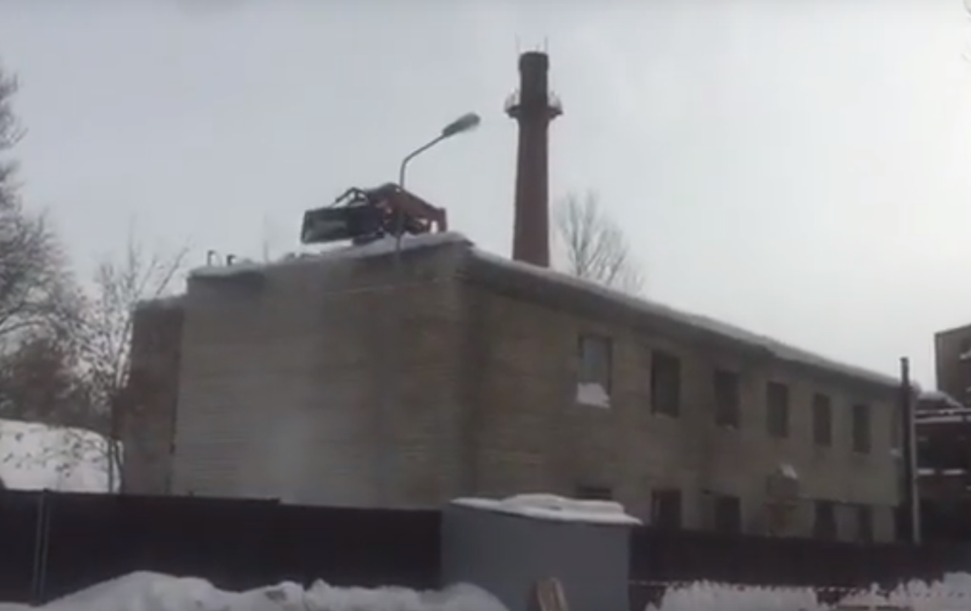 Mientras tanto en Rusia: un tractor quita la nieve del tejado de un edificio