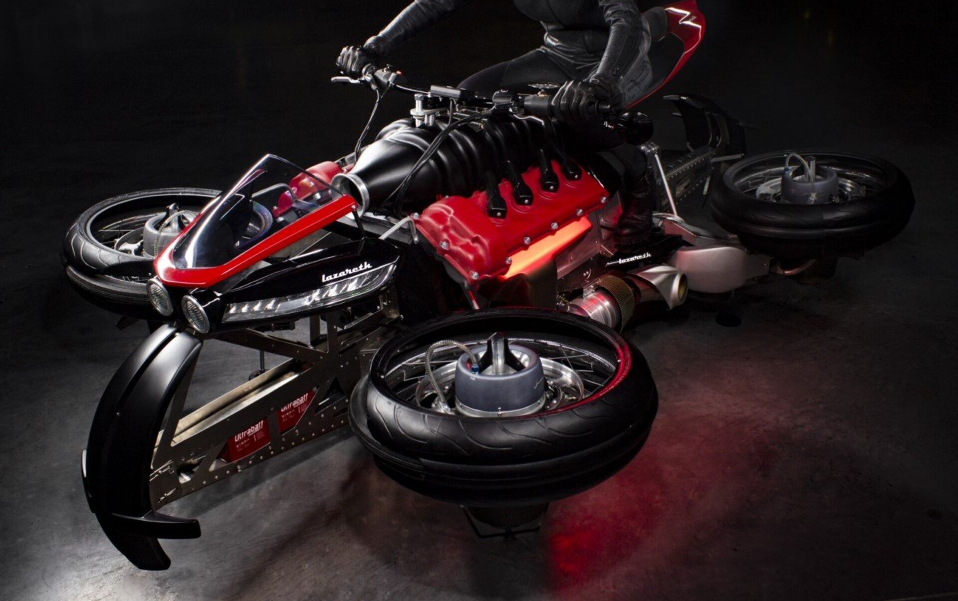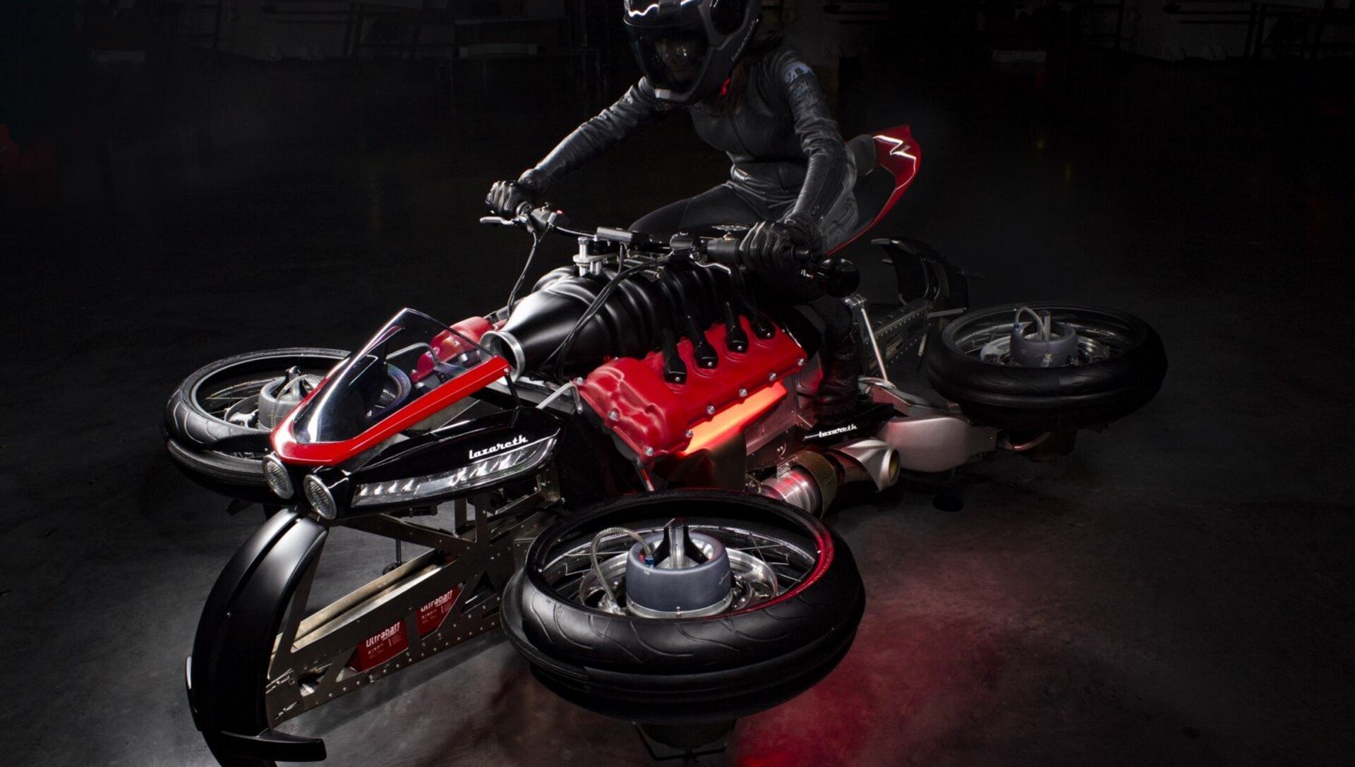 'La Moto Volante' de Lazareth es la segunda máquina equipada con motores reactivos para volar. El resto de las motos voladoras fueron construidas con hélices similares a los drones.