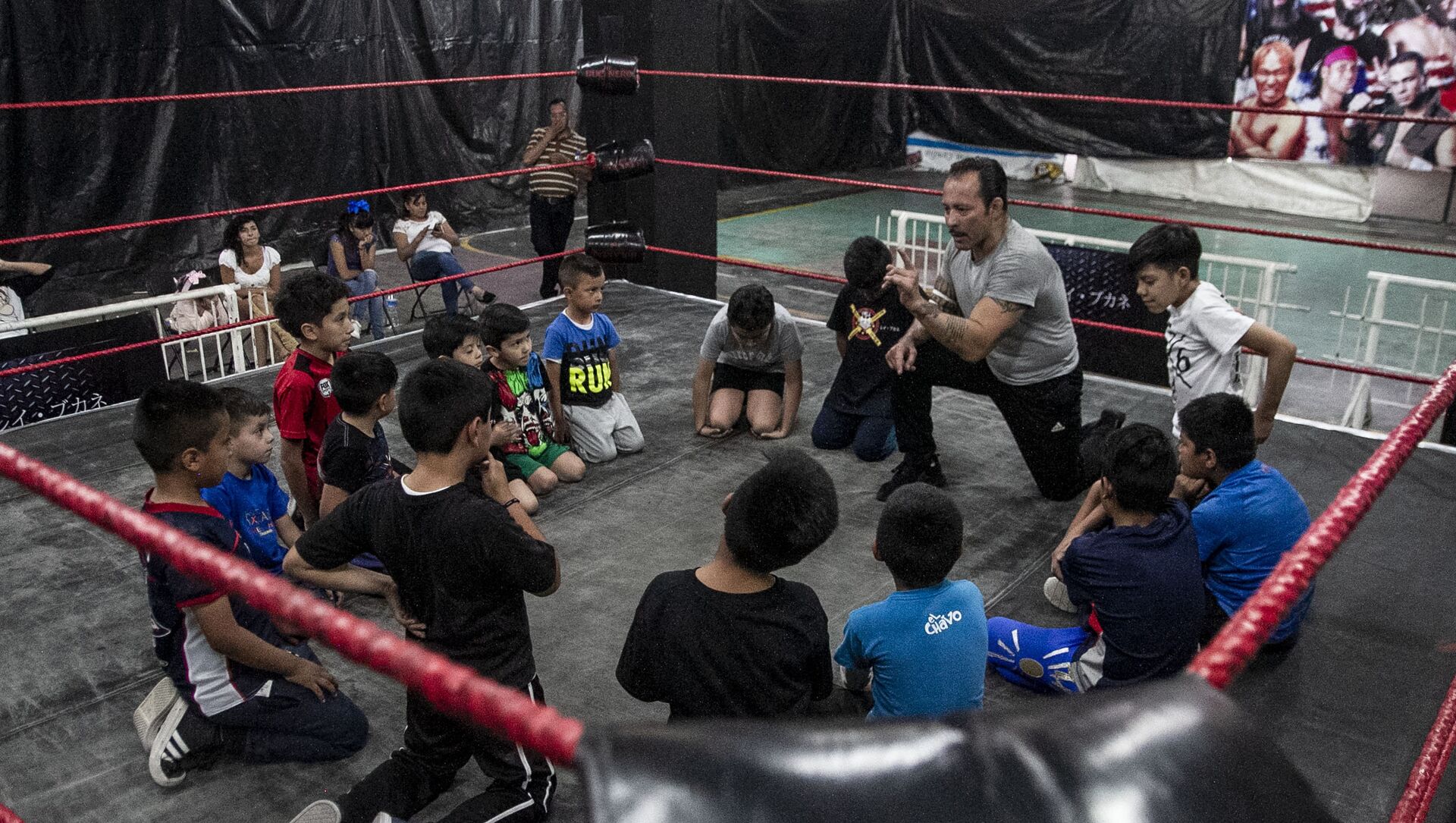 "A lo mejor todos estos niños no van a ser profesionales ni olímpicos, pero se hacen una forma de vida en la lucha y se queda para lo que quieran dedicarse. Es como en el ring, estás tú y el rival, tus desafíos de fuerza, de miedo, de todo", dice el profesor desde las cuerdas.
