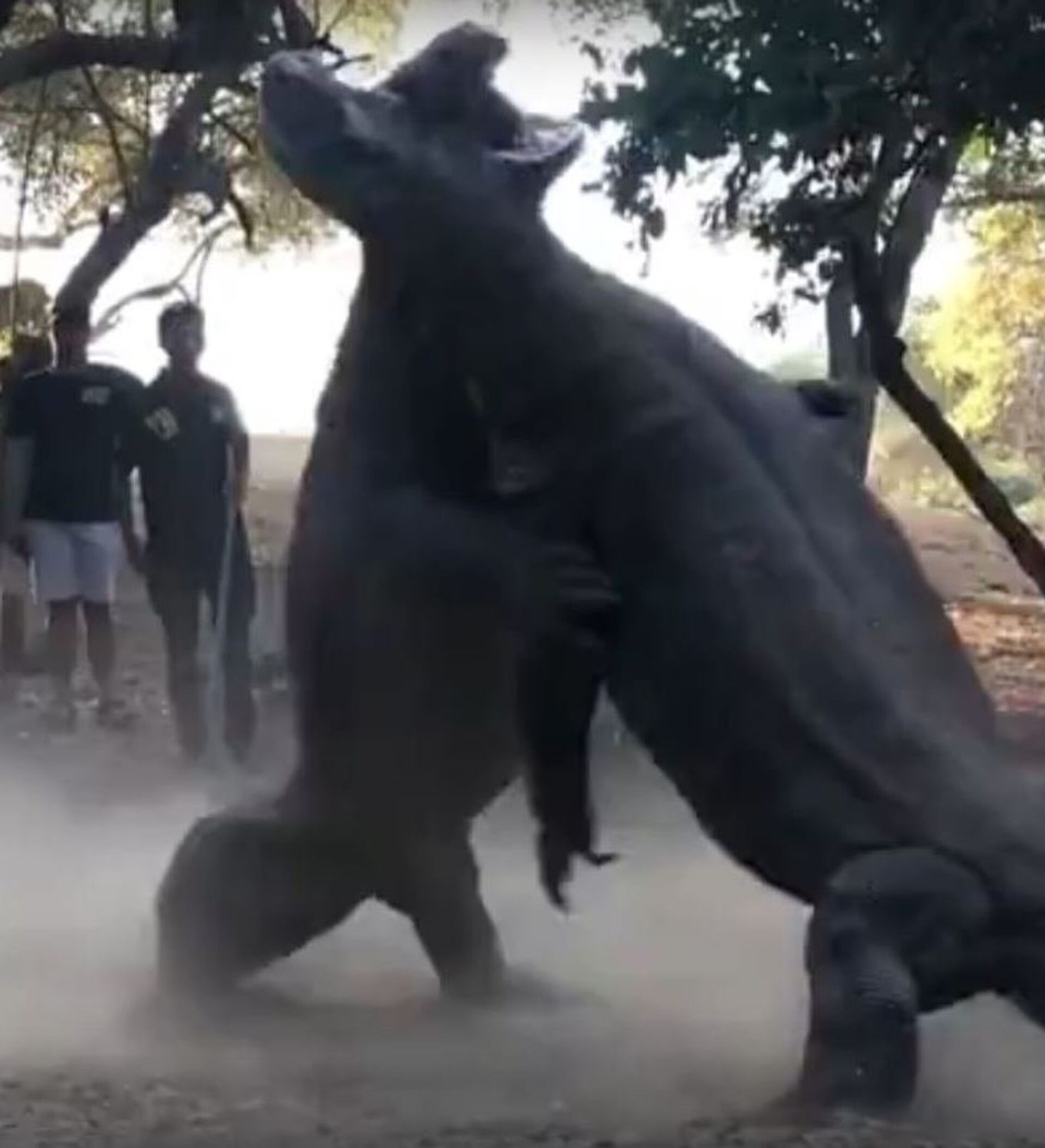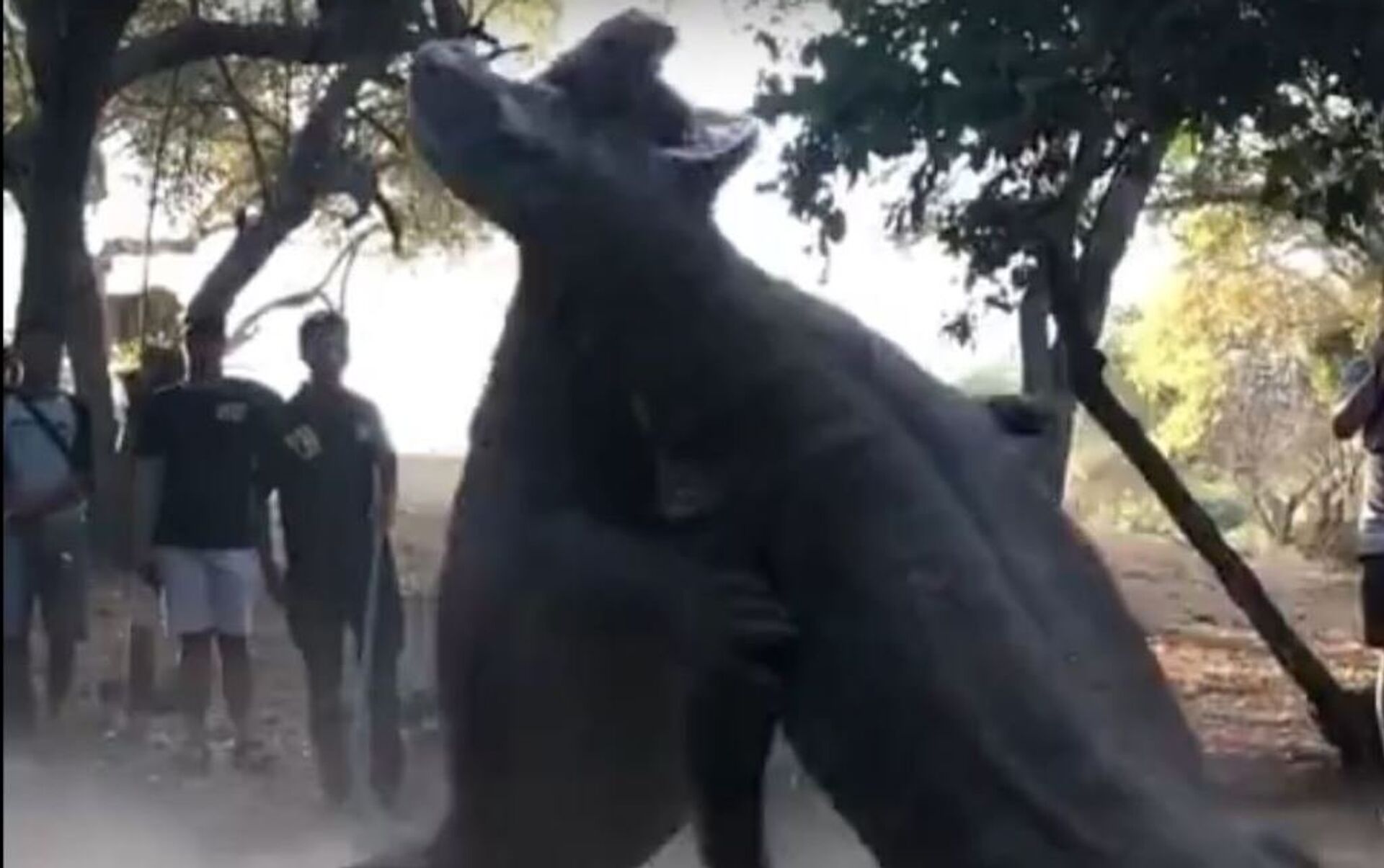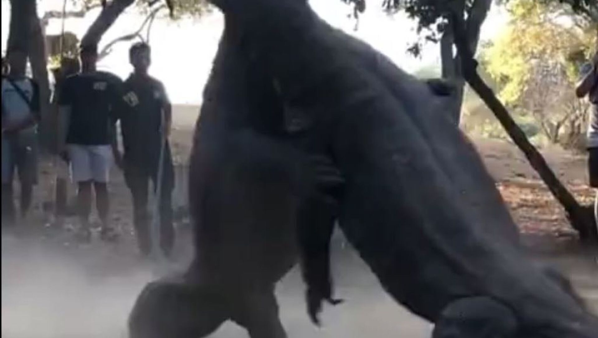 El autor del vídeo, Abuakam Aprillio, cuenta que estaba de excursión con unos turistas cuando se toparon con los gigantescos reptiles. A pesar de estar rodeados por una asombrada muchedumbre, los dos varanos de Komodo se enzarzaron en una feroz batalla.