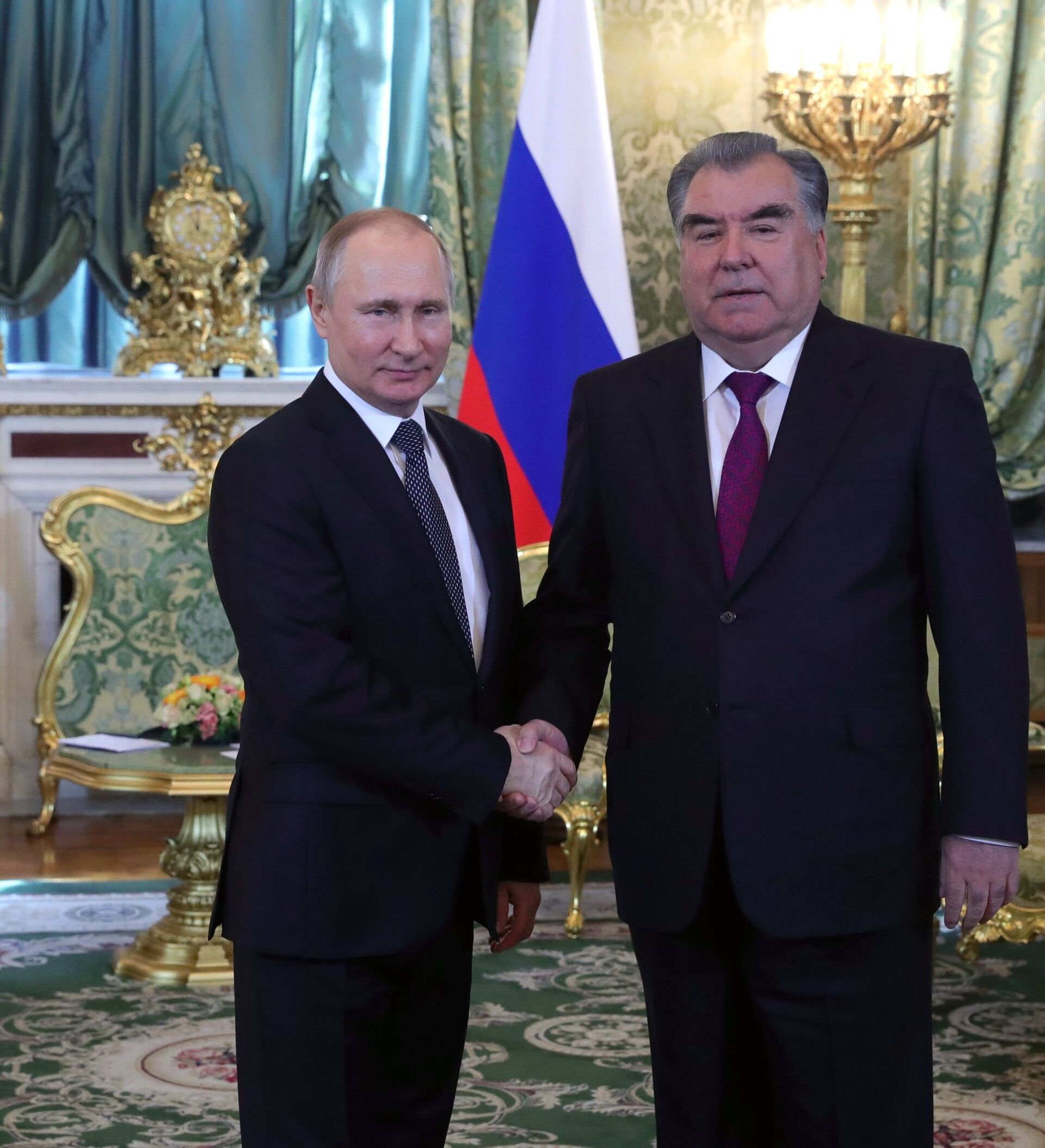 El presidente de Rusia, Vladímir Putin, y el presidente de Tayikistán, Emomali Rahmon - Sputnik Mundo