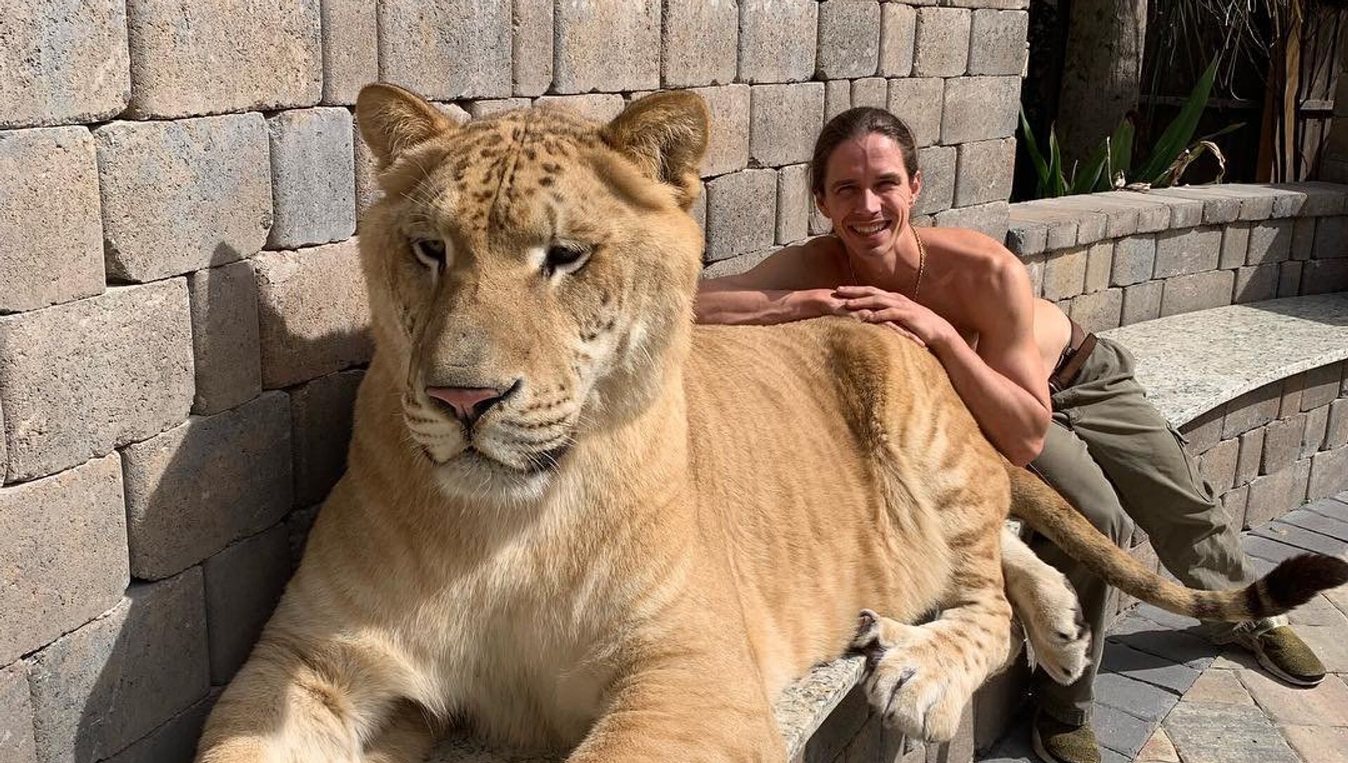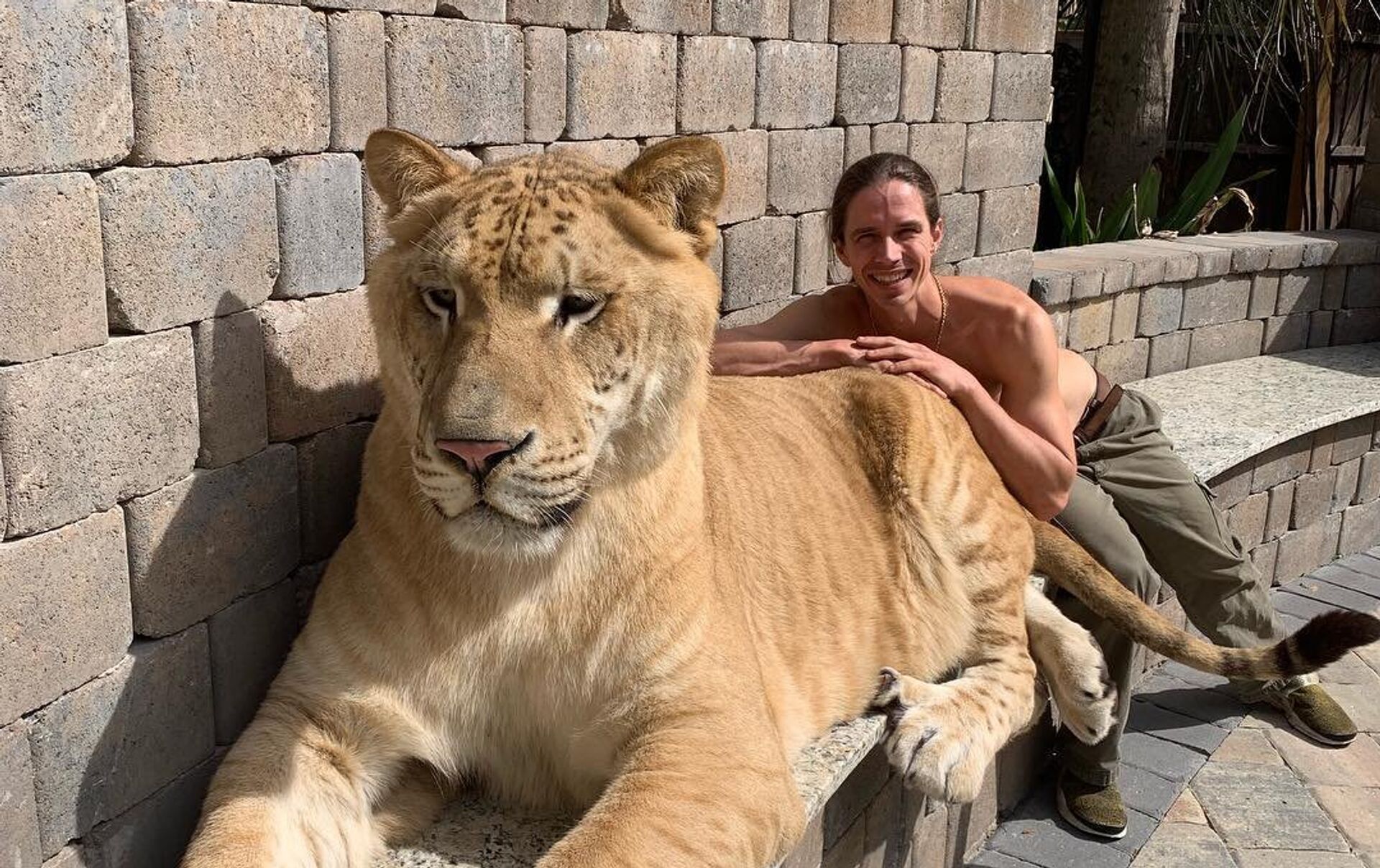 Kody Antle, conocido domador de grandes felinos, y su ligre Hércules - Sputnik Mundo