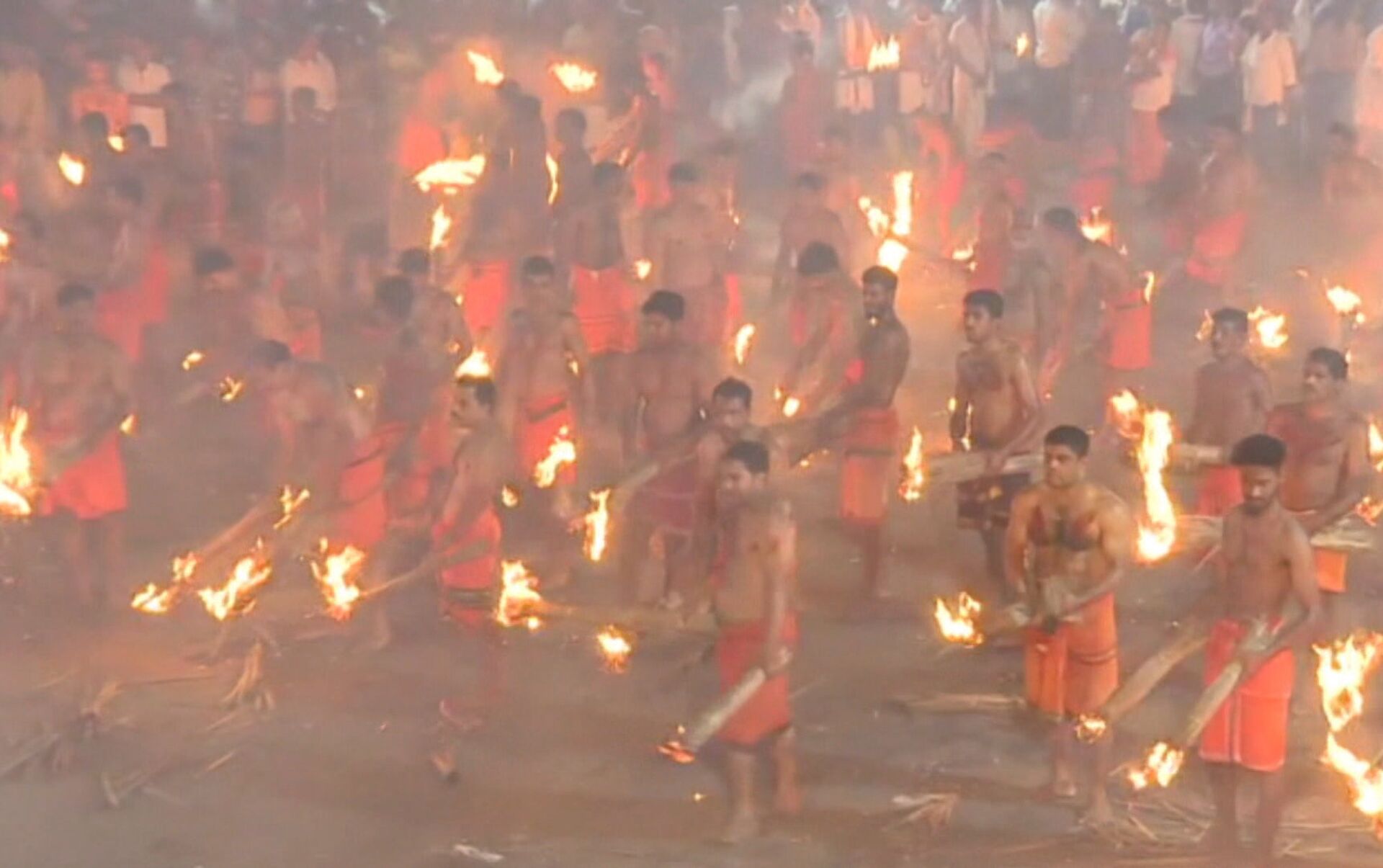 La ceremonia tiene reglas simples. Los participantes se dividen en dos grupos, que se enfrentan entre sí desde una distancia de 10 a 15 metros. Como parte del ritual, los devotos se deben arrojar hojas de palmera ardientes entre sí.