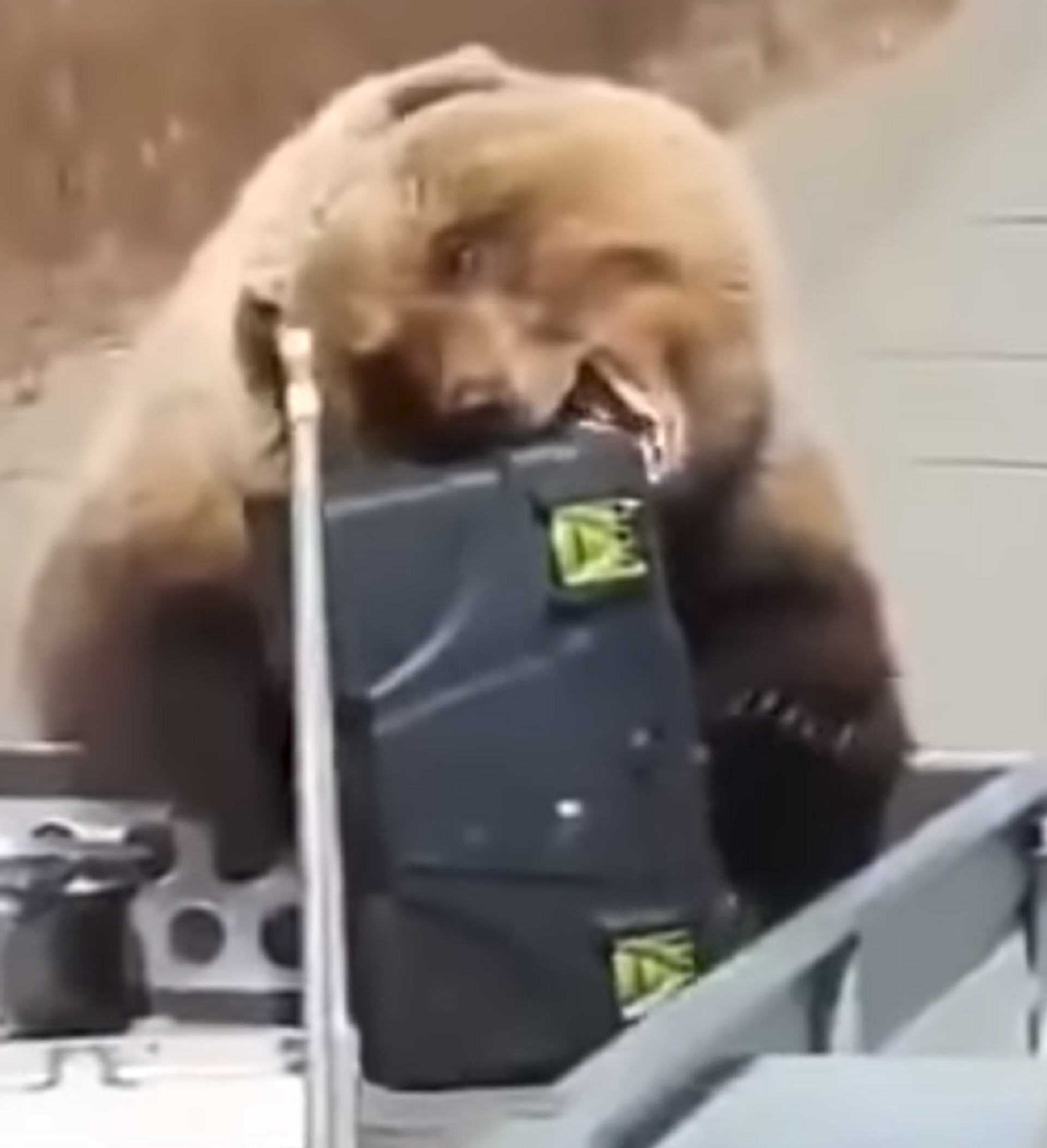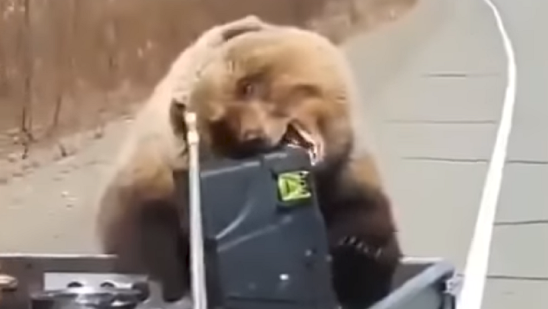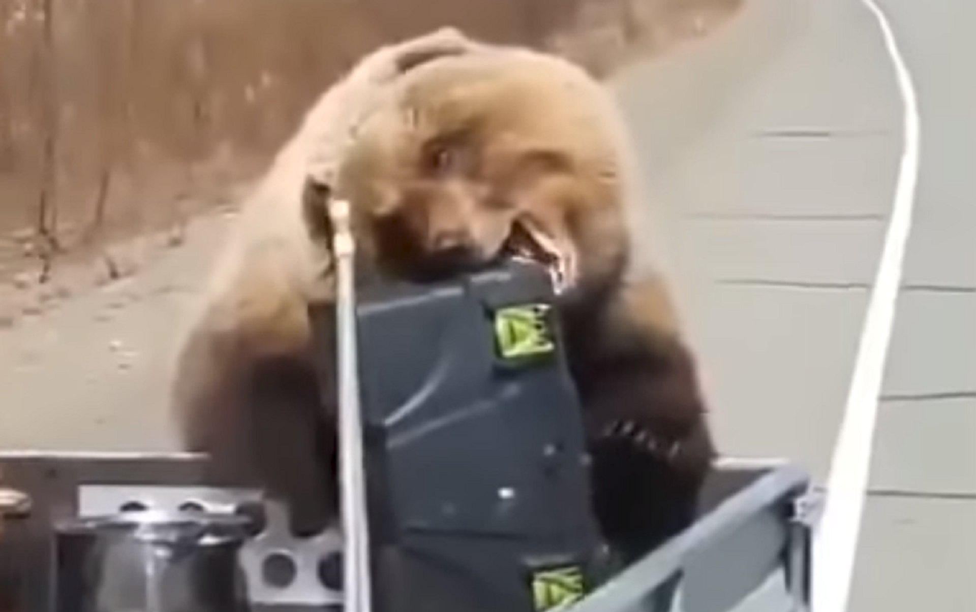 Los hombres se detuvieron a tomar un descanso y fue entonces cuando el osito se acercó a su camioneta y se robó el frigorífico en cuestión de segundos.