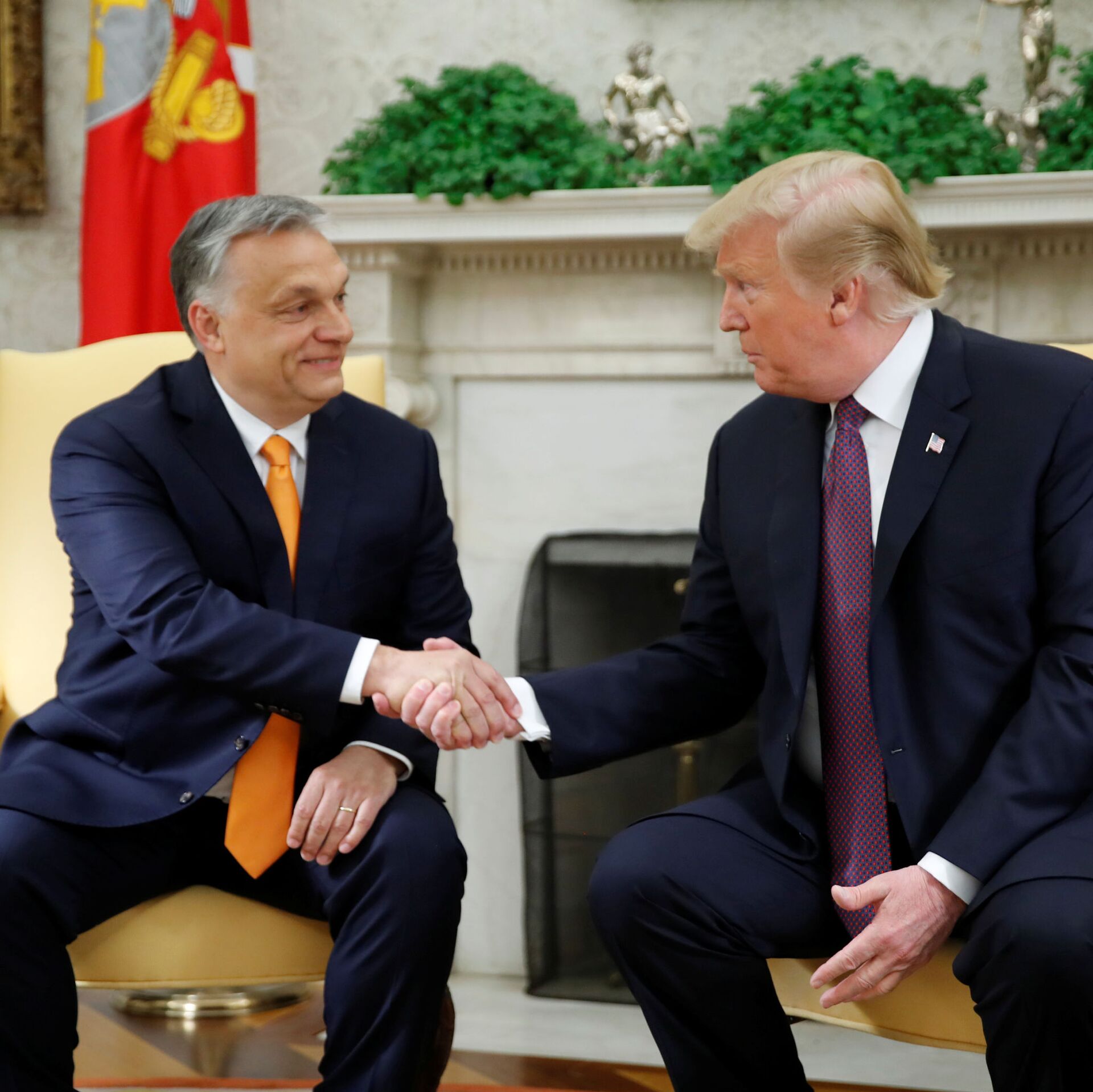 00:33 GMT 14.05.2019 (actualizado: 11:02 GMT 03.06.2024) WASHINGTON (Sputnik) — El presidente de EEUU, Donald Trump, y el primer ministro de Hungría, Víktor Orbán, dialogaron sobre las migraciones internacionales y las prácticas comerciales de China durante una reunión sostenida en Washington, dijo la Casa Blanca en un comunicado.