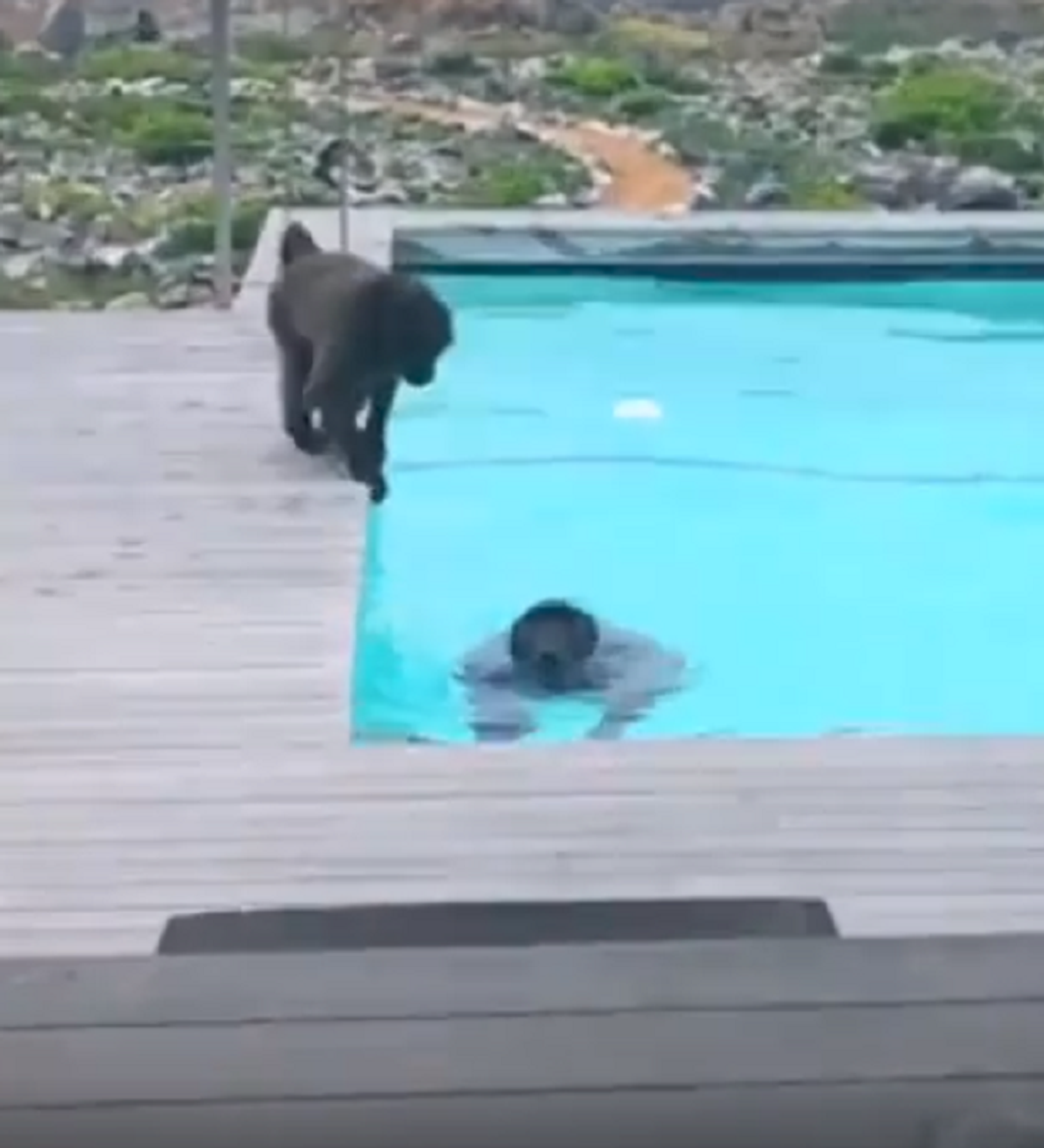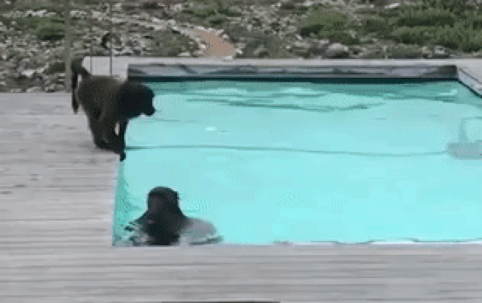 En las imágenes del divertido momento, se puede observar cómo los animalitos saltan en la piscina y beben agua, como si fueran niños pequeños.