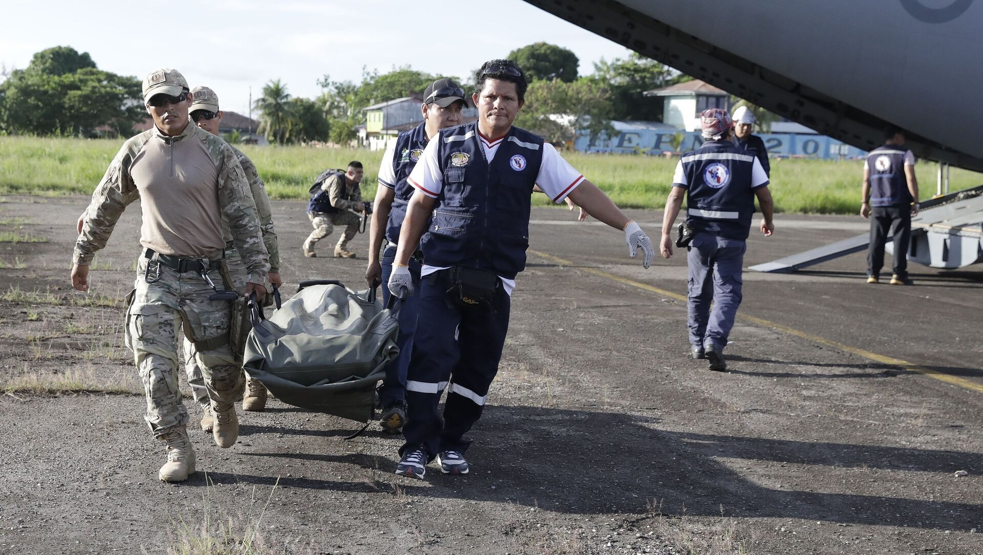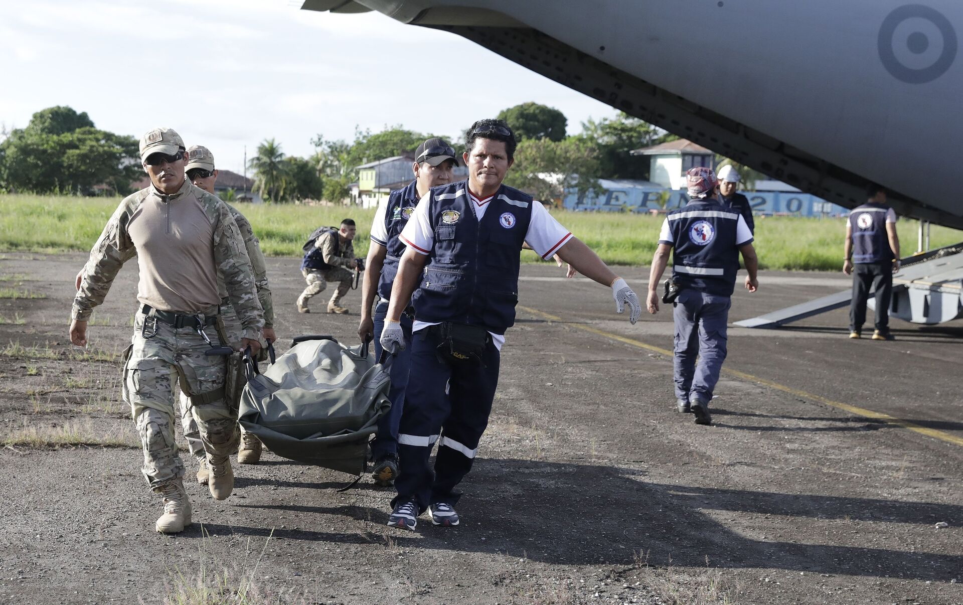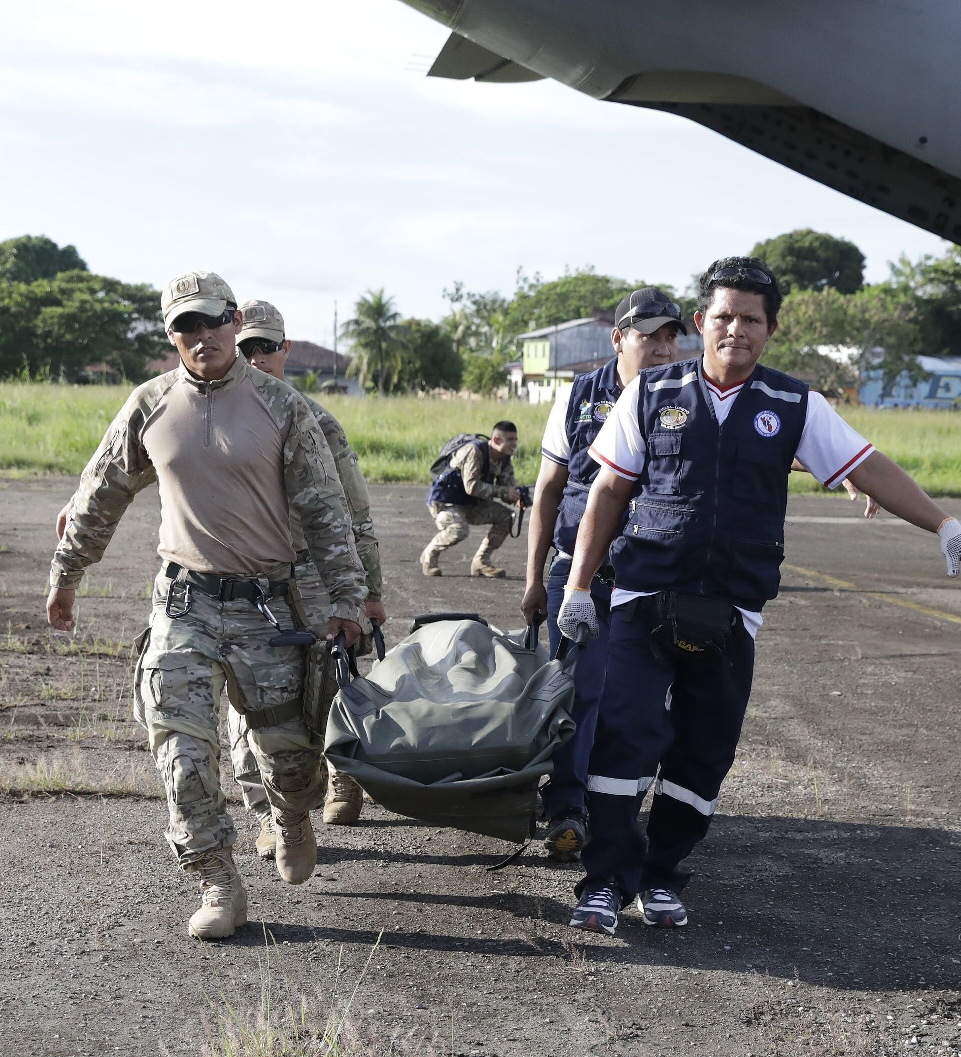 El epicentro del sismo se ubicó en la ciudad de Yurimaguas, en el departamento de Loreto. En la foto: médicos y militares trasladan el equipos sanitarios a la zona afectada.