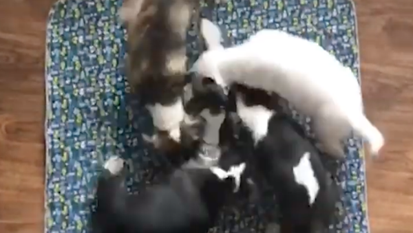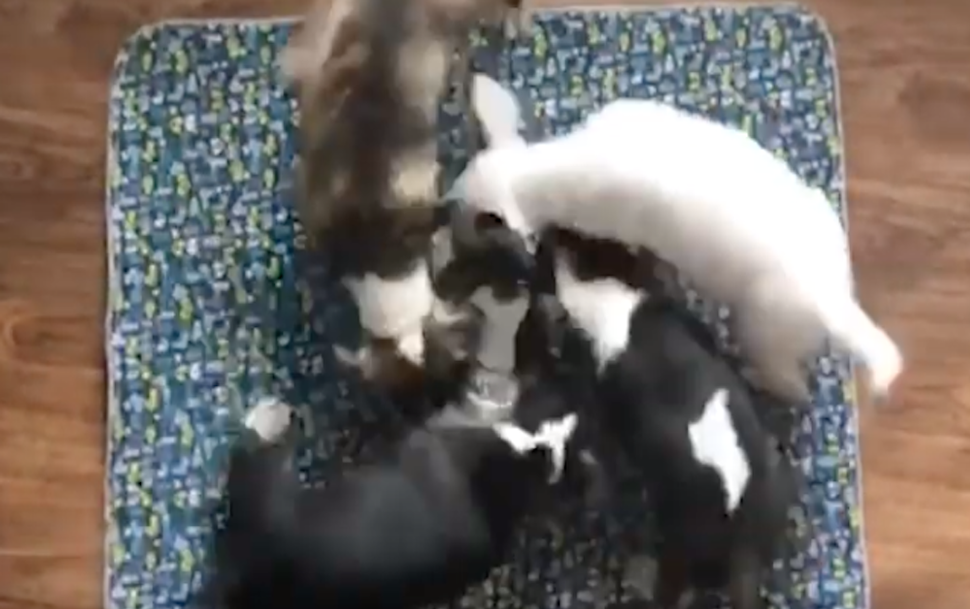 Esta grabación, que muestra a cuatro cachorros que beben del mismo tazón y se mueven en círculo de manera sincronizada, te sacará una sonrisa.