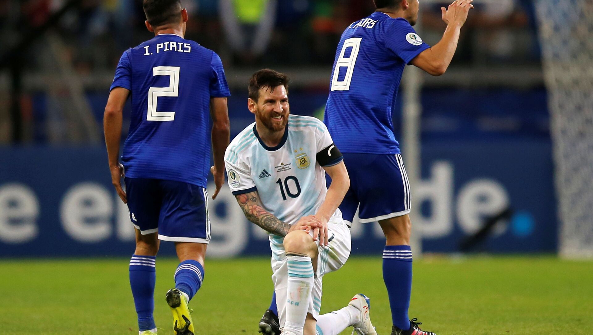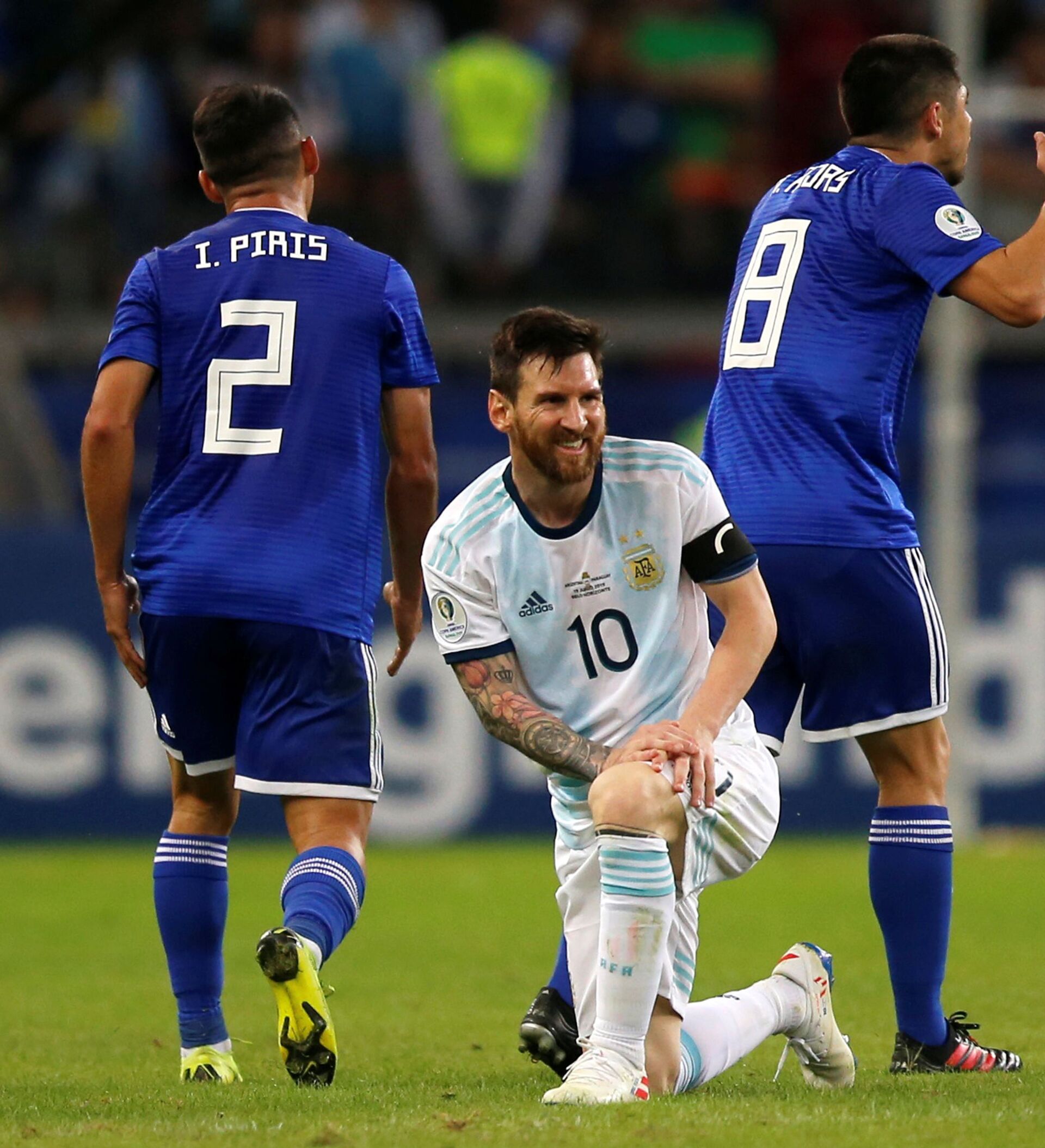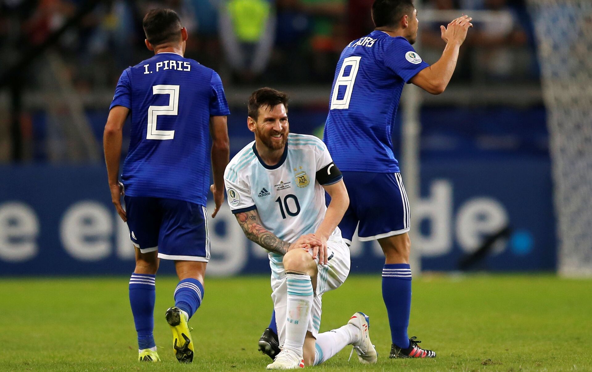 Paraguay abrió el marcador en el minuto 36 con gol de Richard Sánchez y se llevó el primer tiempo al vestuario. Cuando se disputaba el minuto 8 del segundo tiempo, el árbitro fue notificado por el VAR y luego de chequear una clara mano de un defensor paraguayo, cobró penal. Lionel Messi se hizo cargo de ejecutarlo y lo cambió por gol para dejar el marcador 1 a 1 hasta el final del partido.
