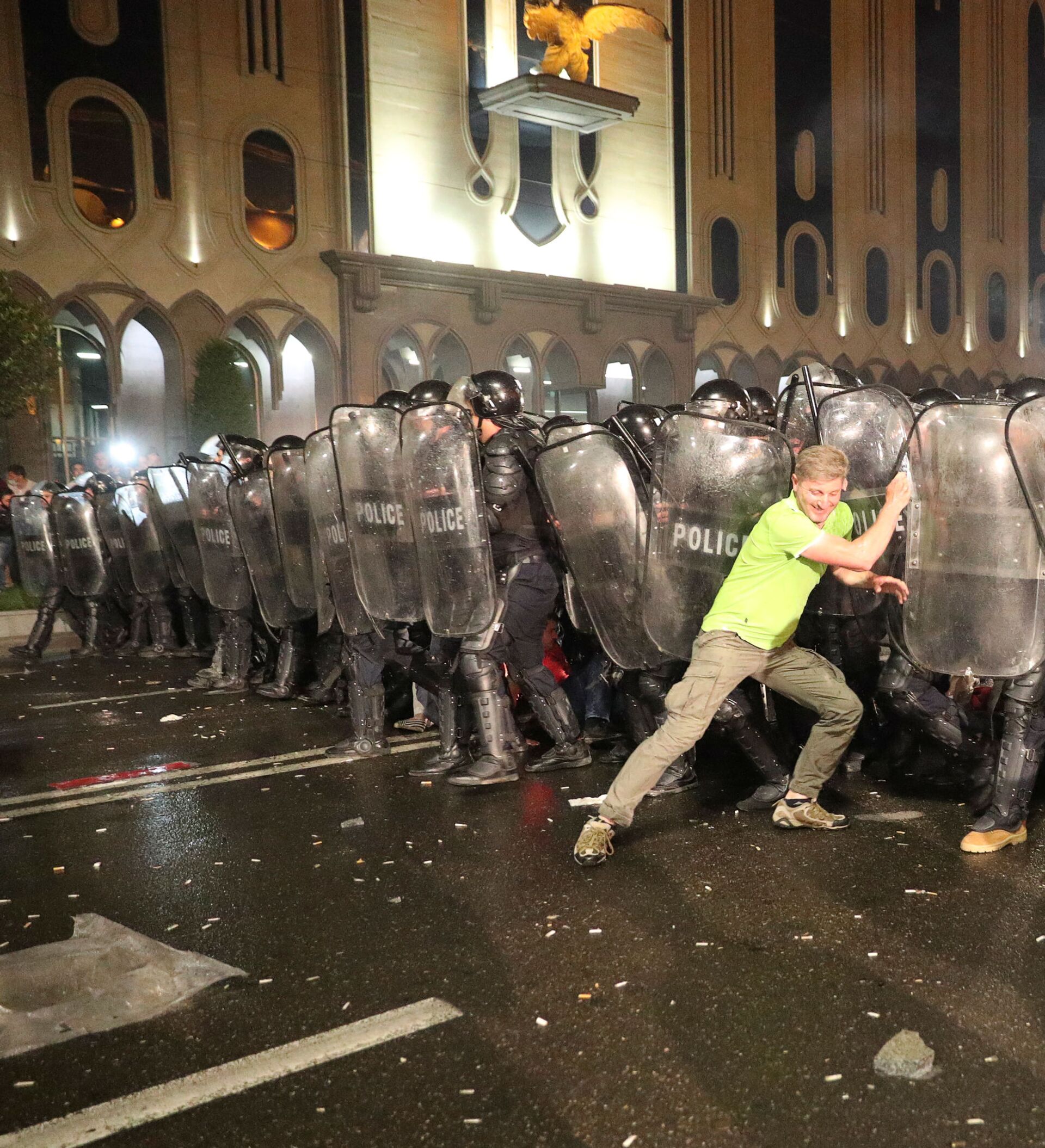 Los manifestantes, a los que se unieron los representantes de la oposición que pedían la destitución del ministro del Interior de Georgia, Gueorgui Gajaria, y el presidente del Parlamento, Irakli Kobajidze, intentaron irrumpir en el edificio del Parlamento.