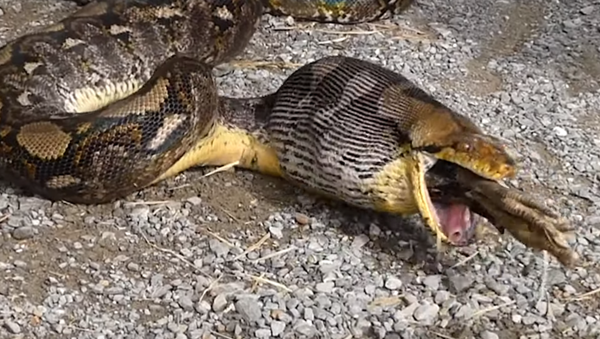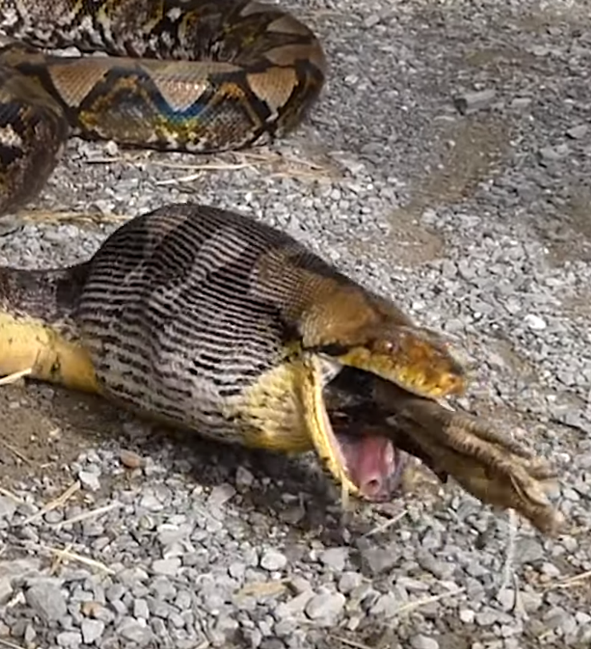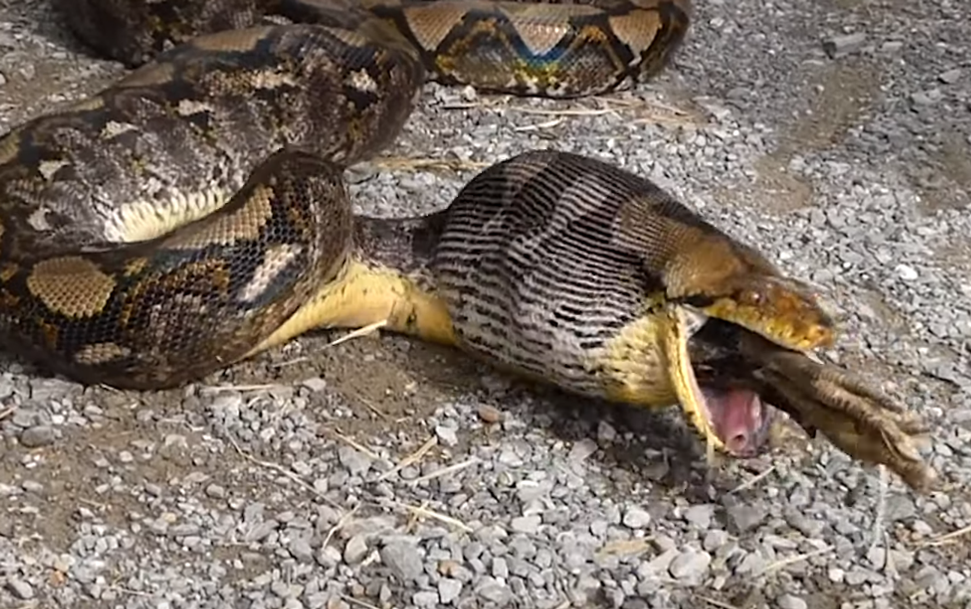 Llamó a las autoridades y, entre estas y su marido, lograron atrapar al animal. En su interior se notaba que estaba la gallina que faltaba. Entre un policía y su marido agarraron al pobre animal de los extremos y este, fruto del estrés, acabó vomitando a su presa.