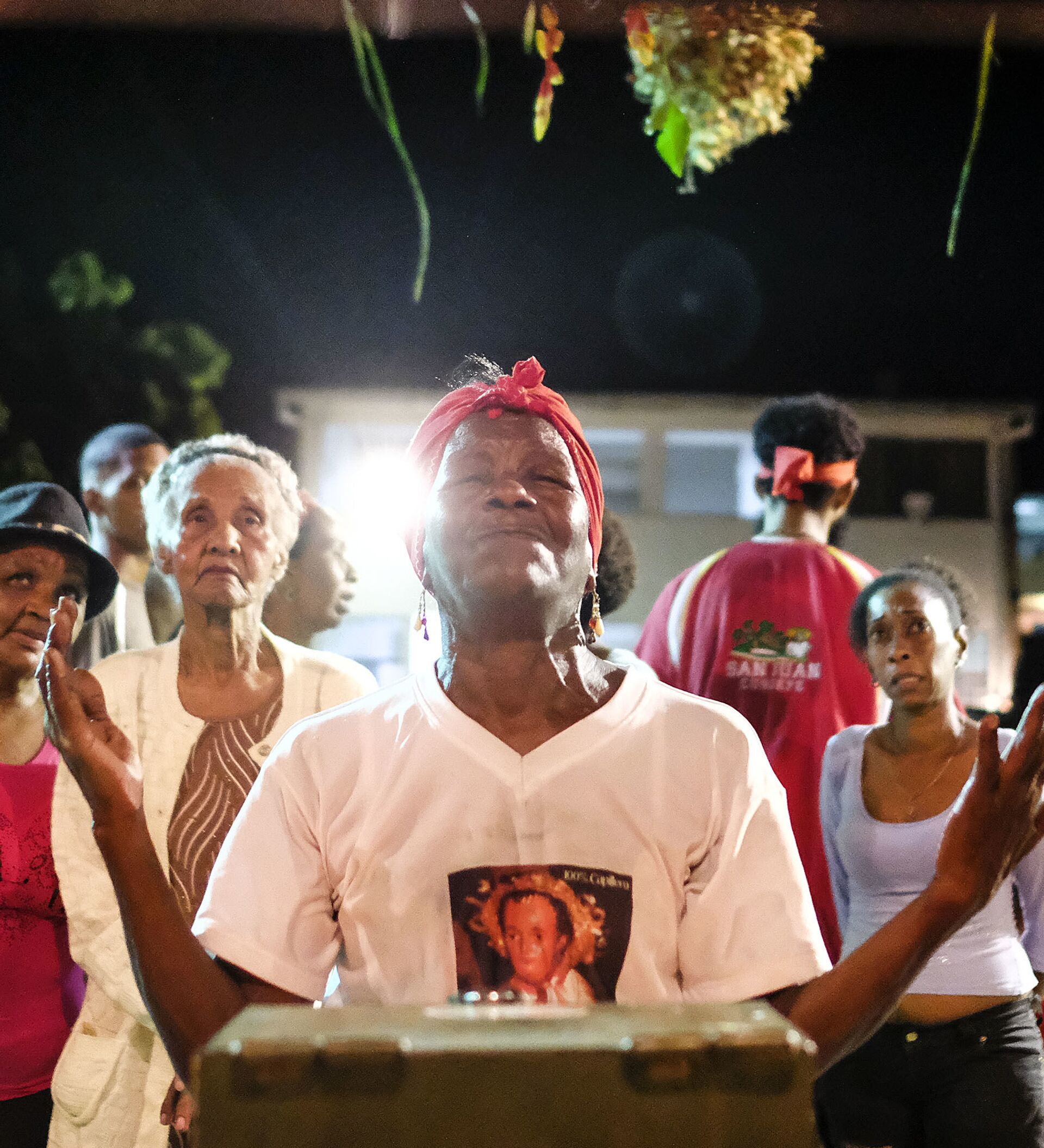 Una niña observa junto a sus familiares la celebración del Día de San Juan Bautista en Curiepe.