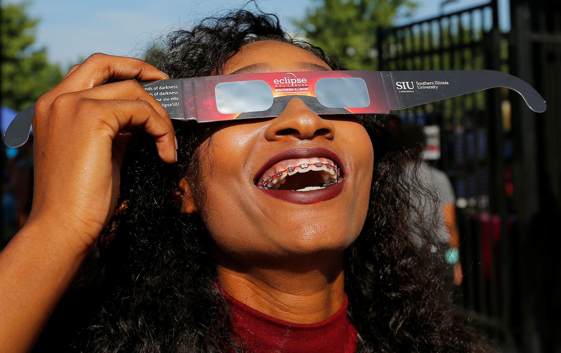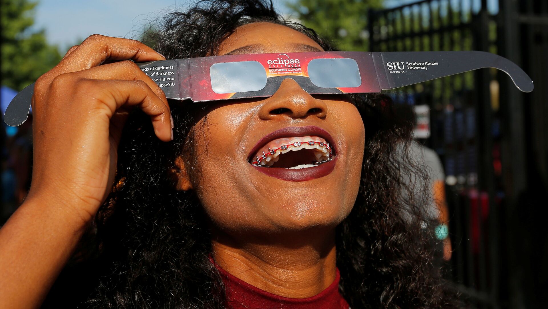 Una muchacha prueba gafas con filtro solar antes del eclipse del Sol del 21 de agosto de 2017 - Sputnik Mundo