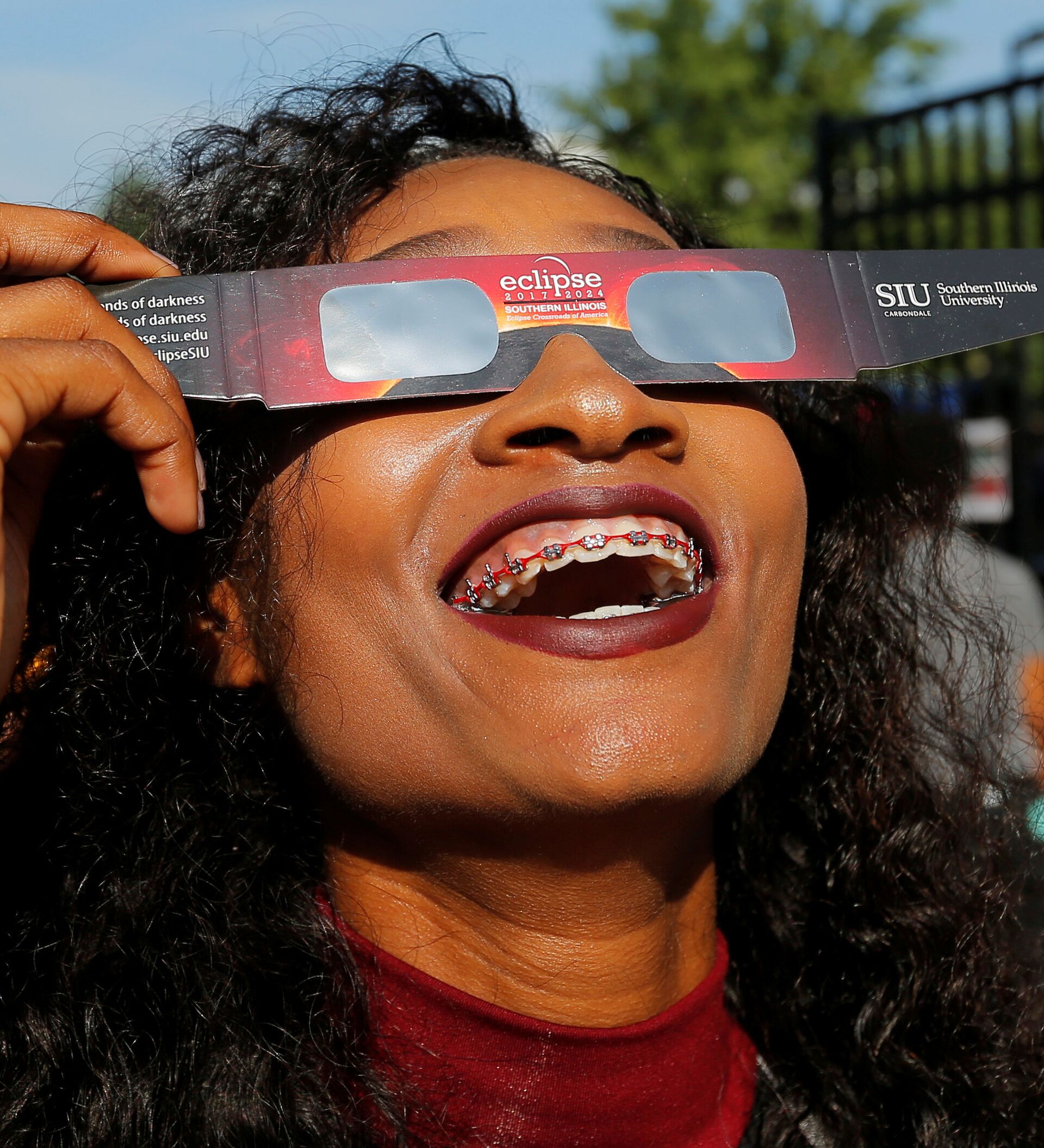 © REUTERS / Brian SnyderUna muchacha prueba gafas con filtro solar antes del eclipse del Sol del 21 de agosto de 2017