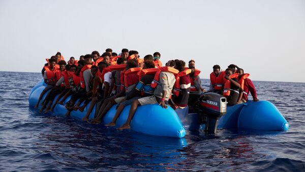 Un barco con migrantes en el Mediterraneo - Sputnik Mundo