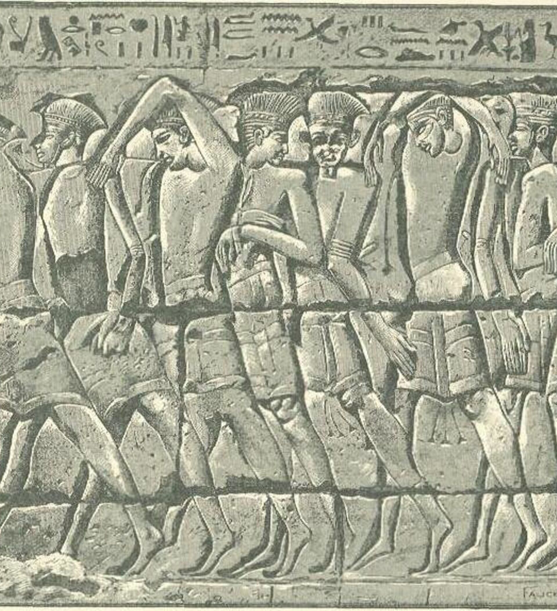 © Foto : Public Domain / InsingerProcesión de filisteos capturados, bajorrelieve del templo de Medinet Habu