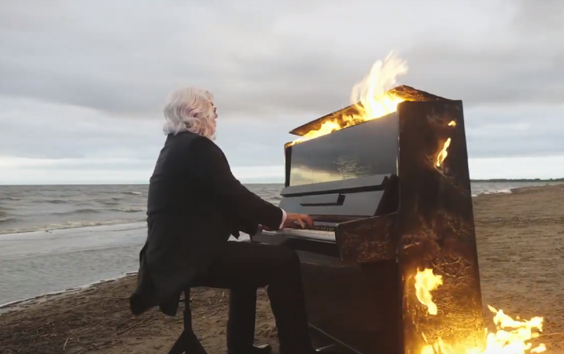 Bolshakov reveló al periódico ruso Rossiyskaya Gazeta que este videoclip es producto del trabajo conjunto que fue realizado por un grupo de personas. Aparte de operador y productor había varios pirotécnicos que encendían y apagaban el piano después de cada episodio de rodaje. Además, una ambulancia y una brigada de bomberos se encontraban en estos momentos en la playa para poder prevenir un posible accidente ya que el músico tocó el piano sin contar con ningún tipo de equipamiento protector.