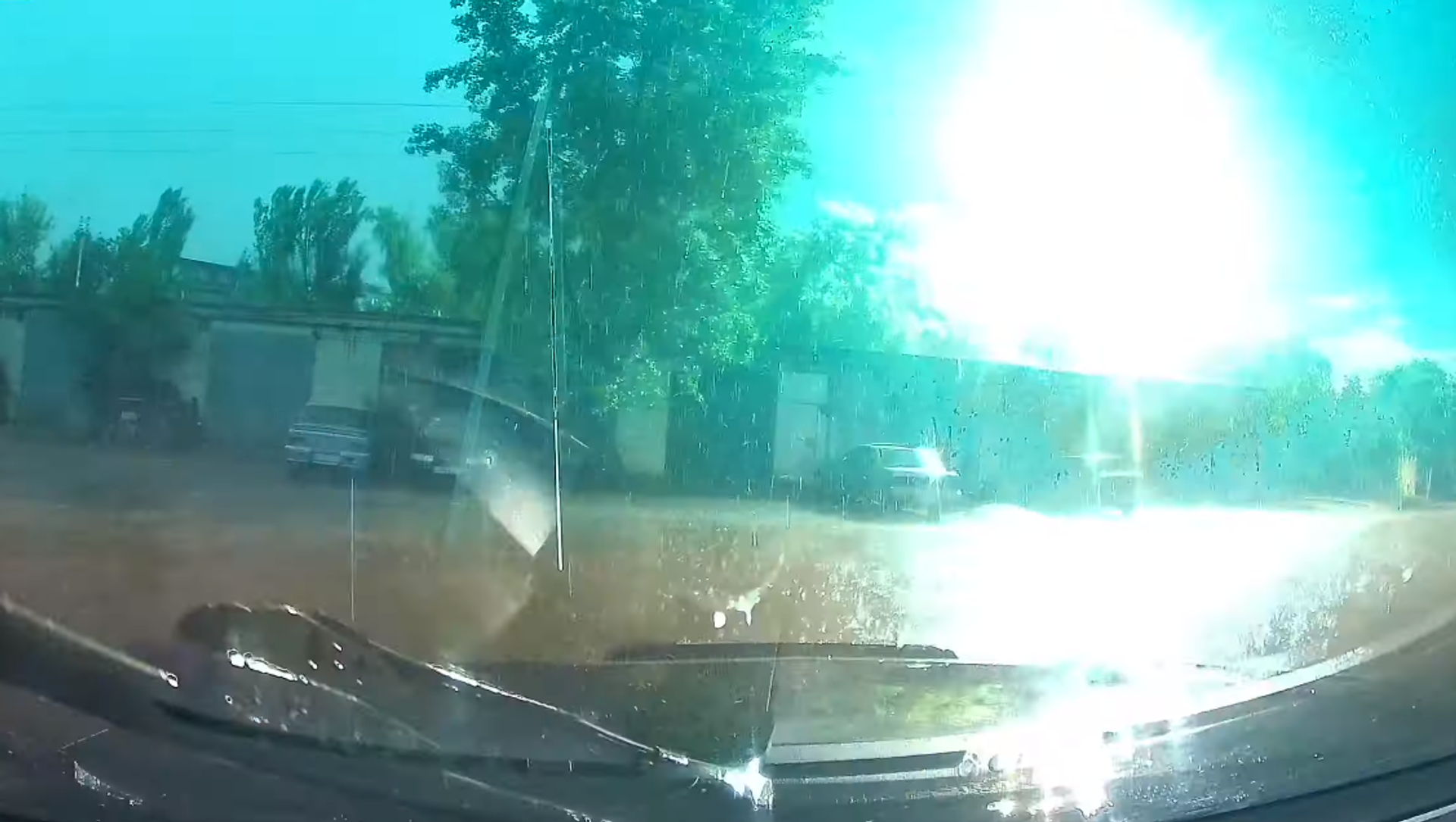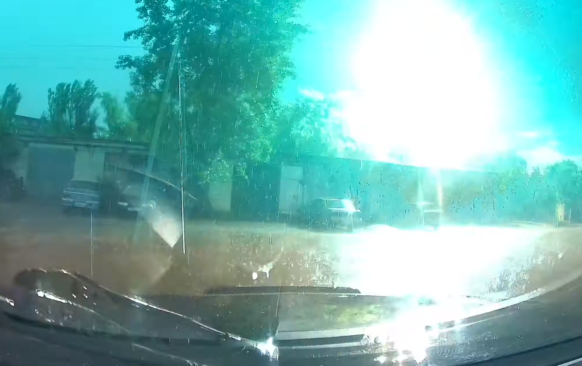 Un conductor que manejaba por las calles de Zaporizhia, Ucrania, durante una lluvia terminó siendo testigo de un espeluznante fenómeno eléctrico.